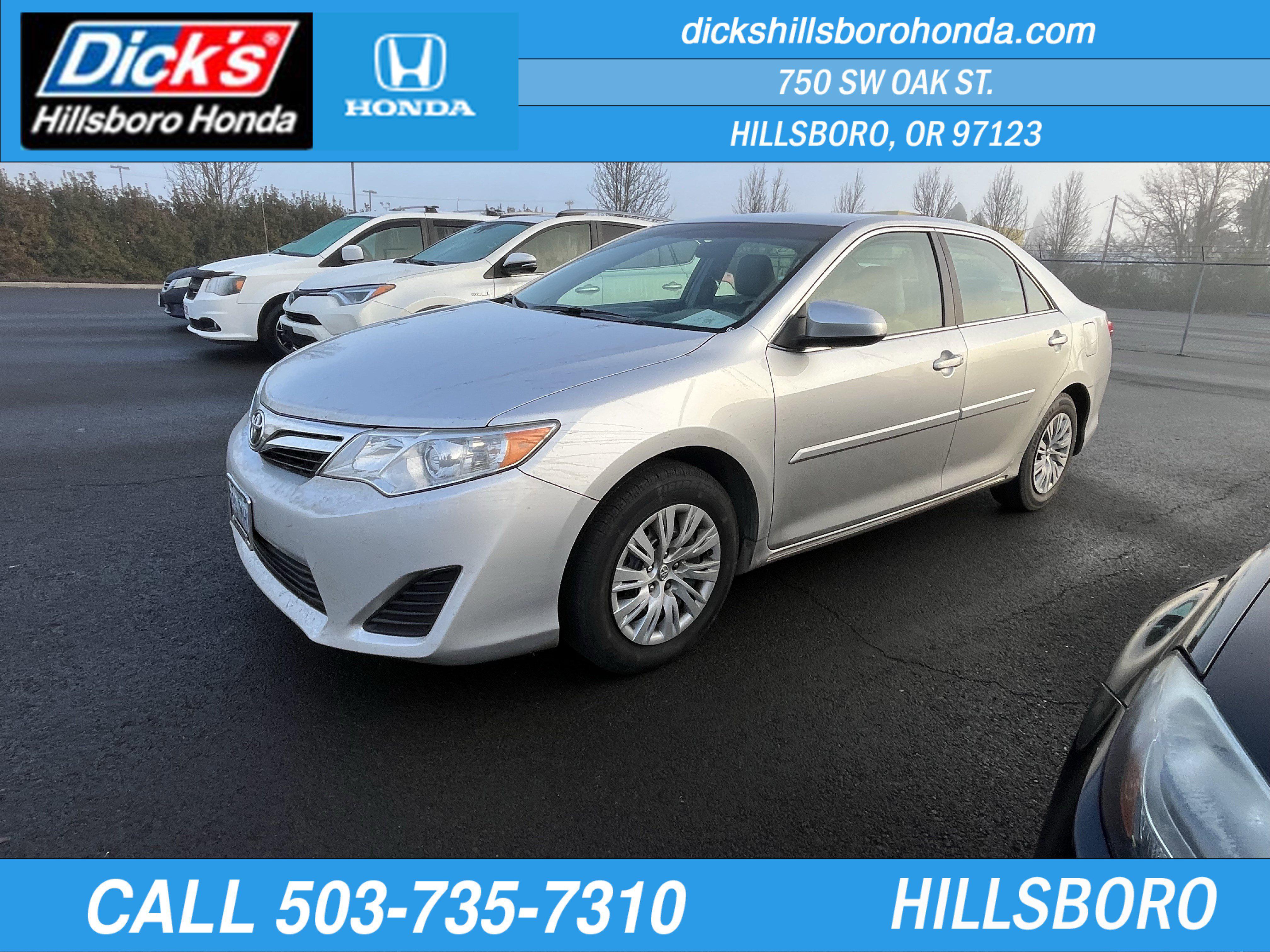 Hurry in for this timeless, reliable, and bestselling car that will cost you a little to buy, and is inexpensive in cost of ownership as well. 2013 Toyota Camry LE Classic Silver Metallic FWD 6-Speed Automatic 2.5L I4 SMPI DOHCCLEAN CARFAX: NO ACCIDENTS, **LOCAL TRADE**, Ash w/Fabric Seat Trim, ABS brakes, Electronic Stability Control, Illuminated entry, Low tire pressure warning, Remote keyless entry, Traction control.Recent Arrival!25/35 City/Highway MPGCome to www.dickshillsborohonda.com To See Our Specials!! Call us at (503) 735-7310 For help with any of our departments!! We gave it a full lube-oil-filter service, pressure tested the coolant/antifreeze system for leaks & protection, checked the brakes & tires, checked all parts/systems for excessive wear & tear, topped off needed fluids, detailed the vehicle and gave it a thorough diagnostic/frame/safey inspection!Awards:* 2013 KBB.com 10 Best New Sedans Under $25,000 * 2013 KBB.com Best Resale Value Awards * 2013 KBB.com Brand Image Awards