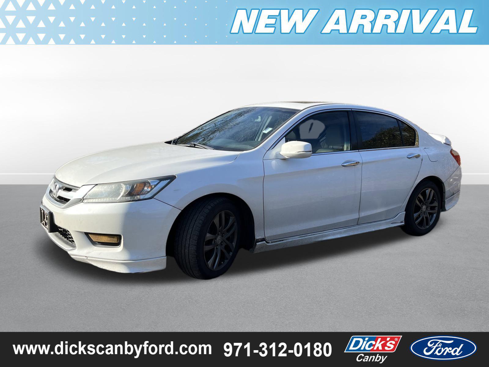 Green Car Journal 2014 Green Car of the Year. Delivers 36 Highway MPG and 27 City MPG! This Honda Accord Sedan boasts a Regular Unleaded I-4 2.4 L/144 engine powering this Variable transmission. Window Grid Antenna, Wheels: 17 Alloy, Vinyl Door Trim Insert.*This Honda Accord Sedan Comes Equipped with These Options *Valet Function, Urethane Gear Shifter Material, Trunk Rear Cargo Access, Trip Computer, Transmission: Continuously Variable w/Sport Mode, Transmission w/Driver Selectable Mode, Tires: P215/55R17 94V AS, Strut Front Suspension w/Coil Springs, Steel Spare Wheel, Speed Sensitive Variable Intermittent Wipers.* The Votes are Counted *Green Car Journal 2014 Green Car of the Year, KBB.com Brand Image Awards.* The Experts' Verdict...*As reported by KBB.com: Beyond its history of reliability and high resale value, the Accord is now more varied than ever. Whether you want a no-fuss and highly economical sedan, a sporty V6-powered coupe or a hybrid that attains 50 mpg in the city, the 2014 Accord offers something for everyone.* Visit Us Today *Live a little- stop by Dick's Canby Ford located at 24315 Hwy 99 East, Canby, OR 97013 to make this car yours today!