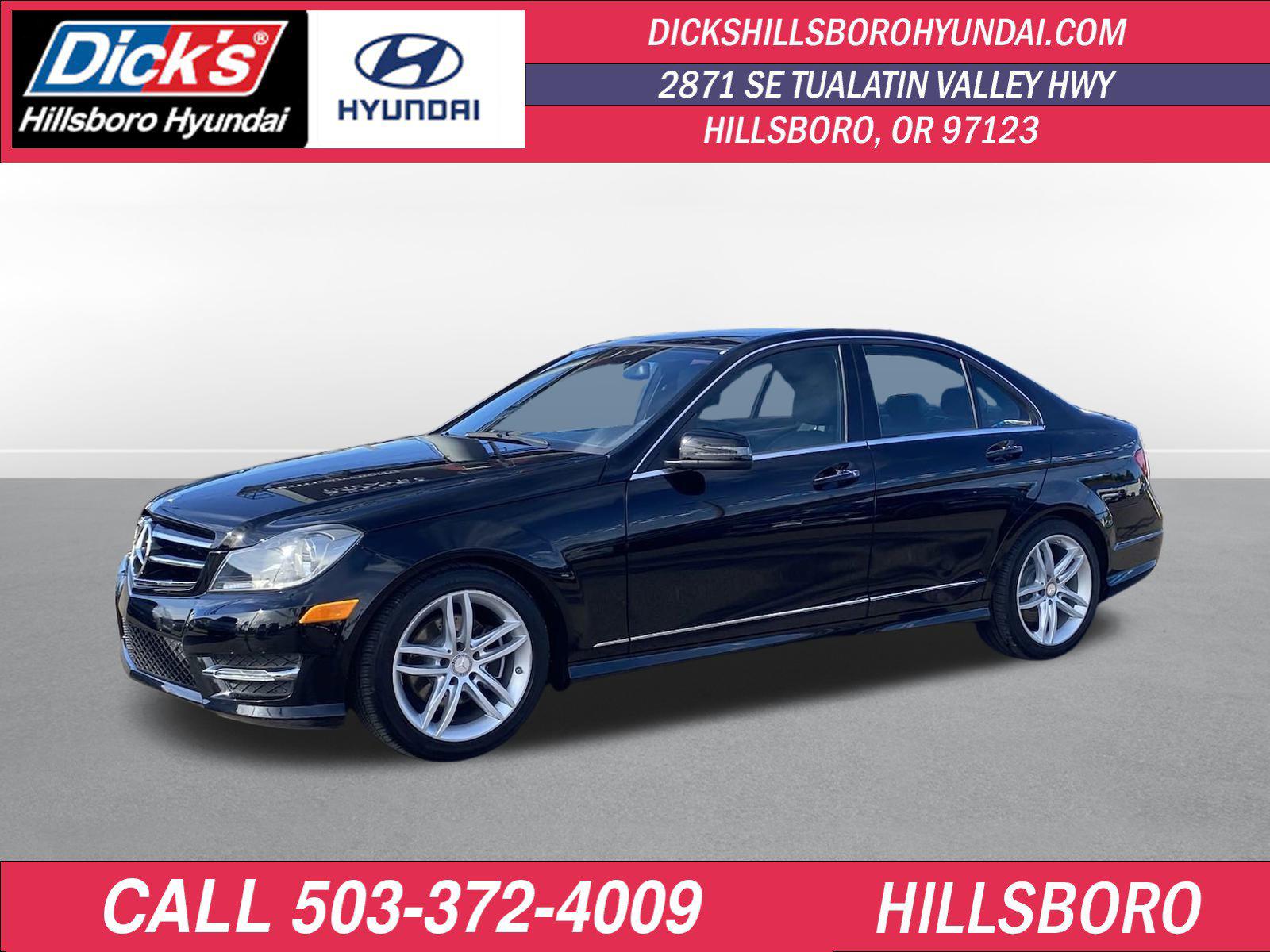 2014 Mercedes-Benz C-Class C 250 Sport Black RWD 1.8L I4 DOHC 16V 7G-TRONIC PLUS 7-Speed Automatic4-Wheel Disc Brakes, 8 Speakers, ABS brakes, Air Conditioning, Alloy wheels, AM/FM radio, Anti-whiplash front head restraints, Auto-dimming door mirrors, Auto-dimming Rear-View mirror, Automatic temperature control, Bodyside moldings, Brake assist, Bumpers: body-color, CD player, Child-Seat-Sensing Airbag, Compass, Delay-off headlights, Driver door bin, Driver vanity mirror, Dual front impact airbags, Dual front side impact airbags, Electronic Stability Control, Emergency communication system: mbrace2, Four wheel independent suspension, Front anti-roll bar, Front Bucket Seats, Front Center Armrest, Front dual zone A/C, Front reading lights, Fully automatic headlights, Garage door transmitter: Homelink, Heated door mirrors, Illuminated entry, Knee airbag, Leather Shift Knob, Low tire pressure warning, MB-Tex Upholstery, Occupant sensing airbag, Outside temperature display, Overhead airbag, Overhead console, Panic alarm, Passenger door bin, Passenger vanity mirror, Power door mirrors, Power driver seat, Power moonroof, Power passenger seat, Power steering, Power windows, Premium audio system: COMAND®, Radio data system, Radio: HD AM/FM Single Disc CD/MP3, Rain sensing wipers, Rear anti-roll bar, Rear fog lights, Rear reading lights, Rear seat center armrest, Rear window defroster, Remote keyless entry, Security system, Speed control, Speed-sensing steering, Split folding rear seat, Steering wheel mounted audio controls, Tachometer, Telescoping steering wheel, Tilt steering wheel, Traction control, Trip computer, Turn signal indicator mirrors, Variably intermittent wipers, Weather band radio.Clean CARFAX.Odometer is 58871 miles below market average!You make the drive, we'll make the deal! Come to www.dickshillsborohyundai.com To See Our Specials!! Call us at 503-608-7456 For help with any of our departments!!