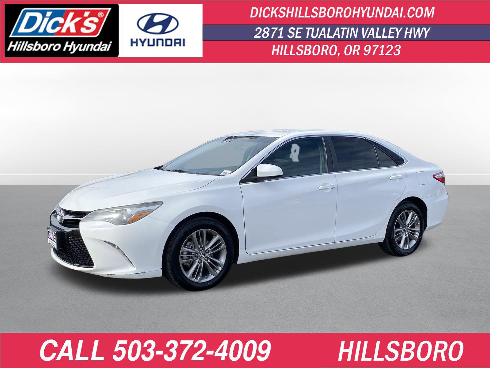 2015 Toyota Camry SE Super White FWD 2.5L I4 SMPI DOHC 6-Speed AutomaticAsh/Black Cloth, 4-Wheel Disc Brakes, 6 Speakers, 7.0J x 17 Alloy Wheels, ABS brakes, Air Conditioning, Alloy wheels, AM/FM radio, Brake assist, Bumpers: body-color, CD player, Delay-off headlights, Driver door bin, Driver vanity mirror, Dual front impact airbags, Dual front side impact airbags, Electronic Stability Control, Exterior Parking Camera Rear, Four wheel independent suspension, Front anti-roll bar, Front Bucket Seats, Front Center Armrest, Front reading lights, Fully automatic headlights, Heated door mirrors, Illuminated entry, Knee airbag, Leather steering wheel, Low tire pressure warning, Occupant sensing airbag, Outside temperature display, Overhead airbag, Overhead console, Panic alarm, Passenger door bin, Passenger vanity mirror, Power door mirrors, Power driver seat, Power steering, Power windows, Radio: Entune Audio, Rear anti-roll bar, Rear seat center armrest, Rear side impact airbag, Rear window defroster, Remote keyless entry, Speed control, Speed-sensing steering, Split folding rear seat, Spoiler, Sport Fabric Softex-Trimmed Front Seat Trim, Sport steering wheel, Steering wheel mounted audio controls, Tachometer, Telescoping steering wheel, Tilt steering wheel, Traction control, Trip computer, Variably intermittent wipers, Ash/Black Cloth.Clean CARFAX.You make the drive, we'll make the deal! Come to www.dickshillsborohyundai.com To See Our Specials!! Call us at 503-608-7456 For help with any of our departments!!Awards:* 2015 KBB.com 15 Best Family Cars * 2015 KBB.com 10 Best Sedans Under $25,000 * 2015 KBB.com 10 Most Comfortable Cars Under $30,000 * 2015 KBB.com Best Buy Awards Finalist * 2015 KBB.com 10 Most Awarded Cars