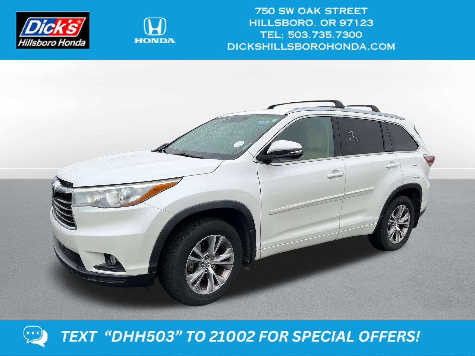 Fantastic value in a 7 passenger SUV!! 2015 Toyota Highlander XLE V6 Blizzard Pearl AWD 6-Speed Automatic Electronic with Overdrive 3.5L V6 DOHC Dual VVT-i 24VLEATHER INTERIOR, AWD, 3rd row seats: split-bench, 4-Wheel Disc Brakes, 4.154 Axle Ratio, 6 Speakers, ABS brakes, Air Conditioning, Alloy wheels, AM/FM radio: SiriusXM, Anti-whiplash front head restraints, Auto-dimming Rear-View mirror, Automatic temperature control, Brake assist, Bumpers: body-color, CD player, Delay-off headlights, Driver door bin, Driver vanity mirror, Dual front impact airbags, Dual front side impact airbags, Electronic Stability Control, Exterior Parking Camera Rear, Four wheel independent suspension, Front anti-roll bar, Front Bucket Seats, Front Center Armrest, Front dual zone A/C, Front fog lights, Front reading lights, Fully automatic headlights, Garage door transmitter, Heated door mirrors, Heated front seats, Illuminated entry, Knee airbag, Leather Seat Material, Leather Shift Knob, Low tire pressure warning, Navigation System, Occupant sensing airbag, Outside temperature display, Overhead airbag, Overhead console, Panic alarm, Passenger door bin, Passenger vanity mirror, Power door mirrors, Power driver seat, Power Liftgate, Power moonroof, Power steering, Power windows, Radio: Entune Premium Audio w/Nav & App Suite, Rear air conditioning, Rear anti-roll bar, Rear reading lights, Rear window defroster, Rear window wiper, Reclining 3rd row seat, Remote keyless entry, Roof rack: rails only, Security system, Speed control, Speed-sensing steering, Split folding rear seat, Spoiler, Steering wheel mounted audio controls, Tachometer, Telescoping steering wheel, Tilt steering wheel, Traction control, Trip computer, Turn signal indicator mirrors, Variably intermittent wipers, Wheels: 18 Split 5-Spoke Machined-Face Alloy, AWD.Recent Arrival!Come to www.dickshillsborohonda.com To See Our Specials!! Call us at (503) 735-7310 For help with any of our departments!! We gave it a full lube-oil-filter service, pressure tested the coolant/antifreeze system for leaks & protection, checked the brakes & tires, checked all parts/systems for excessive wear & tear, topped off needed fluids, detailed the vehicle and gave it a thorough diagnostic/frame/safey inspection!Awards:* 2015 IIHS Top Safety Pick+ * ALG Residual Value Awards, Residual Value Awards * 2015 KBB.com Best Buy Awards * 2015 KBB.com 10 Best Certified Pre-Owned 3-Row SUVs Under $30,000 * 2015 KBB.com 15 Best Family CarsReviews:* The 2015 Toyota Highlander is a safe choice, for all the right reasons. Comfortable, accommodating and feature-packed, with a variety of models for all budgets, the Highlander's a tough act to follow. Source: KBB.com* Refined interior appointments; quiet, compliant ride; smooth and strong V6 engine; seating for up to eight; fresh technology offerings. Source: Edmunds