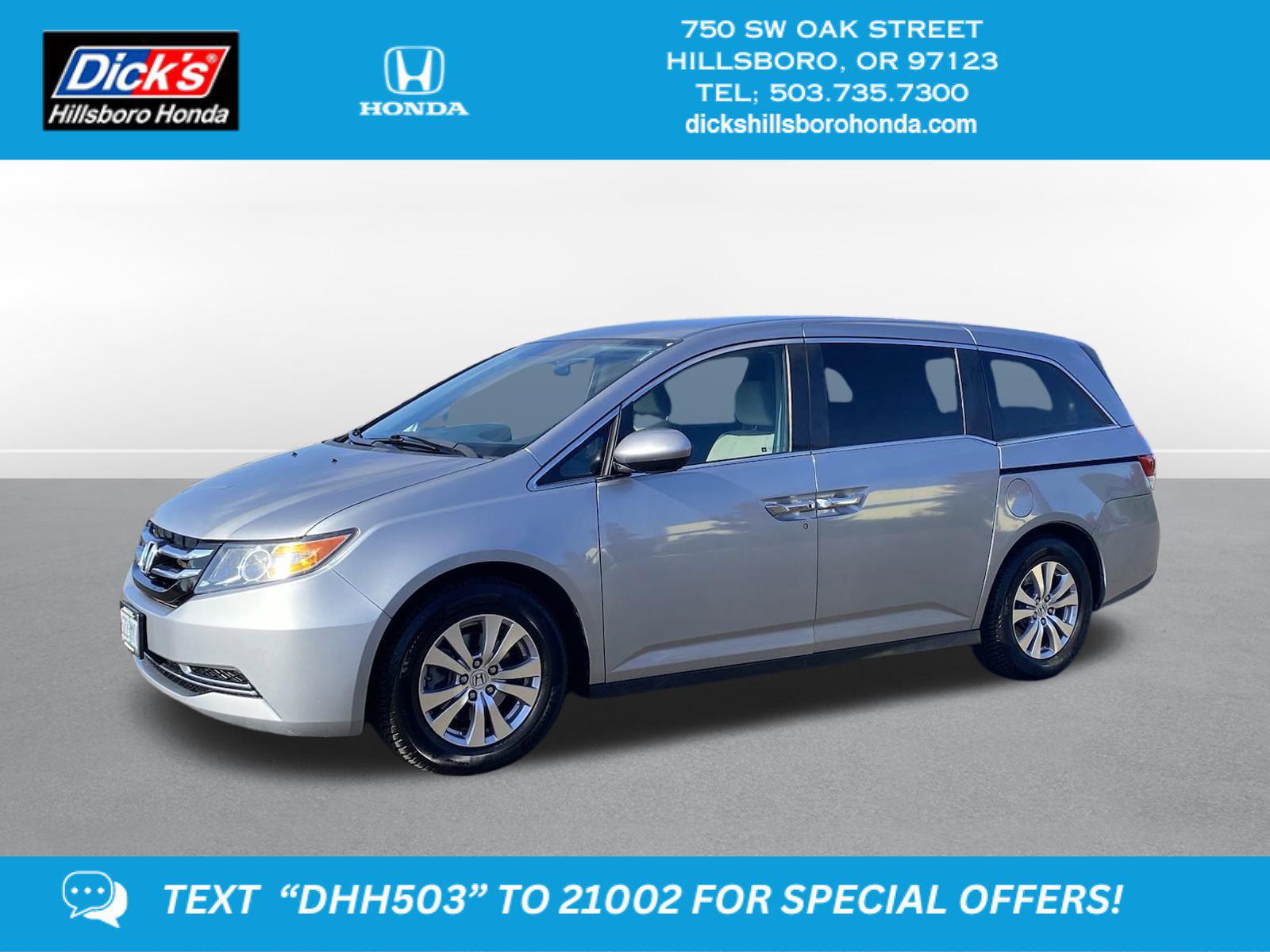 2017 Honda Odyssey EX Silver FWD 6-Speed Automatic 3.5L V6 SOHC i-VTEC 24VNew timing belt and water pump service done as part of our inspection!!CLEAN CARFAX: NO ACCIDENTS, **LOCAL TRADE-IN**, FULLY SERVICED/MAINTAINED, 17 x 7 Alloy Wheels, 3rd row seats: split-bench, 4-Wheel Disc Brakes, 4.25 Axle Ratio, 7 Speakers, ABS brakes, Air Conditioning, Alloy wheels, AM/FM radio, Anti-whiplash front head restraints, Automatic temperature control, Brake assist, Bumpers: body-color, CD player, Cloth Seat Trim, Compass, Delay-off headlights, Driver door bin, Driver vanity mirror, Driver's Seat Mounted Armrest, Dual front impact airbags, Dual front side impact airbags, Electronic Stability Control, Exterior Parking Camera Rear, Four wheel independent suspension, Front anti-roll bar, Front Bucket Seats, Front dual zone A/C, Front reading lights, Fully automatic headlights, Garage door transmitter: HomeLink, Heated door mirrors, Illuminated entry, Low tire pressure warning, Occupant sensing airbag, Outside temperature display, Overhead airbag, Overhead console, Panic alarm, Passenger door bin, Passenger seat mounted armrest, Passenger vanity mirror, Power door mirrors, Power driver seat, Power passenger seat, Power steering, Power windows, Radio data system, Radio: 270-Watt AM/FM/CD Audio System w/7 Speakers, Rear air conditioning, Rear reading lights, Rear seat center armrest, Rear window defroster, Rear window wiper, Reclining 3rd row seat, Remote keyless entry, Security system, Speed control, Speed-sensing steering, Speed-Sensitive Wipers, Split folding rear seat, Spoiler, Steering wheel mounted audio controls, Tachometer, Telescoping steering wheel, Tilt steering wheel, Traction control, Trip computer, Variably intermittent wipers.Recent Arrival!Odometer is 52270 miles below market average!19/27 City/Highway MPGCome to www.dickshillsborohonda.com To See Our Specials!! Call us at (866) 973-3693 For help with any of our departments!! We gave it a full lube-oil-filter service, pressure tested the coolant/antifreeze system for leaks & protection, checked the brakes & tires, checked all parts/systems for excessive wear & tear, topped off needed fluids, detailed the vehicle and gave it a thorough diagnostic/frame/safey inspection!Awards:* 2017 KBB.com 12 Best Family Cars * 2017 KBB.com 10 Most Awarded Brands * 2017 KBB.com Brand Image AwardsKelley Blue Book Brand Image Awards are based on the Brand Watch(tm) study from Kelley Blue Book Market Intelligence. Award calculated among non-luxury shoppers. For more information, visit www.kbb.com. Kelley Blue Book is a registered trademark of Kelley Blue Book Co., Inc.Reviews:* Should continue to deliver excellent ride and handling characteristics for a minivan; Honda often introduces unique new features with each redesign of the Odyssey; will likely offer improved fuel economy without sacrificing size. Source: Edmunds This fwd 2017 Honda Odyssey EX is one of those used cars Portland, Hillsboro & Beaverton, OR shoppers seek out. This Honda Odyssey features a Silver exterior with a Beige Interior. With 70,446 miles this 2017 Odyssey with a 3.5 l engine and 6-speed automatic w/od transmission is your best buy near Portland, Hillsboro & Beaverton, Oregon.*TECHNOLOGY FEATURES:* Keyless Start, Smart Device Integration, Garage Door Opener, Bluetooth Connection, Digital Media Storage, Keyless Entry. Your Silver 2017 Honda Odyssey EX near Beaverton is available for immediate test drives in Hillsboro, OR.*Our Car Dealership in Hillsboro:* Call Dicks Hillsboro Honda today at *(503) 616-4532 TO SCHEDULE YOUR TEST DRIVE* of this 2017 Honda Odyssey EX! Dicks Hillsboro Honda serves Portland, Hillsboro & Beaverton, OR. You can also visit us at, 750 SW Oak St. Hillsboro OR, 97123 to check it out in person! Dicks Hillsboro Honda Used car dealership only sells used cars Beaverton, OR buyers can trust for safety and worry free driving.*MECHANICAL FEATURES:* This Honda Odyssey comes factory equipped with an impressive 3.5 l engine, and 6-speed automatic w/od transmission. Other installed mechanical features include Heated Mirrors, Push Button Start, Power One-touch Down windows, Front Wheel Drive, Power Locks, Power Mirrors, Traction Control, Cruise Control, Sliding Rear Passenger Door, Sliding Rear Drivers Door, Ventilated Disc Brakes, Power Passenger Seat, Power Sliding Rear Drivers Door, Power Sliding Rear Passenger Door, Intermittent Wipers, Tires - Rear All-Season, Power Steering, Tires - Front All-Season, Variable Speed Intermittent Wipers, Trip Computer. Dicks Hillsboro Honda is Northwest Oregon's only location where you can test drive a new, used or Certified car. That's why more Oregon used car shoppers and owners drive to Dicks Hillsboro Honda in Hillsboro for used cars, trucks & SUVs sales, service, parts and accessories.*INTERIOR OPTIONS:* Dual Power Seats, Automatic Climate Control, Third Row Seats, Adjustable Lumbar Seats, Cloth Seats, Power Drivers Seat, Air Conditioning, Driver Illuminated Vanity Mirror, Pass-Through Rear Seat, Bucket Front Seats, Steering Wheel Audio Controls, Multi-zone Climate Control, Single-Disc CD Player, Passenger Illuminated Visor Mirror, Vanity Mirrors, Trip Odometer, Tilt Steering Wheel, AM/FM Stereo, Auxiliary Audio Input, Rear Window Defroster, Floor Mats, Bench Seats*EXTERIOR OPTIONS:* Aluminum Wheels, Privacy Glass, Auto Headlamp, Spoiler, Spare Tire *Small Size**SAFETY OPTIONS:* Electronic Stability Control, Back-Up Camera, Security System, Daytime Running Lights, Brake Assist, ABS Brakes, Rear Air Bag, Drivers Air Bag, Tire Pressure Monitoring System, Passenger Air Bag Sensor, Child Proof Locks, Front Head Air Bag, Driver Front Side Impact Air Bag. This 2017 Honda Odyssey EX comes standard with peace of mind for any driving conditions*Why utilize Honda Financial Financing?* You can use our Honda Dealer car payment calculator to calculate your payment on this Silver 2017 Honda Odyssey EX. Our Dicks Hillsboro Honda Honda Financial Sp