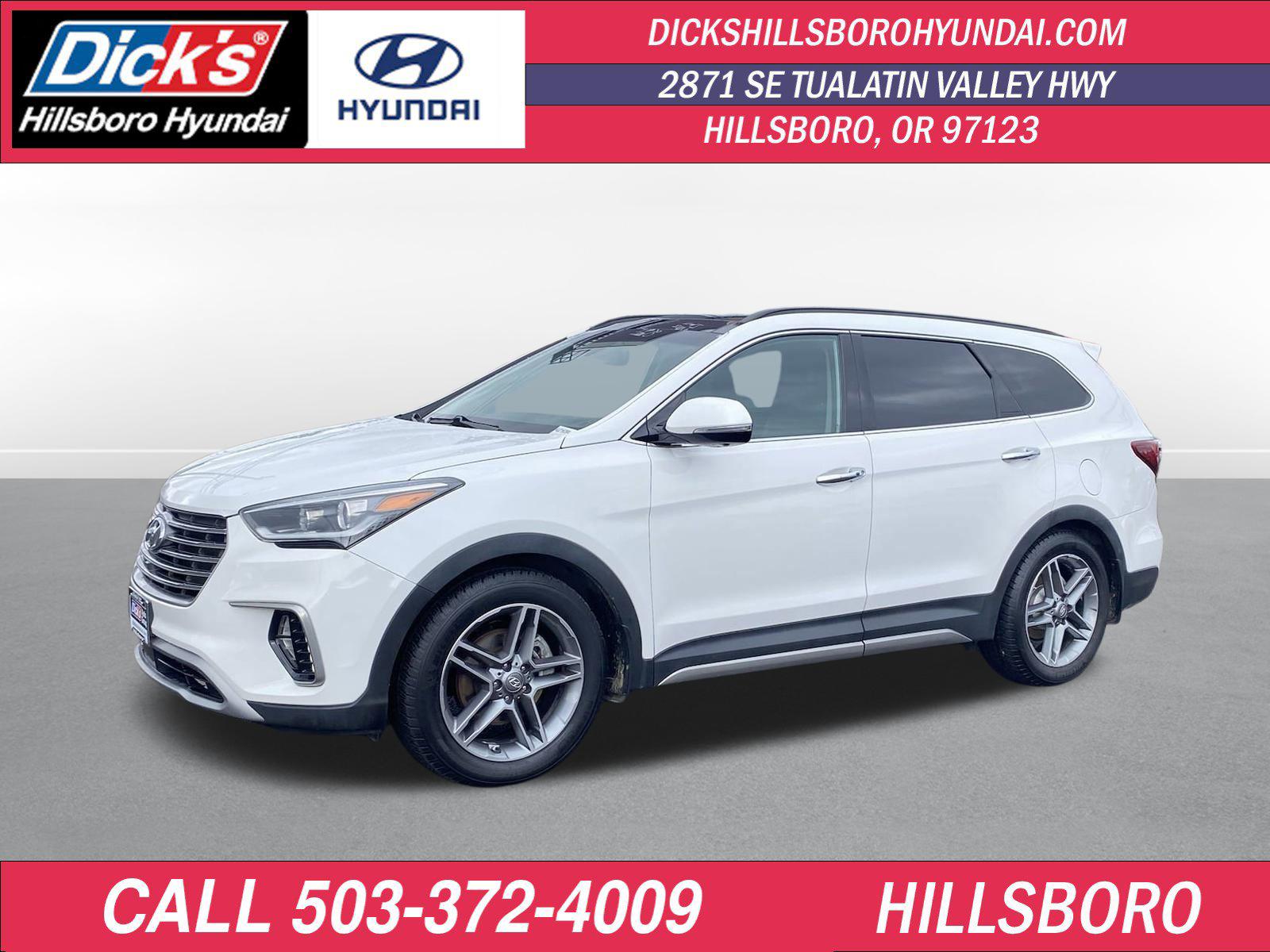 2017 Hyundai Santa Fe Limited Ultimate Monaco White AWD 3.3L V6 DGI DOHC 24V 6-Speed Automatic with Shiftronic1-OWNER!, CLEAN CARFAX: NO ACCIDENTS, LEATHER INTERIOR, 30K MILE SERVICE COMPLETED, FULLY SERVICED/MAINTAINED, AWD, Gray w/Leather Seating Surfaces, 12 Speakers, 19 x 7.5J Aluminum Alloy Wheels, 3.041 Axle Ratio, 3rd row seats: split-bench, 4-Wheel Disc Brakes, ABS brakes, Air Conditioning, Alloy wheels, AM/FM radio: SiriusXM, Android Auto, Auto-dimming Rear-View mirror, Automatic temperature control, Brake assist, Bumpers: body-color, CD player, Compass, Delay-off headlights, Driver door bin, Driver vanity mirror, Dual front impact airbags, Dual front side impact airbags, Electronic Stability Control, Emergency communication system: Blue Link, Exterior Parking Camera Rear, Four wheel independent suspension, Front anti-roll bar, Front Bucket Seats, Front Center Armrest, Front dual zone A/C, Front fog lights, Front reading lights, Fully automatic headlights, Garage door transmitter: HomeLink, Heated & Ventilated Multi-Adjustable Bucket Seats, Heated door mirrors, Heated front seats, Heated rear seats, Heated steering wheel, Illuminated entry, Knee airbag, Leather Seating Surfaces, Leather steering wheel, Low tire pressure warning, Memory seat, Navigation System, Occupant sensing airbag, Outside temperature display, Overhead airbag, Overhead console, Panic alarm, Passenger door bin, Passenger vanity mirror, Power door mirrors, Power driver seat, Power Liftgate, Power moonroof, Power passenger seat, Power steering, Power windows, Radio: AM/FM/SiriusXM/CD/HD/MP3 w/Navigation, Rear air conditioning, Rear anti-roll bar, Rear Parking Sensors, Rear window defroster, Rear window wiper, Remote keyless entry, Roof rack: rails only, Security system, Speed control, Speed-sensing steering, Split folding rear seat, Spoiler, Steering wheel mounted audio controls, Tachometer, Telescoping steering wheel, Tilt steering wheel, Traction control, Trip computer, Turn signal indicator mirrors, Variably intermittent wipers, Ventilated front seats, AWD, Gray w/Leather Seating Surfaces.CARFAX One-Owner. Clean CARFAX.You make the drive, we'll make the deal! Come to www.dickshillsborohyundai.com To See Our Specials!! Call us at 503-608-7456 For help with any of our departments!!Awards:* 2017 KBB.com 10 Most Awarded Brands