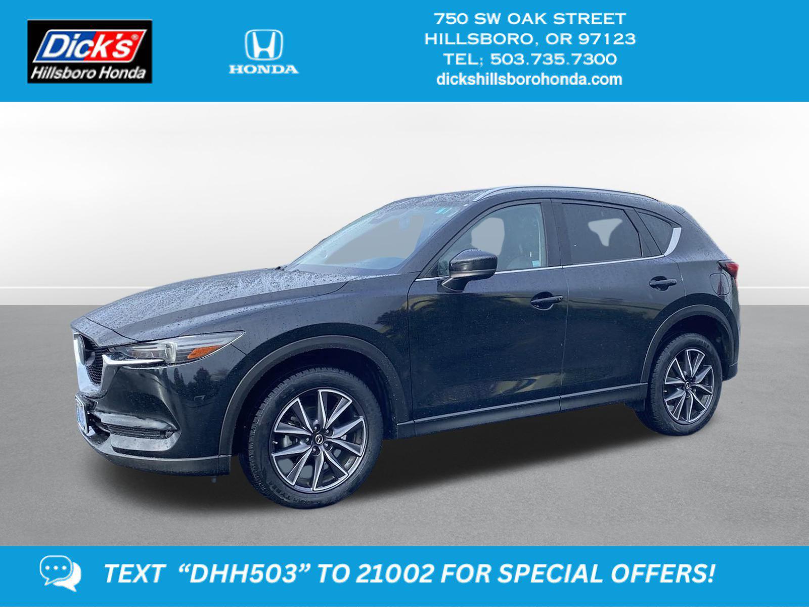 2018 Mazda CX-5 Grand Touring Jet Black Mica AWD 6-Speed Automatic SKYACTIV® 2.5L 4-Cylinder DOHC 16V1-OWNER!, CLEAN CARFAX: NO ACCIDENTS, LEATHER INTERIOR, **LOCAL TRADE-IN**, 10 Speakers, 19 x 7J Aluminum Alloy Wheels, 4-Wheel Disc Brakes, 4.624 Axle Ratio, ABS brakes, Active Driving Display (Windshield Type), Air Conditioning, Alloy wheels, AM/FM radio: SiriusXM, Auto High-beam Headlights, Auto-dimming Rear-View mirror, Automatic temperature control, Bose 10-Speaker Audio Sound System, Brake assist, Bumpers: body-color, Delay-off headlights, Driver door bin, Driver vanity mirror, Dual front impact airbags, Dual front side impact airbags, Electronic Stability Control, Emergency communication system, Exterior Parking Camera Rear, Four wheel independent suspension, Front anti-roll bar, Front Bucket Seats, Front Center Armrest, Front dual zone A/C, Front fog lights, Front reading lights, Fully automatic headlights, Garage door transmitter: HomeLink, Heated door mirrors, Heated front seats, Heated Front Sport Shape Seats, Heated Rear Seats, Heated Steering Wheel, Illuminated entry, Leather Seat Trim, Leather Shift Knob, Low tire pressure warning, Mazda Navigation System, Memory seat, Navigation System, Occupant sensing airbag, Outside temperature display, Overhead airbag, Overhead console, Panic alarm, Passenger door bin, Passenger vanity mirror, Power door mirrors, Power driver seat, Power Liftgate, Power moonroof, Power passenger seat, Power steering, Power windows, Premium Package, Radio data system, Radio: AM/FM/HD Audio System, Rain sensing wipers, Rear anti-roll bar, Rear Bumper Guard, Rear reading lights, Rear seat center armrest, Rear window defroster, Rear window wiper, Remote keyless entry, Roof Rack Side Rails, Speed control, Speed-sensing steering, Split folding rear seat, Spoiler, Steering wheel mounted audio controls, Tachometer, Telescoping steering wheel, Tilt steering wheel, Traction control, Trip computer, Turn signal indicator mirrors, Variably intermittent wipers, Windshield Wiper De-Icer.Recent Arrival!Odometer is 9765 miles below market average!24/30 City/Highway MPGCome to www.dickshillsborohonda.com To See Our Specials!! Call us at (866) 973-3693 For help with any of our departments!! We gave it a full lube-oil-filter service, pressure tested the coolant/antifreeze system for leaks & protection, checked the brakes & tires, checked all parts/systems for excessive wear & tear, topped off needed fluids, detailed the vehicle and gave it a thorough diagnostic/frame/safey inspection!Awards:* 2018 KBB.com Brand Image Awards This awd 2018 Mazda CX-5 Grand Touring is one of those used cars Portland, Hillsboro & Beaverton, OR shoppers seek out. This Mazda CX-5 features a Jet Black Mica exterior with a Black Interior. With 54,650 miles this 2018 CX-5 with a 2.5 l engine and 6-speed automatic w/od transmission is your best buy near Portland, Hillsboro & Beaverton, Oregon.*TECHNOLOGY FEATURES:* GPS System, Premium Sound System, Navigation System, Keyless Start, Garage Door Opener, Smart Device Integration, SiriusXM Satellite Radio, Bluetooth Connection, HD Radio, Keyless Entry. Your Jet Black Mica 2018 Mazda CX-5 Grand Touring near Beaverton is available for immediate test drives in Hillsboro, OR.*Our Car Dealership in Hillsboro:* Call Dicks Hillsboro Honda today at *(503) 616-4532 TO SCHEDULE YOUR TEST DRIVE* of this 2018 Mazda CX-5 Grand Touring! Dicks Hillsboro Honda serves Portland, Hillsboro & Beaverton, OR. You can also visit us at, 750 SW Oak St. Hillsboro OR, 97123 to check it out in person! Dicks Hillsboro Honda Used car dealership only sells used cars Beaverton, OR buyers can trust for safety and worry free driving.*MECHANICAL FEATURES:* This Mazda CX-5 comes factory equipped with an impressive 2.5 l engine, and 6-speed automatic w/od transmission. Other installed mechanical features include Power One-touch Down windows, Push Button Start, All Wheel Drive, Heated Mirrors, Power Locks, Power Mirrors, Traction Control, Ventilated Disc Brakes, Power Passenger Seat, Cruise Control, Intermittent Wipers, Trip Computer, Variable Speed Intermittent Wipers, Tires - Rear Performance, Tires - Front Performance, Remote Trunk Release, Power Steering. Dicks Hillsboro Honda is Northwest Oregon's only location where you can test drive a new, used or Certified car. That's why more Oregon used car shoppers and owners drive to Dicks Hillsboro Honda in Hillsboro for used cars, trucks & SUVs sales, service, parts and accessories.*INTERIOR OPTIONS:* Leather Seats, Automatic Climate Control, Heated Front Seats, Sunroof, Dual Power Seats, Adjustable Lumbar Seats, Leather Wrapped Steering Wheel, Power Drivers Seat, Memory Seats, Steering Wheel Audio Controls, Driver Illuminated Vanity Mirror, Pass-Through Rear Seat, Bucket Front Seats, Air Conditioning, Multi-zone Climate Control, Passenger Illuminated Visor Mirror, Auto Dimming R/V Mirror, Rear Window Defroster, Vanity Mirrors, Floor Mats, Tilt Steering Wheel, Trip Odometer, Bench Seats, AM/FM Stereo, Auxiliary Audio Input*EXTERIOR OPTIONS:* Aluminum Wheels, Fog Lights, Power Hands-Free Liftgate, Privacy Glass, Auto Headlamp, Spare Tire *Small Size*, Spoiler*SAFETY OPTIONS:* Lane Keeping Assist System, Lane Departure Warning, Blind Spot Monitoring, Cross Traffic Alerts, Electronic Stability Control, Rain Sensing Wipers, Back-Up Camera, Adaptive Cruise Control, Front Collision Mitigation, LED Headlights, Daytime Running Lights, Brake Assist, Integrated Turn Signal Mirrors, Auto Leveling Headlights, Rear Air Bag, Tire Pressure Monitoring System, ABS Brakes, Drivers Air Bag, Passenger Air Bag Sensor, Child Proof Locks, Driver Front Side Impact Air Bag, Front Head Air Bag. This 2018 Mazda CX-5 Grand Touring comes standard with peace of mind for any driving conditions*Why utilize Honda Financial Financing?* You can use our Honda Dealer car payment calculator to calculate your payment on this Jet Black Mica 2018 Mazda CX-5 Grand Touring. Our Dicks
