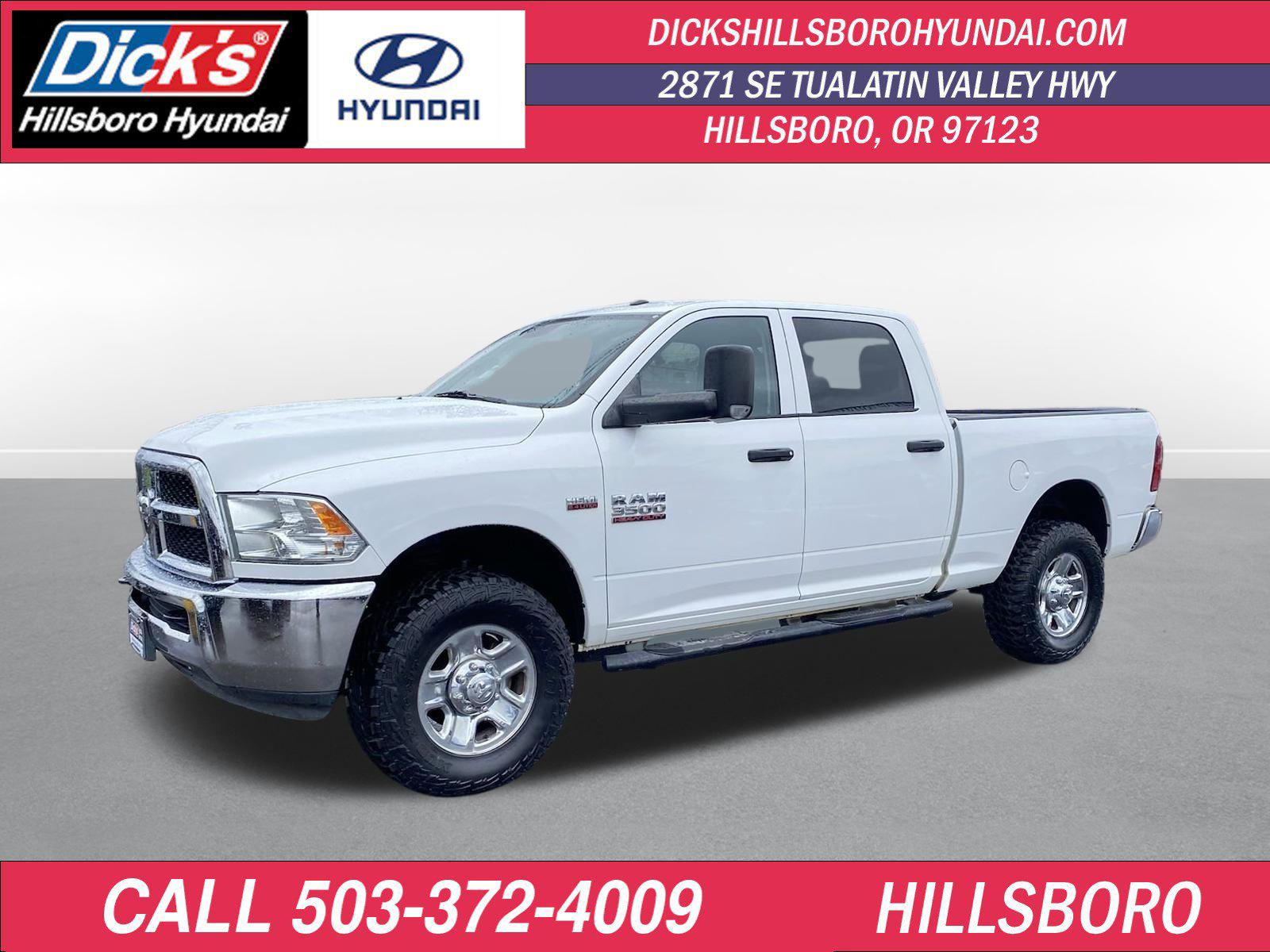 2018 Ram 3500 Tradesman Bright White Clearcoat 4WD 6.4L Heavy Duty V8 HEMI w/MDS 6-Speed AutomaticCLEAN CARFAX: NO ACCIDENTS, FULLY SERVICED/MAINTAINED, 1-Year SiriusXM Radio Service, 4-Wheel Disc Brakes, 4.10 Axle Ratio, 40/20/40 Split Bench Seat, 6 Speakers, ABS brakes, Air Conditioning, AM/FM radio, Auto-dimming Rear-View mirror, Brake assist, Bright Front Bumper, Bright Grille, Bright Rear Bumper, Carpet Floor Covering, Chrome Appearance Group, Cloth 40/20/40 Bench Seat, Delay-off headlights, Driver door bin, Dual front impact airbags, Dual front side impact airbags, Electric Shift-On-The-Fly Transfer Case, Electronic Stability Control, Electronically Controlled Throttle, Exterior Mirrors Courtesy Lamps, Exterior Mirrors w/Heating Element, Exterior Mirrors w/Supplemental Signals, For More Info, Call 800-643-2112, Front & Rear Floor Mats, Front anti-roll bar, Front Armrest w/Cupholders, Front Bumper Sight Shields, Front Center Armrest, Fully automatic headlights, HD Vinyl 40/20/40 Split Bench Seat, Heated door mirrors, Integrated Voice Command w/Bluetooth, Low tire pressure warning, Manual Adjust Seats, Media Hub (USB, AUX), Mini Floor Console, Occupant sensing airbag, Overhead airbag, ParkView Rear Back-Up Camera, Passenger door bin, Popular Equipment Group, Power door mirrors, Power steering, Power windows, Protection Group, Quick Order Package 22A Tradesman, Radio data system, Radio: 3.0, Radio: Uconnect 3.0, Rear Folding Seat, Rear step bumper, Rear View Auto Dim Mirror w/Display, Remote Keyless Entry, SiriusXM Satellite Radio, Speed control, Storage Tray, Tachometer, Tilt steering wheel, Tip Start, Traction control, Trailer Brake Control, Turn signal indicator mirrors, Variably intermittent wipers, Vendor Painted Cargo Box Tracking, Voltmeter, Wheels: 18 x 8.0 Steel, Wheels: 18 x 8.0 Steel Chrome Clad.Clean CARFAX.Odometer is 9530 miles below market average!You make the drive, we'll make the deal! Come to www.dickshillsborohyundai.com To See Our Specials!! Call us at 503-608-7456 For help with any of our departments!!