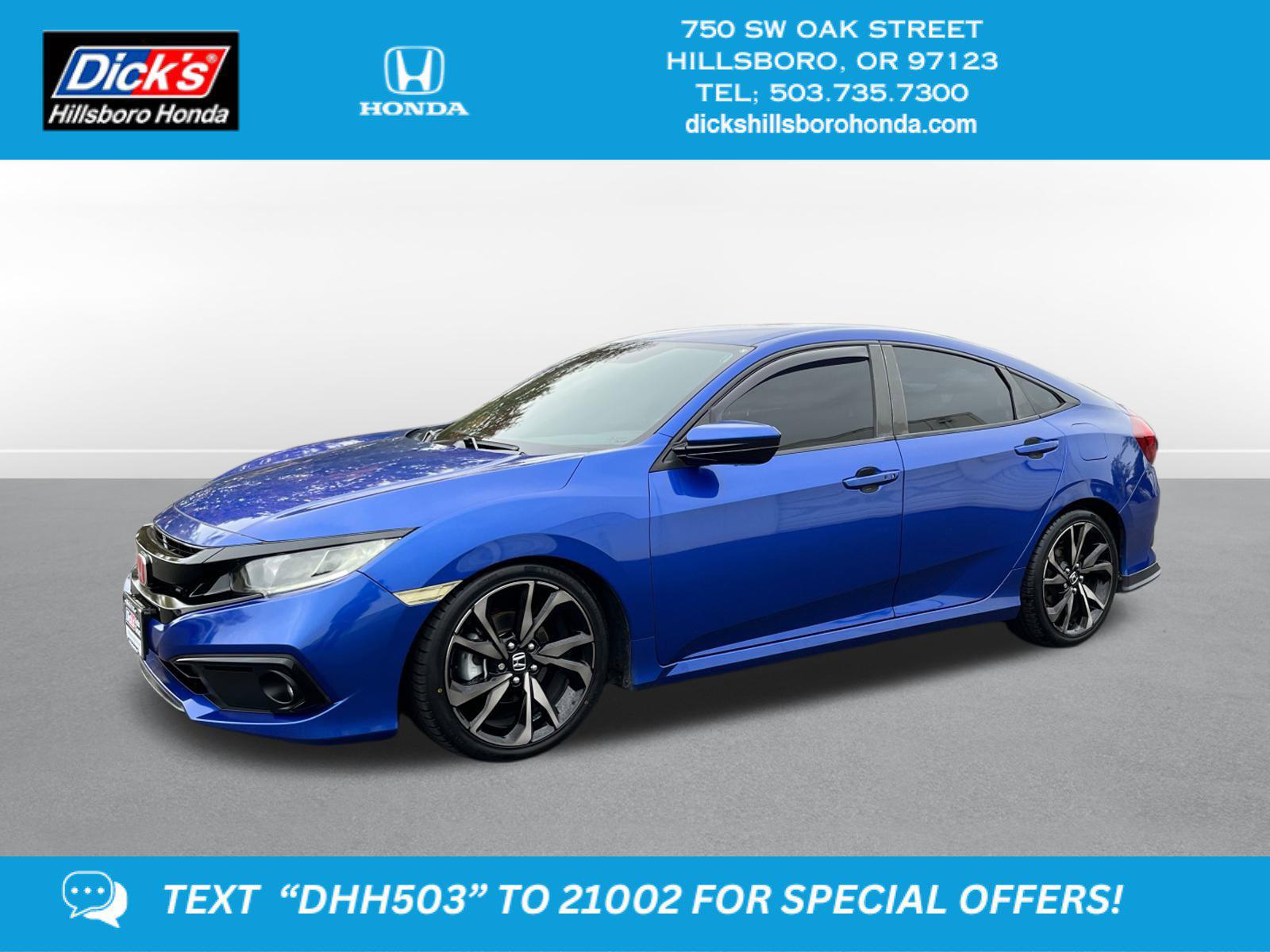 Amazing service history and brand new tires!! 2019 Honda Civic Sport Aegean Blue Metallic FWD CVT 2.0L I4 DOHC 16V i-VTEC**NEW TIRES**, Black w/Leather Seat Trim, Air Conditioning, AM/FM radio, Power steering, Power windows, Remote keyless entry, 4-Wheel Disc Brakes, 8 Speakers, ABS brakes, Alloy wheels, Apple CarPlay/Android Auto, Auto High-beam Headlights, Automatic temperature control, Brake assist, Bumpers: body-color, Cloth Seat Trim, Delay-off headlights, Driver door bin, Driver vanity mirror, Dual front impact airbags, Dual front side impact airbags, Electronic Stability Control, Emergency communication system: HondaLink, Exterior Parking Camera Rear, Forward collision: Collision Mitigation Braking System (CMBS) + FCW mitigation, Four wheel independent suspension, Front anti-roll bar, Front Bucket Seats, Front Center Armrest, Front fog lights, Front reading lights, Fully automatic headlights, Illuminated entry, Lane departure: Lane Keeping Assist System (LKAS) active, Leather Shift Knob, Low tire pressure warning, Occupant sensing airbag, Outside temperature display, Overhead airbag, Panic alarm, Passenger door bin, Passenger vanity mirror, Power door mirrors, Radio data system, Radio: 180-Watt AM/FM Audio System, Rear anti-roll bar, Rear window defroster, Security system, Speed control, Speed-sensing steering, Split folding rear seat, Spoiler, Steering wheel mounted audio controls, Tachometer, Telescoping steering wheel, Tilt steering wheel, Traction control, Trip computer, Wheels: 18 Alloy w/Gloss Black Inserts, **AUTOMATIC HEADLIGHTS**, **BACKUP CAMERA**, **BLINDSPOT MONITOR**, **BLUETOOTH**, **NAVIGATION**, Black w/Leather Seat Trim, Air Conditioning, AM/FM radio, Power steering, Power windows, Remote keyless entry.Recent Arrival!29/37 City/Highway MPGYou get the peace of mind with our Royal Shield used vehicle limited warranty.You also get free 24-hour roadside assistance, rental coverage reimbursement , a free Carfax report, a free 50-point vehicle inspection, a copy of our inspection checklist & more! Why buy an used car without warranty, when you can buy ours and get this amazing coverage?