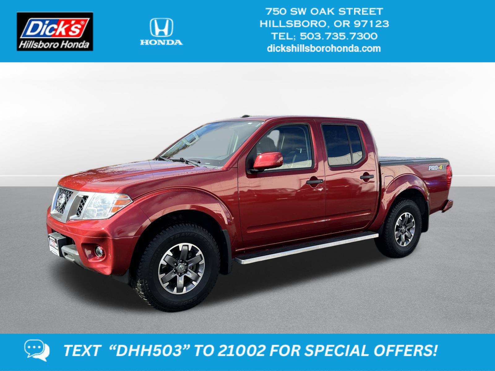 Caliente Pro4X with two caring owners and fantastic service history!! 2019 Nissan Frontier PRO-4X Cayenne Red Metallic 4WD 5-Speed Automatic with Overdrive 4.0L V6 DOHC**LOCAL TRADE**, FULLY SERVICED/MAINTAINED, 4WD, 10 Speakers, 3.357 Axle Ratio, 4-Wheel Disc Brakes, ABS brakes, Air Conditioning, Alloy wheels, AM/FM radio: SiriusXM, Anti-whiplash front head restraints, Auto-dimming Rear-View mirror, Automatic temperature control, Bumpers: body-color, CD player, Compass, Delay-off headlights, Driver door bin, Driver vanity mirror, Dual front impact airbags, Dual front side impact airbags, Electronic Stability Control, Exterior Parking Camera Rear, Front anti-roll bar, Front Bucket Seats, Front Center Armrest, Front dual zone A/C, Front fog lights, Front reading lights, Front wheel independent suspension, Fully automatic headlights, Heated front seats, Illuminated entry, Leather Shift Knob, Low tire pressure warning, Navigation System, Occupant sensing airbag, Outside temperature display, Overhead airbag, Overhead console, Panic alarm, Passenger door bin, Passenger vanity mirror, Power door mirrors, Power steering, Power windows, Radio data system, Radio: Rockford Fosgate Premium Audio System, Rear Parking Sensors, Rear step bumper, Remote keyless entry, Security system, Speed control, Speed-sensing steering, Split folding rear seat, Steering wheel mounted audio controls, Tachometer, Tilt steering wheel, Traction control, Trip computer, Unique Cloth Seat Trim, Variably intermittent wipers, Voltmeter, Wheels: 16 Off-Road Design Machine-Finish Alloy, 4WD.Recent Arrival!You get the peace of mind with our Royal Shield used vehicle limited warranty.You also get free 24-hour roadside assistance, rental coverage reimbursement , a free Carfax report, a free 50-point vehicle inspection, a copy of our inspection checklist & more! Why buy an used car without warranty, when you can buy ours and get this amazing coverage?