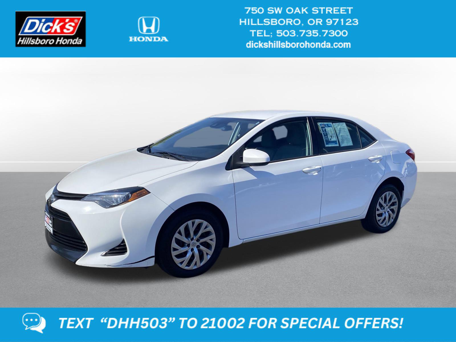 2019 Toyota Corolla L White FWD CVT 1.8L I4 DOHC6 Speakers, ABS brakes, Air Conditioning, AM/FM radio, Auto High-beam Headlights, Brake assist, Bumpers: body-color, CD player, Delay-off headlights, Driver door bin, Driver vanity mirror, Dual front impact airbags, Dual front side impact airbags, Electronic Stability Control, Exterior Parking Camera Rear, Fabric Seat Trim, Front anti-roll bar, Front Bucket Seats, Front Center Armrest w/Storage, Front reading lights, Front wheel independent suspension, Fully automatic headlights, Illuminated entry, Knee airbag, Low tire pressure warning, Occupant sensing airbag, Outside temperature display, Overhead airbag, Passenger door bin, Passenger vanity mirror, Power door mirrors, Power steering, Power windows, Radio data system, Radio: Entune Audio w/6.1 Screen, Rear anti-roll bar, Rear window defroster, Speed control, Speed-sensing steering, Split folding rear seat, Steering wheel mounted audio controls, Tachometer, Telescoping steering wheel, Tilt steering wheel, Traction control, Trip computer, Wheels: 15 x 6.0 Styled Steel.28/36 City/Highway MPGCome to www.dickshillsborohonda.com To See Our Specials!! Call us at (503) 735-7310 For help with any of our departments!! We gave it a full lube-oil-filter service, pressure tested the coolant/antifreeze system for leaks & protection, checked the brakes & tires, checked all parts/systems for excessive wear & tear, topped off needed fluids, detailed the vehicle and gave it a thorough diagnostic/frame/safey inspection!Awards:* 2019 KBB.com Best Resale Value Awards * 2019 KBB.com Brand Image Awards