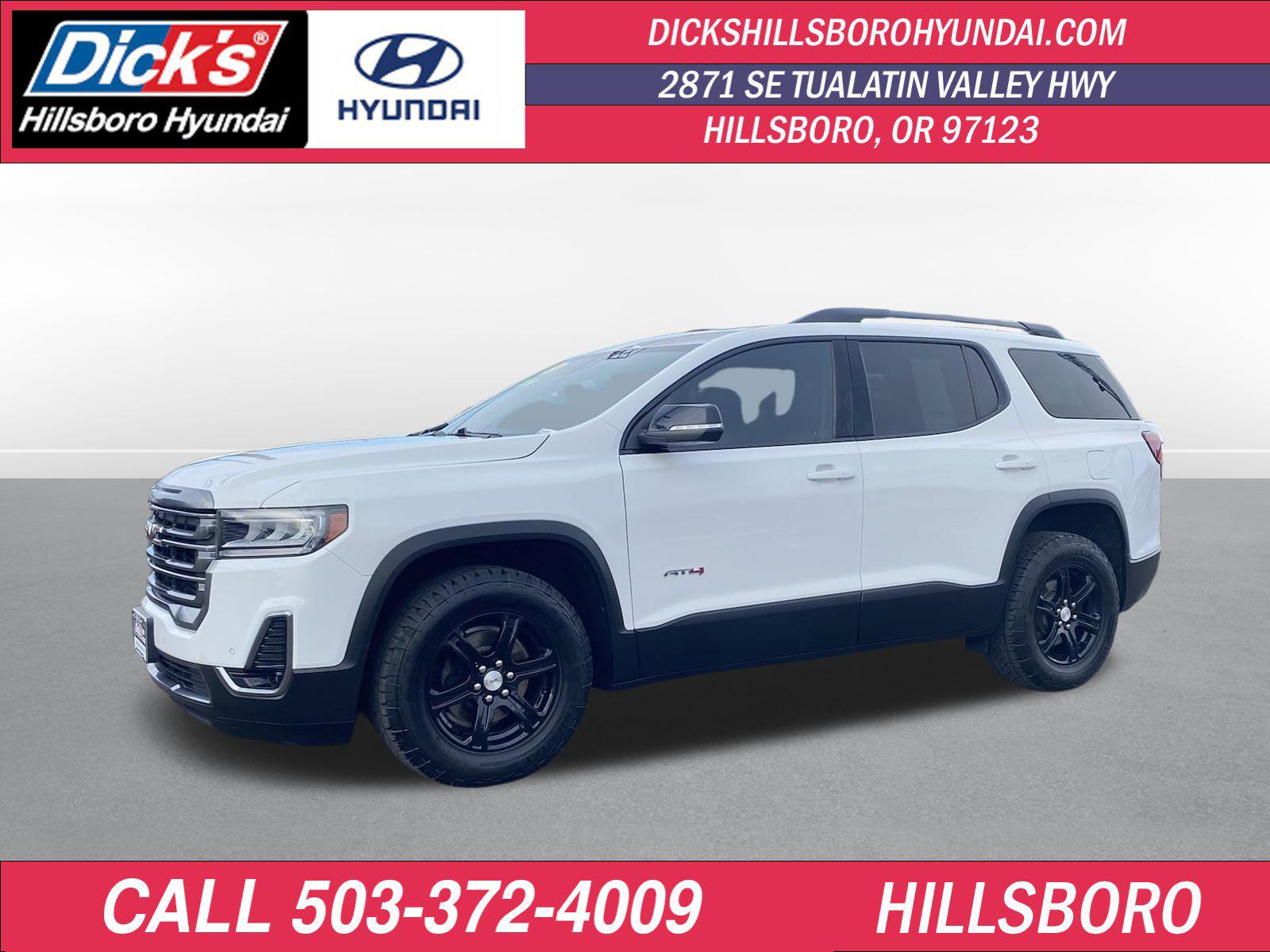 2020 GMC Acadia AT4 Summit White AWD 3.6L V6 SIDI 9-Speed AutomaticAWD, Jet Black/Kalahari Leather, Automatic Emergency Braking, Driver Alert Package II (BGP), Dual SkyScape 2-Panel Power Sunroof, Following Distance Indicator, Forward Collision Alert, Front & Rear Park Assist, Front Pedestrian Braking, IntelliBeam Automatic High-Beam Headlamps, Lane Keep Assist w/Lane Departure Warning, Safety Alert Seat, 1st & 2nd Row All-Weather Floor Liner (LPO), 3.49 Final Drive Axle Ratio, 4-Way Manual Passenger Seat Adjuster, 4-Wheel Disc Brakes, 5-Passenger (2-3 Seating Configuration), 6 Speakers, 6-Speaker Audio System Feature, 8-Way Power Driver Seat Adjuster, ABS brakes, Air Conditioning, Alloy wheels, AM/FM radio: SiriusXM, Apple CarPlay/Android Auto, Auto High-beam Headlights, Auto-dimming Rear-View mirror, Automatic temperature control, Brake assist, Bumpers: body-color, Compass, Delay-off headlights, Driver door bin, Driver vanity mirror, Dual front impact airbags, Dual front side impact airbags, Electronic Stability Control, Emergency communication system: OnStar and GMC connected services capable, Floor Liner Package (LPO), Four wheel independent suspension, Front anti-roll bar, Front Bucket Seats, Front Center Armrest, Front dual zone A/C, Front fog lights, Front reading lights, Fully automatic headlights, Garage door transmitter, Heated door mirrors, Heated Driver & Front Passenger Seats, Heated front seats, Illuminated entry, Knee airbag, Low tire pressure warning, Occupant sensing airbag, Outside temperature display, Overhead airbag, Overhead console, Panic alarm, Passenger door bin, Passenger vanity mirror, Power door mirrors, Power Driver Lumbar Control Seat Adjuster, Power driver seat, Power Liftgate, Power steering, Power windows, Premium audio system: GMC Infotainment System, Premium Cloth Seat Trim, Radio data system, Radio: AM/FM 8 Diagonal Multi-Touch Navigation, Rear air conditioning, Rear anti-roll bar, Rear reading lights, Rear seat center armrest, Rear window defroster, Rear window wiper, Remote keyless entry, Roof rack: rails only, Security system, SiriusXM Radio, Speed control, Speed-sensing steering, Split folding rear seat, Spoiler, Steering wheel mounted audio controls, Tachometer, Telescoping steering wheel, Tilt steering wheel, Traction control, Trip computer, Turn signal indicator mirrors, Variably intermittent wipers, Voltmeter, Wheels: 17 Gloss Black Aluminum, AWD, Jet Black/Kalahari Leather, Automatic Emergency Braking, Driver Alert Package II (BGP), Dual SkyScape 2-Panel Power Sunroof, Following Distance Indicator, Forward Collision Alert, Front & Rear Park Assist, Front Pedestrian Braking, IntelliBeam Automatic High-Beam Headlamps, Lane Keep Assist w/Lane Departure Warning, Safety Alert Seat.CARFAX One-Owner. Clean CARFAX.Odometer is 14973 miles below market average!You make the drive, we'll make the deal! Come to www.dickshillsborohyundai.com To See Our Specials!! Call us at 503-608-7456 For help with any of our departments!!