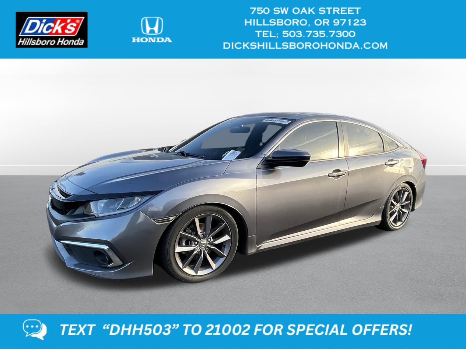 2020 Honda Civic EX-L Polished Metal Metallic FWD CVT 1.5L I-4 DI DOHC TurbochargedCLEAN CARFAX: NO ACCIDENTS, **NEW FRONT TIRES**, Gray w/Leather Seat Trim, 4-Wheel Disc Brakes, 8 Speakers, ABS brakes, Adaptive Cruise Control: Adaptive Cruise Control (ACC) with Low-Speed Follow, Air Conditioning, Alloy wheels, AM/FM radio: SiriusXM, Apple CarPlay/Android Auto, Auto High-beam Headlights, Auto-dimming Rear-View mirror, Automatic temperature control, Brake assist, Bumpers: body-color, Delay-off headlights, Driver door bin, Driver vanity mirror, Dual front impact airbags, Dual front side impact airbags, Electronic Stability Control, Emergency communication system: HondaLink, Exterior Parking Camera Rear, Forward collision: Collision Mitigation Braking System (CMBS) + FCW mitigation, Four wheel independent suspension, Front anti-roll bar, Front Bucket Seats, Front Center Armrest, Front dual zone A/C, Front fog lights, Front reading lights, Fully automatic headlights, Garage door transmitter: HomeLink, Heated door mirrors, Heated Front Bucket Seats, Heated front seats, Illuminated entry, Lane departure: Lane Keeping Assist System (LKAS) active, Leather Seat Trim, Leather Shift Knob, Low tire pressure warning, Occupant sensing airbag, Outside temperature display, Overhead airbag, Overhead console, Panic alarm, Passenger door bin, Passenger vanity mirror, Power door mirrors, Power driver seat, Power moonroof, Power steering, Power windows, Radio data system, Radio: 180-Watt AM/FM/HD/SiriusXM Audio System, Rear anti-roll bar, Rear seat center armrest, Rear window defroster, Remote keyless entry, Security system, Speed control, Speed-sensing steering, Speed-Sensitive Wipers, Split folding rear seat, Spoiler, Steering wheel mounted audio controls, Tachometer, Telescoping steering wheel, Tilt steering wheel, Traction control, Trip computer, Variably intermittent wipers, Prior HONDA FACTORY CERTIFIED VEHICLE, Gray w/Leather Seat Trim.Recent Arrival!32/42 City/Highway MPGYou get the peace of mind with our Royal Shield used vehicle limited warranty.You also get free 24-hour roadside assistance, rental coverage reimbursement , a free Carfax report, a free 50-point vehicle inspection, a copy of our inspection checklist & more! Why buy an used car without warranty, when you can buy ours and get this amazing coverage?