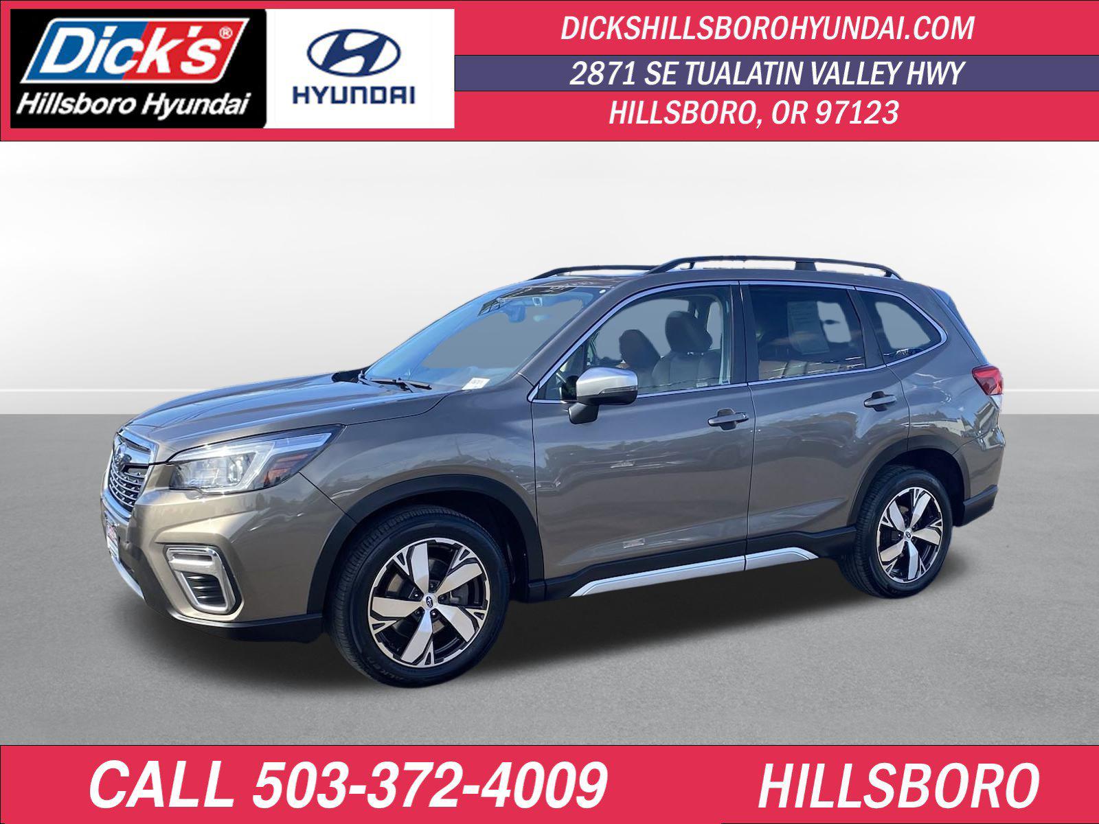 2020 Subaru Forester Touring Sepia Bronze Metallic AWD 2.5L 4-Cylinder DOHC 16V VVT Lineartronic CVTCLEAN CARFAX: NO ACCIDENTS, **LOCAL TRADE**, FULLY SERVICED/MAINTAINED, 3.70 Axle Ratio, 4-Wheel Disc Brakes, 9 Speakers, ABS brakes, Air Conditioning, Alloy wheels, AM/FM radio: SiriusXM, Auto High-beam Headlights, Automatic temperature control, Brake assist, Bumpers: body-color, CD player, Driver door bin, Driver vanity mirror, Dual front impact airbags, Dual front side impact airbags, Electronic Stability Control, Emergency communication system: STARLINK Safety and Security (Subscription Required), Exterior Parking Camera Rear, Four wheel independent suspension, Front anti-roll bar, Front Bucket Seats, Front Center Armrest, Front dual zone A/C, Front fog lights, Front reading lights, Fully automatic headlights, harman kardon 576W Amp & Speaker System, harman/kardon® Speakers, Heated door mirrors, Heated Front Bucket Seats, Heated front seats, Heated rear seats, Heated steering wheel, HVAC memory, Illuminated entry, Knee airbag, Leather Shift Knob, Low tire pressure warning, Memory seat, Navigation System, Occupant sensing airbag, Outside temperature display, Overhead airbag, Overhead console, Paddle-Shift Control Switches, Panic alarm, Passenger door bin, Passenger vanity mirror, Perforated Leather-Trimmed Upholstery, Power door mirrors, Power driver seat, Power Liftgate, Power moonroof: Panoramic, Power passenger seat, Power steering, Power windows, Premium audio system: harman/kardon, Radio data system, Radio: Subaru Starlink 8.0 Multimedia Nav System, Rear anti-roll bar, Rear seat center armrest, Rear window defroster, Rear window wiper, Remote keyless entry, Roof rack: rails only, Security system, Speed control, Speed-sensing steering, Split folding rear seat, Spoiler, STARLINK/Apple CarPlay/Android Auto, Steering wheel mounted audio controls, Tachometer, Telescoping steering wheel, Tilt steering wheel, Traction control, Trip computer, Turn signal indicator mirrors, Variably intermittent wipers, Wheels: 18 x 7.0J Blk Machine Touring Alum Alloy.Clean CARFAX.Odometer is 4409 miles below market average!You make the drive, we'll make the deal! Come to www.dickshillsborohyundai.com To See Our Specials!! Call us at 503-608-7456 For help with any of our departments!!
