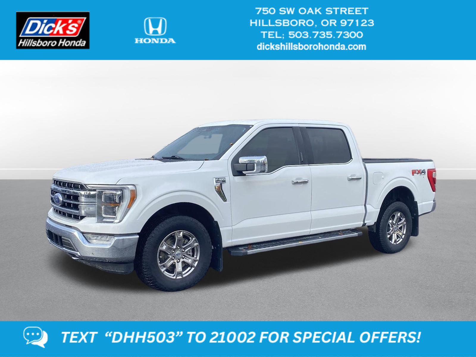 2021 Ford F-150 Lariat Star White Metallic Tri-Coat 4WD 10-Speed Automatic 3.5L V6 EcoBoostCLEAN CARFAX: NO ACCIDENTS, LEATHER INTERIOR, FULLY SERVICED/MAINTAINED, 4WD, 2nd Row Heated Seats, 4x4 FX4 Off-Road Bodyside Decal, 6 Chrome Running Board, ABS brakes, Alloy wheels, Chrome 2-Bar Grille w/4 Minor Bars, Chrome Door & Tailgate Handles w/Body-Color Bezel, Chrome Single-Tip Exhaust, Chrome Skull Caps on Exterior Mirrors, Compass, Connected Built-In Navigation, Electronic Stability Control, Equipment Group 502A High, Evasive Steering Assist, Ford Co-Pilot360 Assist 2.0, Front dual zone A/C, FX4 Off-Road Package, Heated door mirrors, Heated front seats, Heated Steering Wheel, Hill Descent Control, Illuminated entry, Intelligent Adaptive Cruise Control w/Stop & Go, Intersection Assist, Lariat Chrome Appearance Package, Leather-Trimmed Bucket Seats, LED Projector w/Dynamic Bending Headlamps, Low tire pressure warning, Monotube Rear Shocks, Off-Road Tuned Front Shock Absorbers, Onboard 400W Outlet, Power Glass Sideview Mirr w/Chrome Skull Caps, Power Tilt/Telescoping Steering Column w/Memory, Radio: B&O Unleashed Sound System by Bang & Olufsen, Rain-Sensing Wipers, Remote keyless entry, Rock Crawl Mode, Speed Sign Recognition, Traction control, Tray Style Floor Liner, Universal Garage Door Opener, Wheels: 18 Chrome-Like PVD.Recent Arrival!Come to www.dickshillsborohonda.com To See Our Specials!! Call us at (866) 973-3693 For help with any of our departments!! We gave it a full lube-oil-filter service, pressure tested the coolant/antifreeze system for leaks & protection, checked the brakes & tires, checked all parts/systems for excessive wear & tear, topped off needed fluids, detailed the vehicle and gave it a thorough diagnostic/frame/safey inspection!Awards:* NACTOY 2021 North American Truck of the Year *DESIRABLE FEATURES:* 4X4, Navigation, Backup camera, WiFi capability, Bluetooth, Heated seating, Leather, Multi-zone AC. Your 2021 Ford F-150 LARIAT is perfect for daily work or weekend road trips to our neighboring communities of Portland, Hillsboro & Beaverton, OR.This 2021 Ford F-150 LARIAT features a Star White Metallic Tri-coat exterior with a Black/baja Tan Interior. With 72,789 miles this 2021 F-150 with a 3.5 l engine is your best buy near Portland, Hillsboro & Beaverton, Oregon.*TECHNOLOGY FEATURES:* Navigation System, GPS System, WiFi Mobile Hotspot, SiriusXM Satellite Radio, Smart Device Integration, Bluetooth Connection. Your Star White Metallic Tri-coat 2021 Ford F-150 LARIAT is available for immediate test drives in Hillsboro, OR.*STOCK# MFA00683 PRICED BELOW MARKET RETAIL VALUE!* Dicks Hillsboro Honda has this used 2021 Ford F-150 LARIAT for sale today. Don't forget Dicks Hillsboro Honda WILL BUY OR TRADE FOR YOUR USED CAR, USED TRUCK and/or USED SUV!*Our Truck Dealership in Portland:* Call Dicks Hillsboro Honda today at *(503) 616-4532 TO SCHEDULE YOUR TEST DRIVE* of this 2021 Ford F-150 LARIAT! Dicks Hillsboro Honda serves Portland, Hillsboro & Beaverton, OR. You can also visit us at, 750 SW Oak St. Hillsboro OR, 97123 to check it out in person! Dicks Hillsboro Honda Used Truck Superstore provides Honda truck parts and service for new and used truck owners near Portland, Hillsboro & Beaverton, OR.*MECHANICAL FEATURES:* This Ford F-150 comes factory equipped with an impressive 3.5 l engine, an 10-speed automatic w/od transmission. Other installed mechanical features include Heated Mirrors, Adjustable Pedals, Four Wheel Drive, Power Mirrors, Power Passenger Seat, Cruise Control, Ventilated Disc Brakes, Intermittent Wipers, Power Steering, Tires- All-Terrain, Variable Speed Intermittent Wipers. Dicks Hillsboro Honda is Northwest Oregon's only location where you can test drive a new, used or Certified Honda truck. That's why more Oregon used truck shoppers and owners drive to Dicks Hillsboro Honda in Hillsboro for genuine Honda truck sales, service, parts and accessories.*INTERIOR OPTIONS:* Automatic Climate Control, Air Conditioned Front Seats, Dual Power Seats, Leather Seats, Heated Front Seats, Memory Seats, Power Drivers Seat, Adjustable Lumbar Seats, Leather Wrapped Steering Wheel, Driver Illuminated Vanity Mirror, Pass-Through Rear Seat, Bench Seat *Split*, Air Conditioning, Auto Dimming R/V Mirror, Multi-zone Climate Control, Passenger Illuminated Visor Mirror, Vanity Mirrors, Floor Mats, AM/FM Stereo, Rear Window Defroster, Bench Seats, Tilt Steering Wheel*EXTERIOR OPTIONS:* Aluminum Wheels, Fog Lights, Power Folding Mirrors, Spare Tire *Full Size*, Trailer Hitch Receiver, Front Tow Hooks, Privacy Glass, Auto Headlamp*SAFETY OPTIONS:* Electronic Stability Control, Rear Parking Aid, Back-Up Camera, Lane Keeping Assist System, Blind Spot Monitoring, LED Headlights, Security System, Front Collision Mitigation, Driver Restriction Features, Integrated Turn Signal Mirrors, Daytime Running Lights, Rear Collision Warning, Brake Assist, Drivers Air Bag, Driver Alert System, Tire Pressure Monitoring System, ABS Brakes, Rear Air Bag, Child Proof Locks, Driver Front Side Impact Air Bag, Passenger Air Bag Sensor, Front Head Air Bag. This 2021 Ford F-150 LARIAT comes standard with peace of mind for any driving conditions.The Dicks Hillsboro Honda used truck super center in Northwest Oregon is an easy drive or fly in from anywhere in the United States. Our truck super center sits just west of Beaverton where your 2021 Ford F-150 LARIAT will be waiting for your test drive and/or shipping instructions.We're glad you found this used Ford F-150 for sale at our truck dealership in Hillsboro, OR. Looking for financing? Our Dicks Hillsboro Honda finance specialist will find the best rates available for this used Ford F-150 for sale. Dicks Hillsboro Honda has new trucks for sale and used trucks for sale in Hillsboro.Your Dicks Hillsboro Honda Used Truck Super center near Portland proudly offers this 2021 Ford F-150 LARIAT for sale, stock# MFA00683. Dicks Hillsboro Honda stands out among Nort