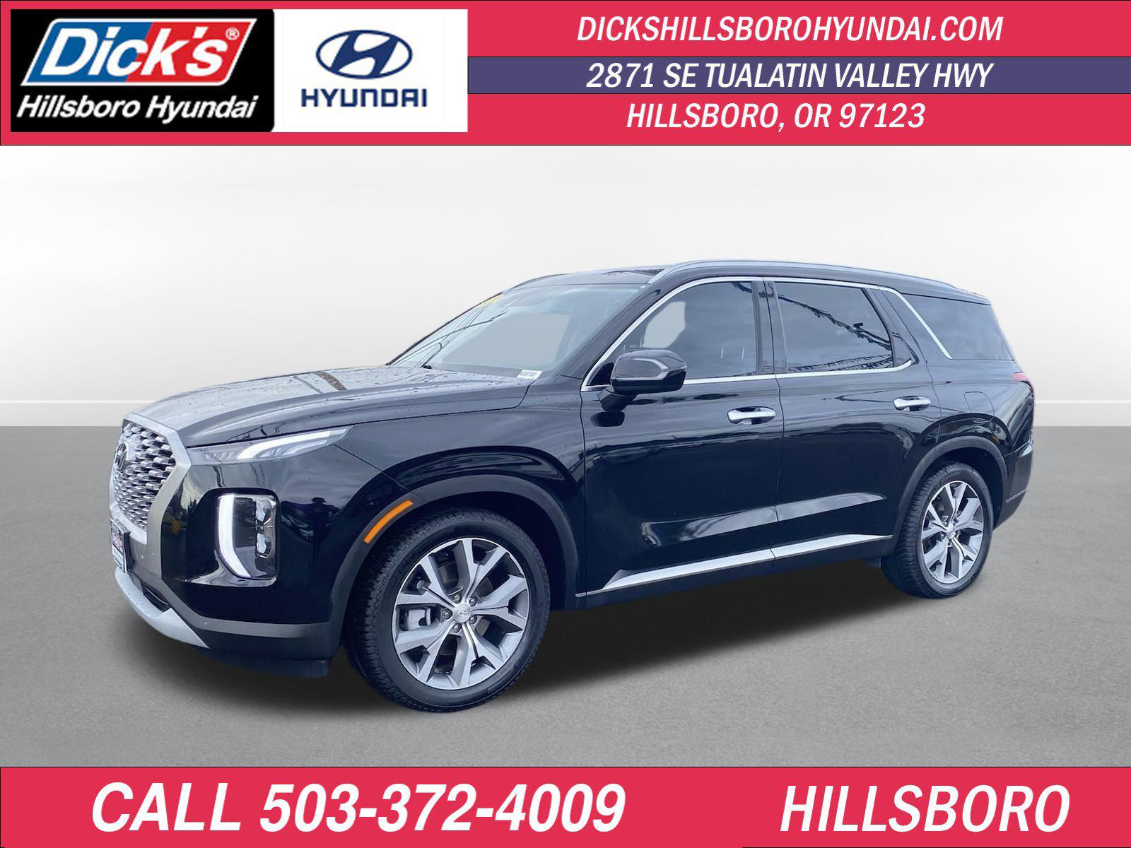 2022 Hyundai Palisade SEL Abyss Black Pearl AWD V6 8-Speed Automatic with SHIFTRONIC1-OWNER!, CLEAN CARFAX: NO ACCIDENTS, **LOCAL TRADE**, LEATHER INTERIOR, FULLY SERVICED/MAINTAINED, 115-Volt AC Power Outlet, 3.648 Axle Ratio, 3rd row seats: split-bench, 3rd Row USB Outlets, 4-Wheel Disc Brakes, 6 Speakers, 7 High-Resolution Cluster Display, 8-Passenger Bench Seating P4, 8-Way Power Passenger Seat, 8P Bench Seat Package, ABS brakes, Acoustic Front Side Glass, Air Conditioning, Alloy wheels, AM/FM radio, Apple CarPlay & Android Auto, Auto High-beam Headlights, Auto Leveling Rear Suspension, Auto-dimming Rear-View mirror, Automatic temperature control, Brake assist, Bumpers: body-color, Cargo Block, Cargo Net, Cargo Package, Cargo Tray, Cloth Seat Trim, Convenience Package P2, Delay-off headlights, Driver door bin, Driver vanity mirror, Driver's Seat Integrated Memory System, Dual front impact airbags, Dual front side impact airbags, Electronic Stability Control, Four wheel independent suspension, Front anti-roll bar, Front Bucket Seats, Front Center Armrest, Front dual zone A/C, Front Parking Sensors, Front reading lights, Fully automatic headlights, Garage door transmitter: HomeLink, Hands-Free Smart Liftgate, Heated 2nd Row Seats, Heated door mirrors, Heated Front Bucket Seats, Heated front seats, Heated Steering Wheel, Highway Drive Assist I, Illuminated entry, Knee airbag, Leather Seat Trim, LED Taillights, Low tire pressure warning, Occupant sensing airbag, Outside temperature display, Overhead airbag, Overhead console, Panic alarm, Passenger door bin, Passenger vanity mirror, Power 3rd Row Seating, Power door mirrors, Power driver seat, Power moonroof, Power steering, Power windows, Premium Dashboard & Door Armrests, Premium Package P3, Radio data system, Radio: AM/FM/MP3 Display Audio, Radio: AM/FM/MP3 Premium Audio System, Rear air conditioning, Rear anti-roll bar, Rear audio controls, Rear reading lights, Rear Side Window Sunshades, Rear window defroster, Rear window wiper, Reclining 3rd row seat, Remote keyless entry, Roof rack: rails only, Security system, Speed control, Speed-sensing steering, Split folding rear seat, Spoiler, Steering wheel mounted audio controls, Tachometer, Telescoping steering wheel, Tilt steering wheel, Traction control, Trip computer, Turn signal indicator mirrors, Ultrasonic Rear Occupant Alert, Variably intermittent wipers, Wheels: 18 x 7.5J Machine Finish Alloy, Wheels: 20 x 7.5J Split 5-Spoke Machined Alloy, Wireless Phone Charger.CARFAX One-Owner. Clean CARFAX.You make the drive, we'll make the deal! Come to www.dickshillsborohyundai.com To See Our Specials!! Call us at 503-608-7456 For help with any of our departments!!