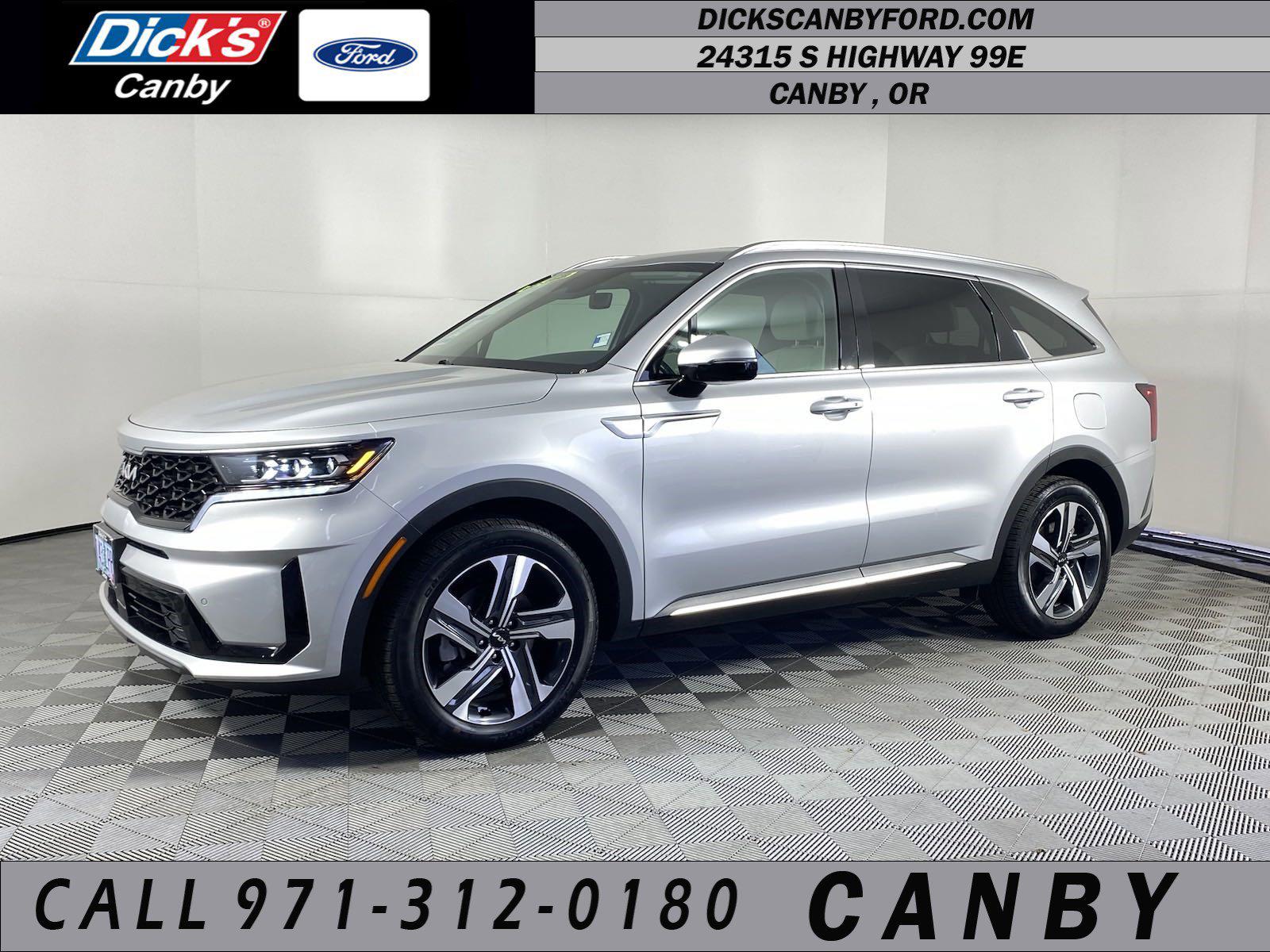 This Kia Sorento Plug-In Hybrid boasts a Intercooled Turbo Gas/Electric I-4 1.6 L/98 engine powering this Automatic transmission. SILKY SILVER, GRAY, SYNTEX ARTIFICIAL LEATHER SEAT TRIM, FOLDING CARGO TRAY.* This Kia Sorento Plug-In Hybrid Features the Following Options *CARPETED FLOOR MATS, Wheels: 19 Machine-Finished Alloy, Voice Activated Dual Zone Front Automatic Air Conditioning, Variable Intermittent Wipers, Trunk/Hatch Auto-Latch, Trip Computer, Transmission: 6-Speed Automatic -inc: paddle shifters, Transmission w/Driver Selectable Mode, Tires: 235/55R19, Tire Specific Low Tire Pressure Warning.* Stop By Today *Stop by Dick's Canby Ford located at 24315 Hwy 99 East, Canby, OR 97013 for a quick visit and a great vehicle!