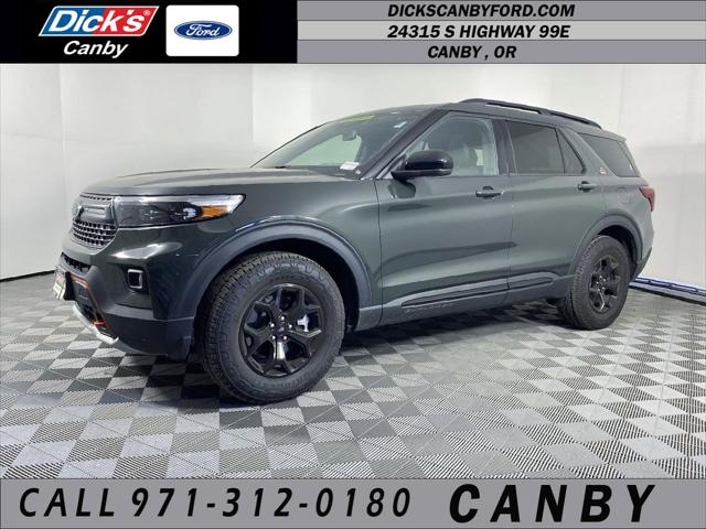 Forged Green Metallic 4WD 2.3L EcoBoost I-4 10-Speed Automatic 4WD, 110V/150W AC Power Outlet, 3.58 Torsen Limited Slip Rear Axle, 3rd Row PowerFold Seat, 3rd row seats: bench, 4-Wheel Disc Brakes, 4G LTE Wi-Fi Hotspot Credit, 6 Speakers, ABS brakes, Air Conditioning, Alloy wheels, AM/FM radio: SiriusXM, AM/FM Stereo, Auto High-beam Headlights, Auto-Dimming Interior Rear-View Mirror, Automatic temperature control, Brake assist, Bumpers: body-color, Compass, Delay-off headlights, Driver door bin, Driver vanity mirror, Dual front impact airbags, Dual front side impact airbags, Electronic Stability Control, Emergency communication system: SYNC 3 911 Assist, Equipment Group 800A, Exterior Parking Camera Rear, FordPass Connect, Four wheel independent suspension, Front anti-roll bar, Front Bucket Seats, Front Center Armrest, Front dual zone A/C, Front fog lights, Front reading lights, Fully automatic headlights, Heated ActiveX Trimmed Captain's Chairs, Heated door mirrors, Heated front seats, Heated rear seats, Heated steering wheel, Illuminated entry, Knee airbag, Leather steering wheel, Low tire pressure warning, Navigation System, Occupant sensing airbag, Outside temperature display, Overhead airbag, Overhead console, Panic alarm, Passenger door bin, Passenger vanity mirror, Power door mirrors, Power driver seat, Power Liftgate, Power passenger seat, Power steering, Power windows, Radio: B&O Sound System by Bang & Olufsen, Rear air conditioning, Rear anti-roll bar, Rear reading lights, Rear window defroster, Rear window wiper, Remote keyless entry, Roof rack: rails only, Security system, SelectShift Capability w/Paddle Shifters, Sideview Mirrors w/Gloss Black Caps, Speed control, Speed-sensing steering, Speed-Sensitive Wipers, Split folding rear seat, Spoiler, Sport steering wheel, Steering wheel mounted audio controls, SYNC 3 Communications & Entertainment System, SYNC 3/Apple CarPlay/Android Auto, Tachometer, Telescoping steering wheel, Tilt steering wheel, Timberline Technology Package, Traction control, Trip computer, Twin Panel Moonroof, Universal Garage Door Opener (UGDO), Variably intermittent wipers, Voice-Activated Touchscreen Navigation System, Wheels: 18 High Gloss Black-Painted Aluminum, Wireless Charging Pad, 4WD.Come to www.dickscanbyford.com To see our specials!! Call us at 503-266-2097 For help with any of our departments. Dick's Canby Ford- You just have to know where to go!