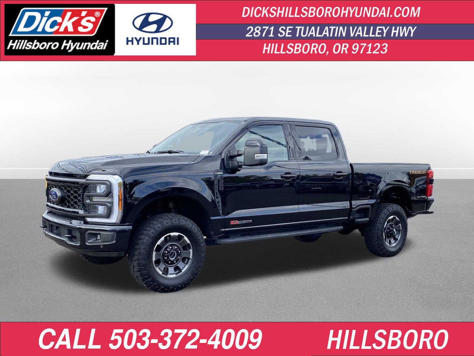 2023 Ford F-350SD Lariat Tremor Ultimate Pkgs Agate Black Metallic 4WD Power Stroke 6.7L V8 DI 32V OHV Turbodiesel 10-Speed AutomaticGorgeous truck with all the stuff you want!1-OWNER!, CLEAN CARFAX: NO ACCIDENTS, LEATHER INTERIOR, 4WD, 4-Way Adjustable Headrests, 5th Wheel/Gooseneck Hitch Prep Package, ABS brakes, Alloy wheels, Compass, Electronic Stability Control, Front dual zone A/C, Front Sensing System, Head-Up Display, Heated door mirrors, Heated front seats, Heated rear seats, Illuminated entry, Intelligent Adaptive Cruise Control w/Stop-and-Go, Lane Departure Warning System, Lane Keeping Assist, Lariat Ultimate Package, Low tire pressure warning, Order Code 618A, Power-Deployable Running Boards, Pro Trailer Backup Assist, Pro Trailer Hitch Assist, Radio: B&O Sound System by Bang & Olufsen, Radio: B&O Unleashed Sound System by Bang & Olufsen, Remote keyless entry, SiriusXM Radio w/360L, SYNC 4 w/Enhanced Voice Recognition, Tailgate Step & Handle, Textured Matte Finish Off-Road Running Boards, Tow Technology Package, Traction control, Tremor Off-Road Package, Twin Panel Power Moonroof, Upfitter Switches (6), Wheels: 18 Machined/Tarnished Dark Anodized Alum, Wireless Charging Pad.Clean CARFAX.You make the drive, we'll make the deal! Come to www.dickshillsborohyundai.com To See Our Specials!! Call us at 503-608-7456 For help with any of our departments!!