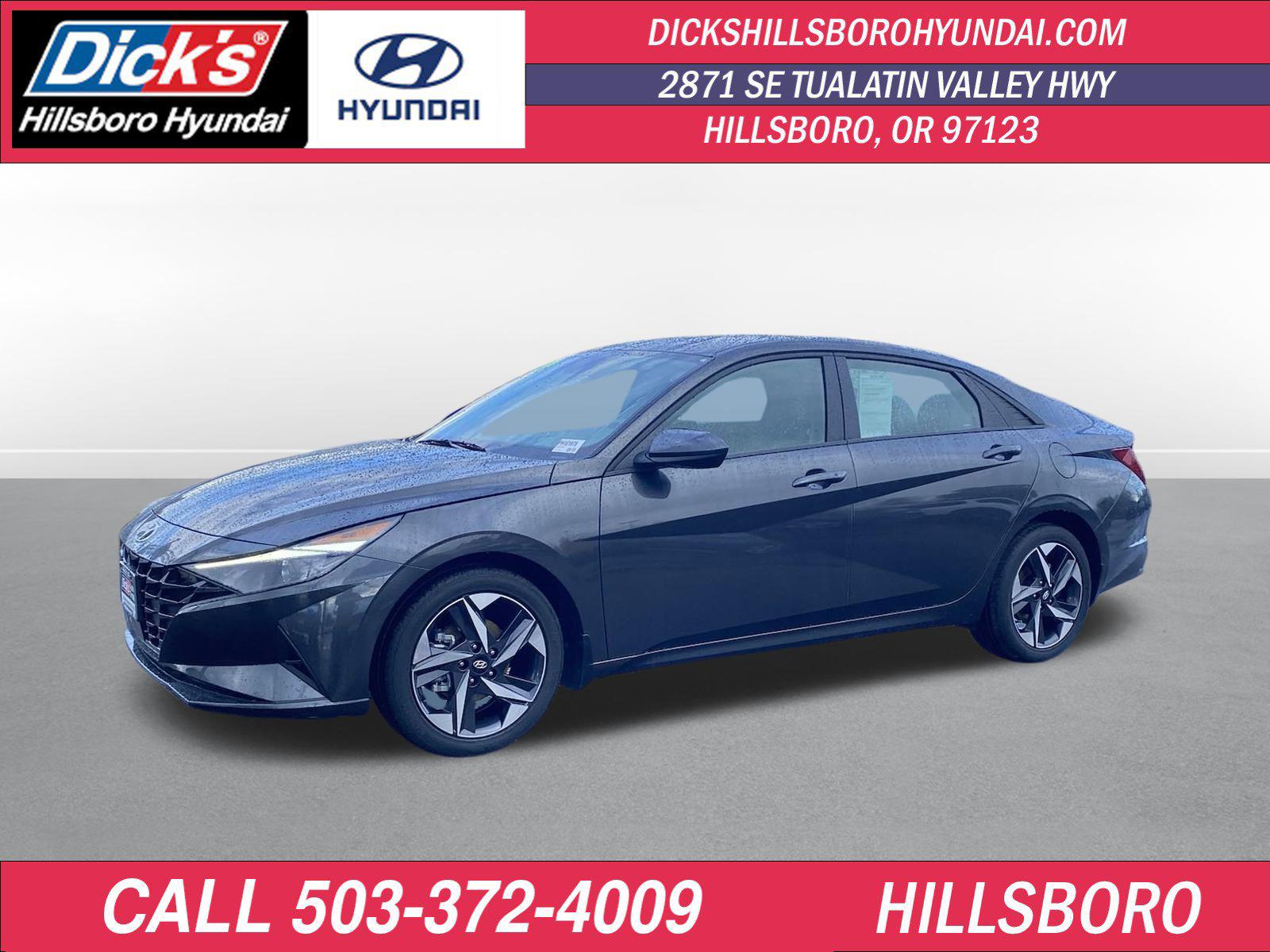 2023 Hyundai Elantra SEL Portofino Gray FWD I4 CVT16 x 6.5J Alloy Wheels, 4-Wheel Disc Brakes, 6 Speakers, ABS brakes, Air Conditioning, Alloy wheels, AM/FM radio: SiriusXM, Apple CarPlay & Android Auto, Auto High-beam Headlights, Automatic temperature control, Brake assist, Bumpers: body-color, Cloth Seat Trim, Delay-off headlights, Driver door bin, Driver vanity mirror, Dual front impact airbags, Dual front side impact airbags, Electronic Stability Control, Emergency communication system: Blue Link Connected Car Service (3-year complimentary subscription), Exterior Parking Camera Rear, Front anti-roll bar, Front Bucket Seats, Front Center Armrest, Front dual zone A/C, Front reading lights, Front wheel independent suspension, Fully automatic headlights, Illuminated entry, Low tire pressure warning, Occupant sensing airbag, Outside temperature display, Overhead airbag, Overhead console, Panic alarm, Passenger door bin, Passenger vanity mirror, Power door mirrors, Power steering, Power windows, Radio: AM/FM/HD/SiriusXM Display Audio, Rear window defroster, Remote keyless entry, Security system, Speed control, Speed-sensing steering, Steering wheel mounted audio controls, Tachometer, Telescoping steering wheel, Tilt steering wheel, Traction control, Trip computer, Variably intermittent wipers.CARFAX One-Owner. Clean CARFAX.Odometer is 9685 miles below market average!You make the drive, we'll make the deal! Come to www.dickshillsborohyundai.com To See Our Specials!! Call us at 503-608-7456 For help with any of our departments!!
