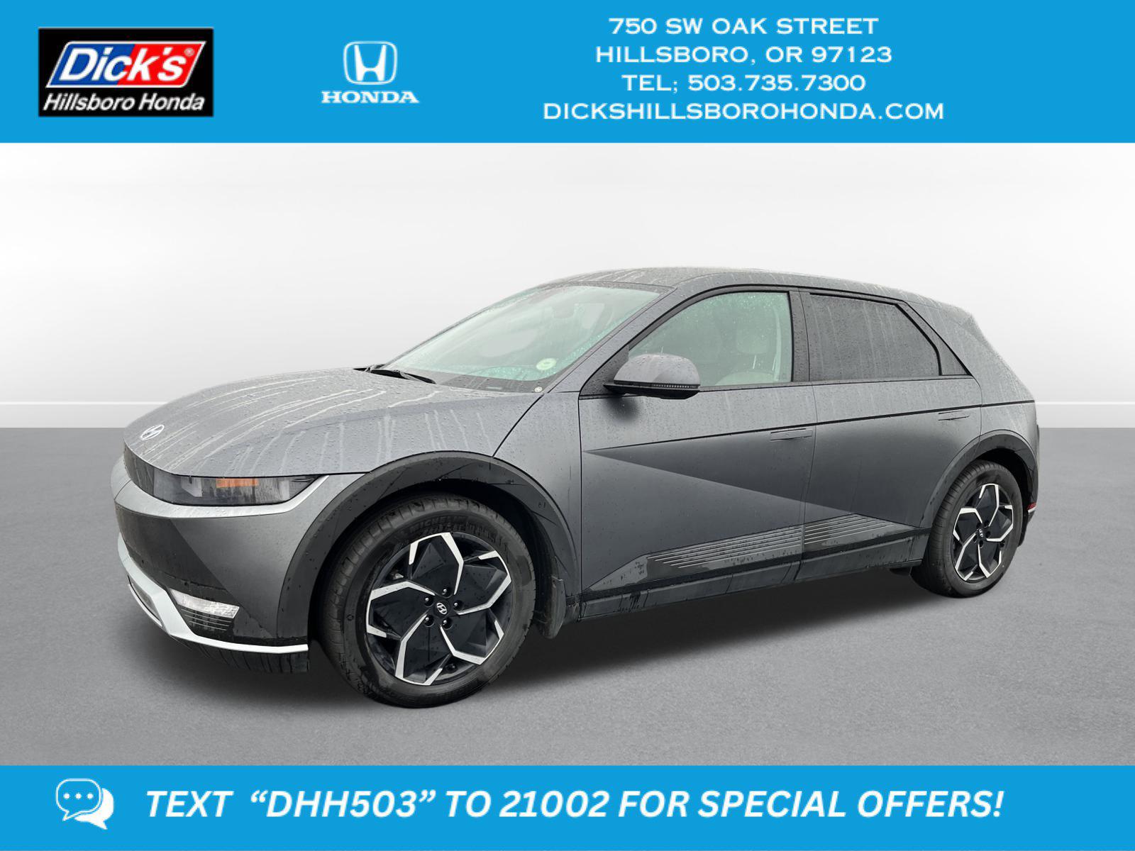 Just off lease w/lots of full factory warranty left! 2023 Hyundai IONIQ 5 SEL Shooting Star (Matte Gray) AWD 1-Speed Automatic Electric Motor1-OWNER!, CLEAN CARFAX: NO ACCIDENTS, 4-Wheel Disc Brakes, 4.706 Axle Ratio, 6 Speakers, ABS brakes, Air Conditioning, Alloy wheels, AM/FM radio: SiriusXM, Apple CarPlay & Android Auto, Auto High-beam Headlights, Auto-dimming Rear-View mirror, Automatic temperature control, Bodyside moldings, Brake assist, Bumpers: body-color, Carpeted Floor Mats, Delay-off headlights, Driver door bin, Driver vanity mirror, Dual front impact airbags, Dual front side impact airbags, Electronic Stability Control, Emergency communication system: Blue Link Connected Car Service (3-year complimentary subscription), Four wheel independent suspension, Front anti-roll bar, Front Bucket Seats, Front Center Armrest w/Storage, Front dual zone A/C, Front reading lights, Fully automatic headlights, Garage door transmitter: HomeLink, H-Tex Leatherette Seating Surfaces, harman/kardon® Speakers, Heated door mirrors, Heated Front Bucket Seats, Heated front seats, Heated steering wheel, Illuminated entry, Leather steering wheel, Low tire pressure warning, Navigation System, Occupant sensing airbag, Option Group 01, Outside temperature display, Overhead airbag, Overhead console, Panic alarm, Passenger door bin, Passenger vanity mirror, Power door mirrors, Power driver seat, Power Liftgate, Power steering, Power windows, Radio: AM/FM/SiriusXM/HD Display Audio System, Rear anti-roll bar, Rear reading lights, Rear seat center armrest, Rear window defroster, Remote keyless entry, Security system, Speed control, Speed-sensing steering, Split folding rear seat, Spoiler, Steering wheel mounted audio controls, Telescoping steering wheel, Tilt steering wheel, Traction control, Trip computer, Turn signal indicator mirrors, Variably intermittent wipers, Wheels: 19 x 7.5J Aero Alloy, **ADAPTIVE CRUISE**, **APPLE CARPLAY/ ANDROID**, **AUTOMATIC HEADLIGHTS**, **BACKUP CAMERA**, **BLINDSPOT MONITOR**, **BLUETOOTH**, **COLLISION AVOIDANCE **, **COLLISION WARNING SYSTEM **, **DROWSINESS ALERT**, **HEATED/COOLED SEATS**, **KEYLESS ACCESS W/ PUSHBUTTON START**, **LANE KEEPING ASSIST**, **NAVIGATION**, **TOUCHSCREEN CONTROLS**.Recent Arrival!113/90 City/Highway MPGCome to www.dickshillsborohonda.com To See Our Specials!! Call us at (503) 735-7310 For help with any of our departments!! We gave it a full lube-oil-filter service, pressure tested the coolant/antifreeze system for leaks & protection, checked the brakes & tires, checked all parts/systems for excessive wear & tear, topped off needed fluids, detailed the vehicle and gave it a thorough diagnostic/frame/safey inspection!Awards:* Motor Trend Automobiles of the year