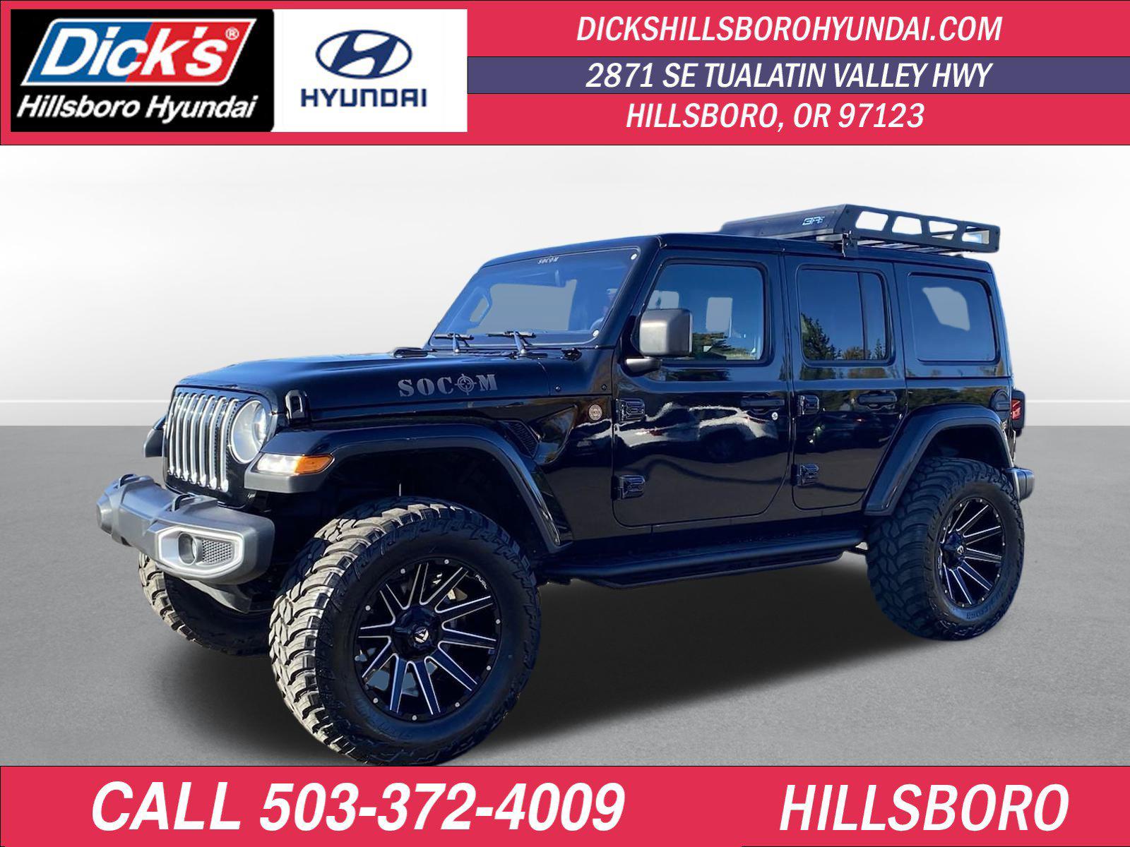 2023 Jeep Wrangler Sahara Black Clearcoat 4WD 2.0L I4 DOHC 8-Speed AutomaticGorgeous Wrangler with new Lift, Tires, Wheels, and Gear rack for whatever adventures you cook up!1-OWNER!, CLEAN CARFAX: NO ACCIDENTS, **NEW TIRES**, 3.45 Overall Top Gear Ratio, 4-Wheel Disc Brakes, 9 Speakers, ABS brakes, Air Conditioning, Alloy wheels, AM/FM radio: SiriusXM, Apple CarPlay/Android Auto, Auto-dimming Rear-View mirror, Automatic temperature control, Aux Battery, Brake assist, Cloth Low-Back Bucket Seats, Compass, Delay-off headlights, Driver door bin, Driver vanity mirror, Dual front impact airbags, Dual front side impact airbags, Electronic Stability Control, Emergency communication system: SiriusXM Guardian, Front anti-roll bar, Front Bucket Seats, Front Center Armrest w/Storage, Front dual zone A/C, Front fog lights, Front reading lights, Fully automatic headlights, Garage door transmitter, Heated door mirrors, Heavy Duty Suspension w/Gas Shocks, Illuminated entry, Integrated roll-over protection, Low tire pressure warning, Navigation System, Non-Lock Fuel Cap w/o Discriminator, Occupant sensing airbag, Outside temperature display, Panic alarm, ParkView Rear Back-Up Camera, Passenger door bin, Passenger vanity mirror, Power door mirrors, Power steering, Power windows, Quick Order Package 22G Sahara, Radio data system, Radio: Uconnect 4C Nav w/8.4 Display, Rear anti-roll bar, Rear reading lights, Remote keyless entry, Security system, Speed control, Split folding rear seat, Steering wheel mounted audio controls, Stop-Start Dual Battery System, Tachometer, Telescoping steering wheel, Tilt steering wheel, Traction control, Trip computer, Variably intermittent wipers, Voltmeter, Wheels: 18 x 7.5 Machined w/Gray Spokes.Clean CARFAX.You make the drive, we'll make the deal! Come to www.dickshillsborohyundai.com To See Our Specials!! Call us at 503-608-7456 For help with any of our departments!!