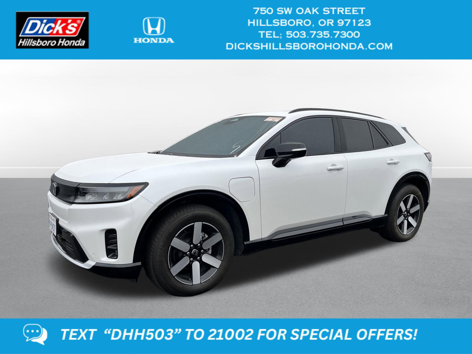 Better than new!! 2024 Honda Prologue Touring Snowfall Pearl AWD 1-Speed Automatic Electric ZEV 288hpCertified. HondaTrue Certified EV Details:* Vehicle History* 167 Point Inspection* 8 Years / 100,000 Miles High Voltage Battery Coverage, Four Tire Rotations, Honda Care Roadside Assistance for 2 year/100,000 miles (whichever occurs first).* Warranty Deductible: $0* Limited Warranty: 24 Month/86,000 Mile (whichever comes first) after new car warranty expires or from certified purchase date* Roadside Assistance* Transferable Warranty1-OWNER!, CLEAN CARFAX: NO ACCIDENTS, LEATHER INTERIOR, HONDA FACTORY CERTIFIED VEHICLE, HondaTrue Certified EV Certified, 12 Speakers, 19 x 8.5 Alloy Wheels, 4-Wheel Disc Brakes, ABS brakes, Air Conditioning, Alloy wheels, AM/FM radio: SiriusXM, Apple CarPlay/Android Auto, Auto High-beam Headlights, Auto-dimming Rear-View mirror, Automatic temperature control, Axle Ratio: TBD, Bose Premium Audio System, Brake assist, Bumpers: body-color, Compass, Delay-off headlights, Driver door bin, Driver vanity mirror, Dual front impact airbags, Dual front side impact airbags, Electronic Stability Control, Emergency communication system: HondaLink connected by OnStar, Exterior Parking Camera Rear, Four wheel independent suspension, Front anti-roll bar, Front Bucket Seats, Front Center Armrest, Front dual zone A/C, Front fog lights, Front reading lights, Fully automatic headlights, Garage door transmitter: HomeLink, Heated door mirrors, Heated Front Bucket Seats, Heated front seats, Illuminated entry, Knee airbag, Lane departure: Lane Keeping Assist System (LKAS) active, Leather Seat Trim, Leather steering wheel, Low tire pressure warning, Memory seat, Navigation System, Occupant sensing airbag, Outside temperature display, Overhead airbag, Overhead console, Panic alarm, Passenger door bin, Passenger vanity mirror, Power door mirrors, Power driver seat, Power Liftgate, Power moonroof, Power passenger seat, Power steering, Power windows, Rear anti-roll bar, Rear reading lights, Rear seat center armrest, Rear window defroster, Rear window wiper, Remote keyless entry, Speed control, Split folding rear seat, Spoiler, Steering wheel mounted audio controls, Telescoping steering wheel, Tilt steering wheel, Traction control, Trip computer, Turn signal indicator mirrors, Variably intermittent wipers, **ADAPTIVE CRUISE**, **ADAPTIVE HEADLIGHTS**, **APPLE CARPLAY/ ANDROID**, **AUTOMATIC HEADLIGHTS**, **BACKUP CAMERA**, **BLINDSPOT MONITOR**, **BLUETOOTH**, **COLLISION AVOIDANCE **, **COLLISION WARNING SYSTEM **, **DROWSINESS ALERT**, **HEADS UP DISPLAY**, **HEATED/COOLED SEATS**, **KEYLESS ACCESS W/ PUSHBUTTON START**, **LANE KEEPING ASSIST**, **NAVIGATION**, **TOUCHSCREEN CONTROLS**.Recent Arrival!101/88 City/Highway MPGCome to www.dickshillsborohonda.com To See Our Specials!! Call us at (503) 735-7310 For help with any of our departments!! We gave it a full lube-oil-filter service, pressure tested the coolant/antifreeze system for leaks & protection, checked the brakes & tires, checked all parts/systems for excessive wear & tear, topped off needed fluids, detailed the vehicle and gave it a thorough diagnostic/frame/safey inspection!
