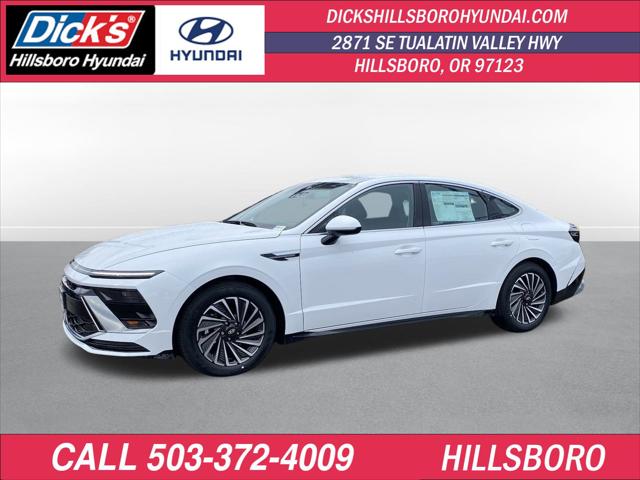 2024 Hyundai Sonata Hybrid SEL Serenity White FWD I4 6-Speed Automatic with ShiftronicI4, 17 x 7.0J Aluminum Alloy Wheels, 4-Wheel Disc Brakes, 6 Speakers, ABS brakes, Air Conditioning, All-Season Fitted Liners, Alloy wheels, AM/FM radio: SiriusXM, Apple CarPlay & Android Auto, Auto High-beam Headlights, Automatic temperature control, Brake assist, Bumpers: body-color, Cargo Block, Carpeted Floor Mats, Delay-off headlights, Driver door bin, Driver vanity mirror, Dual front impact airbags, Dual front side impact airbags, Electronic Stability Control, Emergency communication system, First Aid Kit, Four wheel independent suspension, Front anti-roll bar, Front Bucket Seats, Front Center Armrest, Front dual zone A/C, Front reading lights, Fully automatic headlights, Heated door mirrors, Heated Front Bucket Seats, Heated front seats, Illuminated entry, Knee airbag, Lane Departure Warning System, Leather steering wheel, Low tire pressure warning, Occupant sensing airbag, Option Group 01, Outside temperature display, Overhead airbag, Overhead console, Panic alarm, Passenger door bin, Passenger vanity mirror, Power door mirrors, Power driver seat, Power passenger seat, Power steering, Power windows, Premium Cloth Seating Surfaces, Radio data system, Radio: AM/FM/HD/SiriusXM, Rear anti-roll bar, Rear seat center armrest, Rear side impact airbag, Rear window defroster, Remote keyless entry, Security system, Speed control, Speed-sensing steering, Speed-Sensitive Wipers, Split folding rear seat, Spoiler, Steering wheel mounted audio controls, Telescoping steering wheel, Tilt steering wheel, Traction control, Trip computer, Variably intermittent wipers, Wheel Locks, I4.44/51 City/Highway MPG