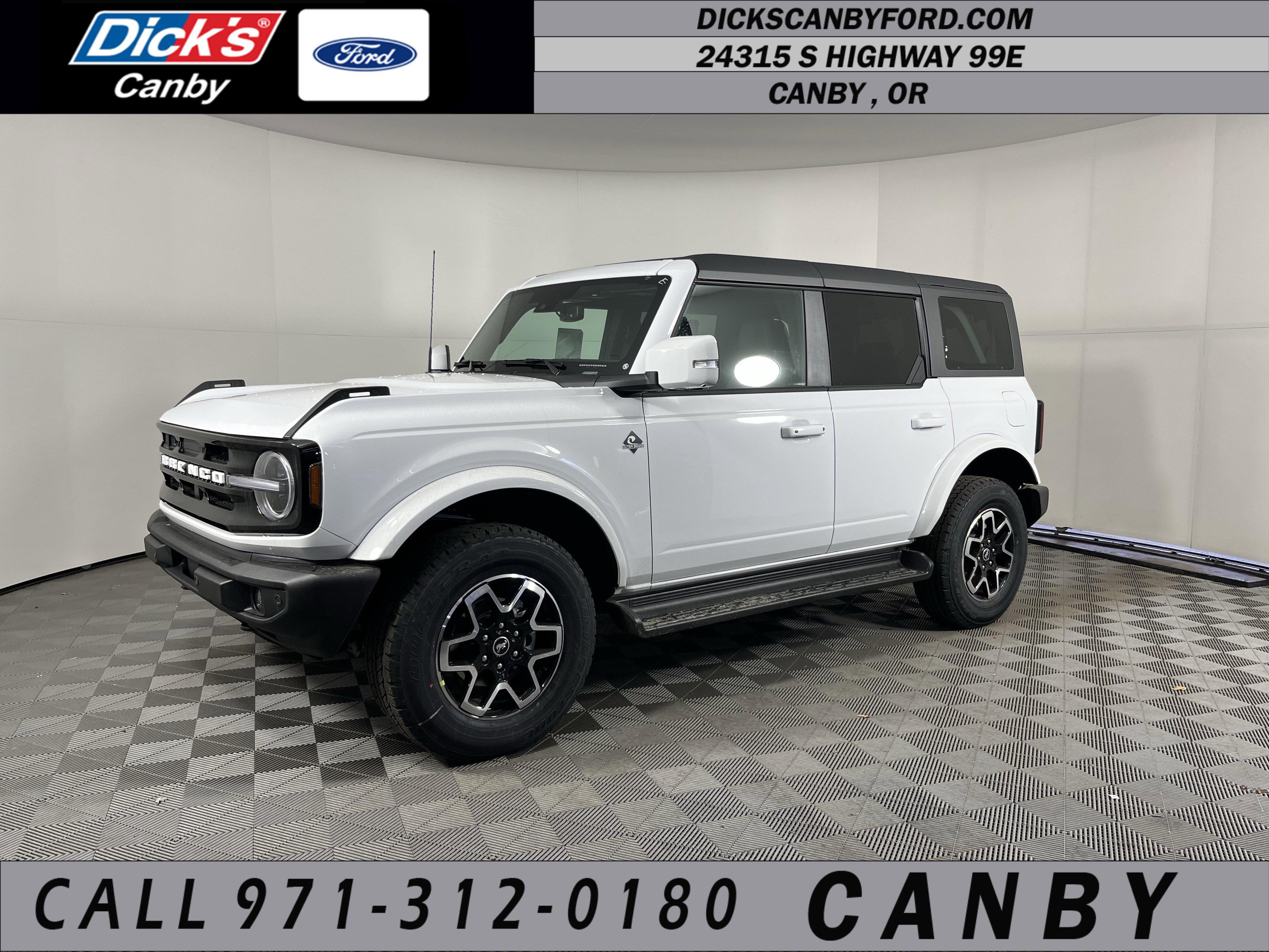 Scores 22 Highway MPG and 18 City MPG! This Ford Bronco delivers a Twin Turbo Regular Unleaded V-6 2.7 L/164 engine powering this Automatic transmission. ENGINE: 2.7L ECOBOOST V6 -inc: GVWR: 6,060 lbs, Wireless Phone Connectivity, Wheels: 18 Bright Machined Aluminum -inc: Black high gloss-painted.* This Ford Bronco Features the Following Options *Voice Activated Dual Zone Front Automatic Air Conditioning, Variable Intermittent Wipers, Trip Computer, Transmission: 10-Speed Automatic -inc: trail control and trail turn assist, Transmission w/Driver Selectable Mode, Sequential Shift Control and Oil Cooler, Tracker System, Towing Equipment -inc: Trailer Sway Control, Tires: P255/70R18 A/T -inc: full size spare tire w/TPMS, Tire Specific Low Tire Pressure Warning, Tailgate/Rear Door Lock Included w/Power Door Locks.* Stop By Today *Come in for a quick visit at Dick's Canby Ford, 24315 Hwy 99 East, Canby, OR 97013 to claim your Ford Bronco!