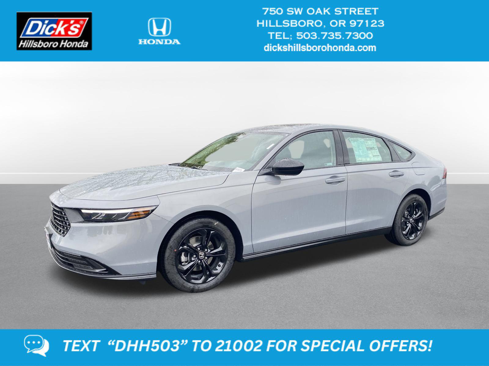 2025 Honda Accord SE Urban Gray Pearl FWD CVT 1.5T I4 DOHC 16V Turbocharged VTECBlack Cloth, 4-Wheel Disc Brakes, 8 Speakers, ABS brakes, Adaptive Cruise Control: Adaptive Cruise Control (ACC) with Low-Speed Follow, Air Conditioning, Alloy wheels, AM/FM radio, Apple CarPlay/Android Auto, Auto High-beam Headlights, Automatic temperature control, Blind Spot Information (BSI) System warning, Brake assist, Bumpers: body-color, Compass, Delay-off headlights, Driver door bin, Driver vanity mirror, Dual front impact airbags, Dual front side impact airbags, Electronic Stability Control, Emergency communication system: HondaLink Assist, Exterior Parking Camera Rear, Fabric Seat Trim, Four wheel independent suspension, Front anti-roll bar, Front Bucket Seats, Front Center Armrest, Front dual zone A/C, Front reading lights, Fully automatic headlights, Heated door mirrors, Heated Front Bucket Seats, Heated front seats, Illuminated entry, Knee airbag, Lane departure: Lane Keeping Assist System (LKAS) active, Low tire pressure warning, Occupant sensing airbag, Outside temperature display, Overhead airbag, Overhead console, Panic alarm, Passenger door bin, Passenger vanity mirror, Power door mirrors, Power driver seat, Power moonroof, Power steering, Power windows, Radio data system, Radio: 180-Watt Audio System, Rear anti-roll bar, Rear reading lights, Rear seat center armrest, Rear side impact airbag, Rear window defroster, Remote keyless entry, Security system, Speed control, Speed-sensing steering, Speed-Sensitive Wipers, Split folding rear seat, Steering wheel mounted audio controls, Tachometer, Telescoping steering wheel, Tilt steering wheel, Traction control, Trip computer, Variably intermittent wipers, Wheels: 17 x 7.5J Berlina Black, Black Cloth.29/37 City/Highway MPGThis 2025 Honda Accord SE features a Urban Gray Pearl exterior with a Black interior. Factory equipped with an impressive 1.5 l, and a cvt w/od transmission with fwd.*DESIRABLE FEATURES:* Turbocharged, Backup camera, WiFi capability, Heated seating, Moonroof, Bluetooth, Multi-zone AC. Your 2025 Honda Accord SE is one of 19 other models like this in stock Beaverton drivers will find available to test drive at our new vehicle showroom in Hillsboro, OR. This Honda Accord is perfect for any ones car needs in our neighboring communities of Portland, Hillsboro & Beaverton, OR.*TECHNOLOGY FEATURES:* This Honda Accord for sale near Portland includes WiFi Mobile Hotspot, GPS System, Keyless Start, Smart Device Integration, Bluetooth Connection, Keyless Entry.*Our Honda Dealership:* Call Dicks Hillsboro Honda today at *503-735-7310 to schedule your test drive* of this 2025 Honda Accord SE! Dicks Hillsboro Honda features a wide selection of new Honda vehicles for sale near Portland, Hillsboro & Beaverton Oregon. You can also visit us at, 750 SW Oak St. Hillsboro OR, 97123 to check it out in person!*MECHANICAL FEATURES:* Installed mechanical features include Push Button Start, Turbocharged Engine, Power One-touch down windows, Heated Mirrors, Power Locks, Power Mirrors, Front Wheel Drive, Traction Control, Ventilated Disc Brakes, Cruise Control, Intermittent Wipers, Variable Speed Intermittent Wipers, Power Steering, Tires - Rear Performance, Trip Computer, Tires - Front Performance*INTERIOR OPTIONS:* Moon Roof, Automatic Climate Control, Heated Front Seats, Power Drivers Seat, Cloth Seats, Adjustable Lumbar Seats, Air Conditioning, Bucket Front Seats, Steering Wheel Audio Controls, Pass-Through Rear Seat, Driver Illuminated Vanity Mirror, Passenger Illuminated Visor Mirror, Multi-zone Climate Control, Vanity Mirrors, AM/FM Stereo, Floor Mats, Auxiliary Audio Input, Rear Window Defroster, Tilt Steering Wheel, Bench Seats, Trip Odometer. Beaverton new Honda dealers simply cannot compete with Dicks Hillsboro Honda attention to stocking Honda cars, trucks & SUVs with the most popular interior options.*EXTERIOR OPTIONS:* Aluminum Wheels, Auto Headlamp, Spare Tire *Small Size**SAFETY OPTIONS:* Cross Traffic Alerts, Lane Keeping Assist System, Blind Spot Monitoring, Electronic Stability Control, Back-Up Camera, Lane Departure Warning, Security System, Cruise Control Steering Assist, Restricted driving mode, Brake Assist, Adaptive Cruise Control, Daytime Running Lights, Front Collision Mitigation, LED Headlights, Tire Pressure Monitoring System, Rear Air Bag, Drivers Air Bag, ABS Brakes, Driver Alert System, Knee AirBag, Child Proof Locks, Passenger Air Bag Sensor, Front Head Air Bag, Driver Front Side Impact Air BagOREGON'S BEST HONDA FINANCIAL CREDIT FINANCE RATES: are right here at Dicks Hillsboro Honda Hillsboro Dealership where we offer the most competitive Honda Financial finance rates near Portland for new & Certified Honda Financial Financing. Our brand Finance experts have solutions for everyone including bad credit car loans or first time buyer financing programs.Dicks Hillsboro Honda New Honda dealership in Northwest Oregon is an easy drive or fly in from anywhere in the United States. Our Honda dealership sits just west of Beaverton.When choosing Honda dealers Portland shoppers prefer the short drive to Hillsboro where Dick's Hillsboro Honda has a new Honda Superstore and has the best customer service. We're glad you found this new Honda Accord for sale at our Honda dealership near you in Beaverton in Hillsboro, OR. Looking for Honda financing? Our Dicks Hillsboro Honda finance specialist will find the best rates available for this new Honda Accord for sale. Dicks Hillsboro Honda has new cars for sale and used cars for sale in Hillsboro just west of Portland.