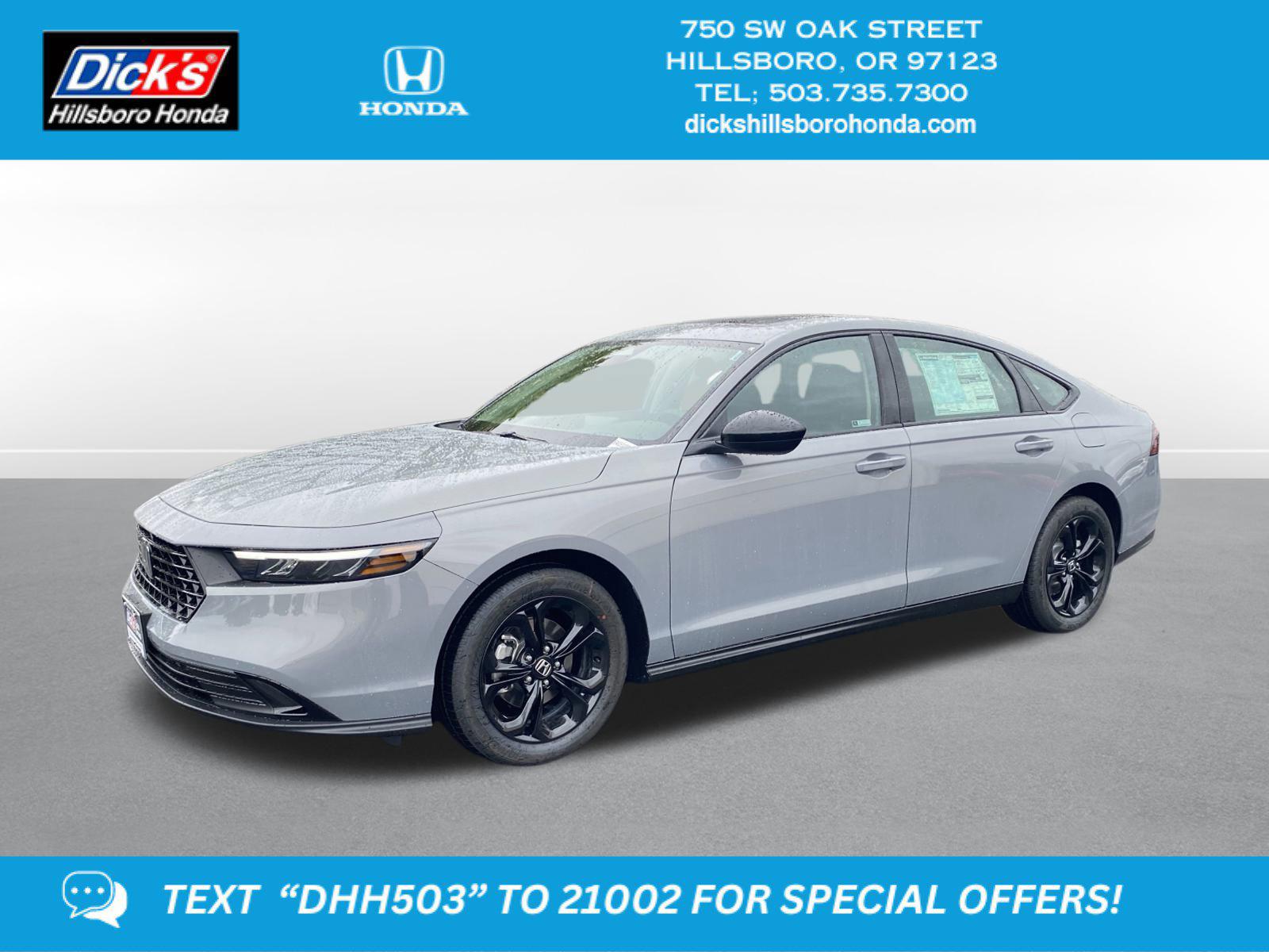 2025 Honda Accord SE Urban Gray Pearl FWD CVT 1.5T I4 DOHC 16V Turbocharged VTECBlack Cloth, 4-Wheel Disc Brakes, 8 Speakers, ABS brakes, Adaptive Cruise Control: Adaptive Cruise Control (ACC) with Low-Speed Follow, Air Conditioning, Alloy wheels, AM/FM radio, Apple CarPlay/Android Auto, Auto High-beam Headlights, Automatic temperature control, Blind Spot Information (BSI) System warning, Brake assist, Bumpers: body-color, Compass, Delay-off headlights, Driver door bin, Driver vanity mirror, Dual front impact airbags, Dual front side impact airbags, Electronic Stability Control, Emergency communication system: HondaLink Assist, Exterior Parking Camera Rear, Fabric Seat Trim, Four wheel independent suspension, Front anti-roll bar, Front Bucket Seats, Front Center Armrest, Front dual zone A/C, Front reading lights, Fully automatic headlights, Heated door mirrors, Heated Front Bucket Seats, Heated front seats, Illuminated entry, Knee airbag, Lane departure: Lane Keeping Assist System (LKAS) active, Low tire pressure warning, Occupant sensing airbag, Outside temperature display, Overhead airbag, Overhead console, Panic alarm, Passenger door bin, Passenger vanity mirror, Power door mirrors, Power driver seat, Power moonroof, Power steering, Power windows, Radio data system, Radio: 180-Watt Audio System, Rear anti-roll bar, Rear reading lights, Rear seat center armrest, Rear side impact airbag, Rear window defroster, Remote keyless entry, Security system, Speed control, Speed-sensing steering, Speed-Sensitive Wipers, Split folding rear seat, Steering wheel mounted audio controls, Tachometer, Telescoping steering wheel, Tilt steering wheel, Traction control, Trip computer, Variably intermittent wipers, Wheels: 17 x 7.5J Berlina Black, Black Cloth.29/37 City/Highway MPGThis 2025 Honda Accord SE features a Urban Gray Pearl exterior with a Black interior. Factory equipped with an impressive 1.5 l, and a cvt w/od transmission with fwd.*DESIRABLE FEATURES:* Turbocharged, Backup camera, Bluetooth, Heated seating, WiFi capability, Moonroof, Multi-zone AC. Your 2025 Honda Accord SE is one of 19 other models like this in stock Beaverton drivers will find available to test drive at our new vehicle showroom in Hillsboro, OR. This Honda Accord is perfect for any ones car needs in our neighboring communities of Portland, Hillsboro & Beaverton, OR.*TECHNOLOGY FEATURES:* This Honda Accord for sale near Portland includes WiFi Mobile Hotspot, GPS System, Keyless Start, Bluetooth Connection, Smart Device Integration, Keyless Entry.*Our Honda Dealership:* Call Dicks Hillsboro Honda today at *503-735-7310 to schedule your test drive* of this 2025 Honda Accord SE! Dicks Hillsboro Honda features a wide selection of new Honda vehicles for sale near Portland, Hillsboro & Beaverton Oregon. You can also visit us at, 750 SW Oak St. Hillsboro OR, 97123 to check it out in person!*MECHANICAL FEATURES:* Installed mechanical features include Push Button Start, Power One-touch down windows, Turbocharged Engine, Heated Mirrors, Front Wheel Drive, Traction Control, Power Locks, Power Mirrors, Ventilated Disc Brakes, Cruise Control, Intermittent Wipers, Trip Computer, Tires - Rear Performance, Variable Speed Intermittent Wipers, Power Steering, Tires - Front Performance*INTERIOR OPTIONS:* Heated Front Seats, Moon Roof, Automatic Climate Control, Cloth Seats, Power Drivers Seat, Adjustable Lumbar Seats, Air Conditioning, Steering Wheel Audio Controls, Driver Illuminated Vanity Mirror, Pass-Through Rear Seat, Bucket Front Seats, Multi-zone Climate Control, Passenger Illuminated Visor Mirror, Auxiliary Audio Input, Tilt Steering Wheel, Trip Odometer, Bench Seats, Rear Window Defroster, Floor Mats, AM/FM Stereo, Vanity Mirrors. Beaverton new Honda dealers simply cannot compete with Dicks Hillsboro Honda attention to stocking Honda cars, trucks & SUVs with the most popular interior options.*EXTERIOR OPTIONS:* Aluminum Wheels, Auto Headlamp, Spare Tire *Small Size**SAFETY OPTIONS:* Cross Traffic Alerts, Blind Spot Monitoring, Lane Departure Warning, Electronic Stability Control, Lane Keeping Assist System, Back-Up Camera, Adaptive Cruise Control, Restricted driving mode, Security System, Cruise Control Steering Assist, LED Headlights, Brake Assist, Daytime Running Lights, Front Collision Mitigation, Drivers Air Bag, Rear Air Bag, Driver Alert System, Knee AirBag, ABS Brakes, Tire Pressure Monitoring System, Front Head Air Bag, Driver Front Side Impact Air Bag, Passenger Air Bag Sensor, Child Proof LocksOREGON'S BEST HONDA FINANCIAL CREDIT FINANCE RATES: are right here at Dicks Hillsboro Honda Hillsboro Dealership where we offer the most competitive Honda Financial finance rates near Portland for new & Certified Honda Financial Financing. Our brand Finance experts have solutions for everyone including bad credit car loans or first time buyer financing programs.Dicks Hillsboro Honda New Honda dealership in Northwest Oregon is an easy drive or fly in from anywhere in the United States. Our Honda dealership sits just west of Beaverton.When choosing Honda dealers Portland shoppers prefer the short drive to Hillsboro where Dick's Hillsboro Honda has a new Honda Superstore and has the best customer service. We're glad you found this new Honda Accord for sale at our Honda dealership near you in Beaverton in Hillsboro, OR. Looking for Honda financing? Our Dicks Hillsboro Honda finance specialist will find the best rates available for this new Honda Accord for sale. Dicks Hillsboro Honda has new cars for sale and used cars for sale in Hillsboro just west of Portland.