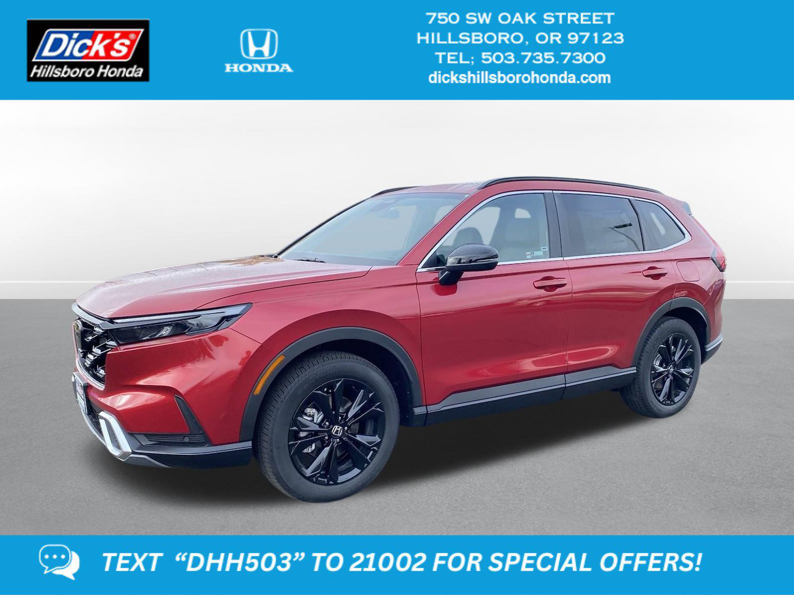 2025 Honda CR-V Hybrid Sport Touring Red AWD eCVT 2.0L I4 DOHC 16V2.0L I4 DOHC 16V, 12 Speakers, 4-Wheel Disc Brakes, ABS brakes, Adaptive Cruise Control: Adaptive Cruise Control (ACC) with Low-Speed Follow, Air Conditioning, Alloy wheels, AM/FM radio: SiriusXM, Auto High-beam Headlights, Auto-dimming Rear-View mirror, Automatic temperature control, Blind Spot Information (BSI) System warning, Brake assist, Bumpers: body-color, Compass, Delay-off headlights, Driver door bin, Driver vanity mirror, Dual front impact airbags, Dual front side impact airbags, Electronic Stability Control, Exterior Parking Camera Rear, Four wheel independent suspension, Front anti-roll bar, Front Bucket Seats, Front Center Armrest, Front dual zone A/C, Front reading lights, Fully automatic headlights, Heated door mirrors, Heated Front Bucket Seats, Heated front seats, Heated steering wheel, Illuminated entry, Knee airbag, Leather Seat Trim, Leather Shift Knob, Leather steering wheel, Low tire pressure warning, Memory seat, Navigation system: Honda Satellite-Linked Navigation System, Occupant sensing airbag, Outside temperature display, Overhead airbag, Overhead console, Panic alarm, Passenger door bin, Passenger vanity mirror, Power door mirrors, Power driver seat, Power Liftgate, Power moonroof, Power passenger seat, Power steering, Power windows, Radio data system, Radio: Bose Premium Sound System w/Navigation, Rain sensing wipers, Rear anti-roll bar, Rear reading lights, Rear seat center armrest, Rear side impact airbag, Rear window defroster, Rear window wiper, Remote keyless entry, Roof rack: rails only, Security system, Speed control, Speed-sensing steering, Speed-Sensitive Wipers, Split folding rear seat, Spoiler, Steering wheel mounted audio controls, Telescoping steering wheel, Tilt steering wheel, Traction control, Trip computer, Turn signal indicator mirrors, Variably intermittent wipers, Wheels: 19 Berlina Black Alloy, 2.0L I4 DOHC 16V.40/34 City/Highway MPG This 2025 Honda CR-V Sport Touring features a Red exterior with a Black interior. Factory equipped with an impressive 2.0 l, and an cvt w/od with awd.*DESIRABLE FEATURES:* Remote start, Navigation, Backup camera, Heated steering, Leather, Heated seating, Bluetooth, WiFi capability, Moonroof, Power liftgate, Premium audio, Multi-zone AC. Your 2025 Honda CR-V Sport Touring is one of 32 other SUVs like this in stock Beaverton drivers will find available to test drive at our new SUV showroom in Hillsboro, OR. This Honda CR-V is perfect for any ones SUV needs in our neighboring communities of Portland, Hillsboro & Beaverton, OR.*TECHNOLOGY FEATURES:* This Honda CR-V for sale near Portland includes WiFi Mobile Hotspot, Remote Engine Start, Navigation System, Premium Sound System, Keyless Start, Smart Device Integration, SiriusXM Satellite Radio, Bluetooth Connection, HD Radio, Keyless Entry.*Our Honda Dealership in Hillsboro:* Call Dicks Hillsboro Honda today at *(503) 616-4532 to schedule your test drive* of this 2025 Honda CR-V Sport Touring! Dicks Hillsboro Honda features a wide selection of new Honda SUVs for sale near Portland, Hillsboro & Beaverton Oregon. You can also visit us at, 750 SW Oak St. Hillsboro OR, 97123 to check it out in person!*MECHANICAL FEATURES:* Installed mechanical features include Heated Mirrors, All Wheel Drive, Push Button Start, Power One-touch Down windows, Power Mirrors, Traction Control, Power Locks, Power Passenger Seat, Cruise Control, Ventilated Disc Brakes, Intermittent Wipers, Variable Speed Intermittent Wipers, Tires - Front Performance, Power Steering, Trip Computer, Remote Trunk Release, Tires - Rear Performance*INTERIOR OPTIONS:* Heated Front Seats, Moon Roof, Automatic Climate Control, Heated Steering Wheel, Leather Seats, Dual Power Seats, Adjustable Lumbar Seats, Memory Seats, Power Drivers Seat, Leather Wrapped Steering Wheel, Driver Illuminated Vanity Mirror, Steering Wheel Audio Controls, Pass-Through Rear Seat, Air Conditioning, Bucket Front Seats, Auto Dimming R/V Mirror, Passenger Illuminated Visor Mirror, Multi-zone Climate Control, Bench Seats, AM/FM Stereo, Rear Window Defroster, Trip Odometer, Vanity Mirrors, Auxiliary Audio Input, Floor Mats, Tilt Steering Wheel. Beaverton new Honda SUV dealers simply cannot compete with Dicks Hillsboro Honda attention to stocking Honda SUVs with the most popular interior options.*EXTERIOR OPTIONS:* Aluminum Wheels, Power Hands-Free Liftgate, Privacy Glass, Auto Headlamp, Spoiler*SAFETY OPTIONS:* Back-Up Camera, Rain Sensing Wipers, Blind Spot Monitoring, Rear Parking Aid, Electronic Stability Control, Lane Departure Warning, Lane Keeping Assist System, LED Headlights, Security System, Brake Assist, Adaptive Cruise Control, Rear Collision Warning, Daytime Running Lights, Cruise Control Steering Assist, Front Collision Mitigation, Integrated Turn Signal Mirrors, Tire Pressure Monitoring System, Rear Air Bag, Knee AirBag, ABS Brakes, Drivers Air Bag, Driver Alert System, Front Head Air Bag, Driver Front Side Impact Air Bag, Passenger Air Bag Sensor, Child Proof LocksOREGON'S BEST HONDA FINANCIAL CREDIT FINANCE RATES: are right here at Dicks Hillsboro Honda Hillsboro Dealership where we offer the most competitive Honda Financial finance rates near Portland for new & Certified Honda Financial Financing. Our brand Finance experts have solutions for everyone including bad credit car loans or first time buyer financing programs.Dicks Hillsboro Honda New Honda SUV dealership in Northwest Oregon is an easy drive or fly in from anywhere in the United States. Our Honda dealership sits just west of Beaverton.When choosing Honda dealers Portland shoppers prefer the short drive to Hillsboro where Dick's Hillsboro Honda has a new Honda Superstore and has the best customer service. We're glad you found this new Honda CR-V for sale at our Honda dealership near you in Beaverton in Hillsboro, OR. Looking for Honda financing? Our Dicks Hillsboro Honda finance specialist will find t