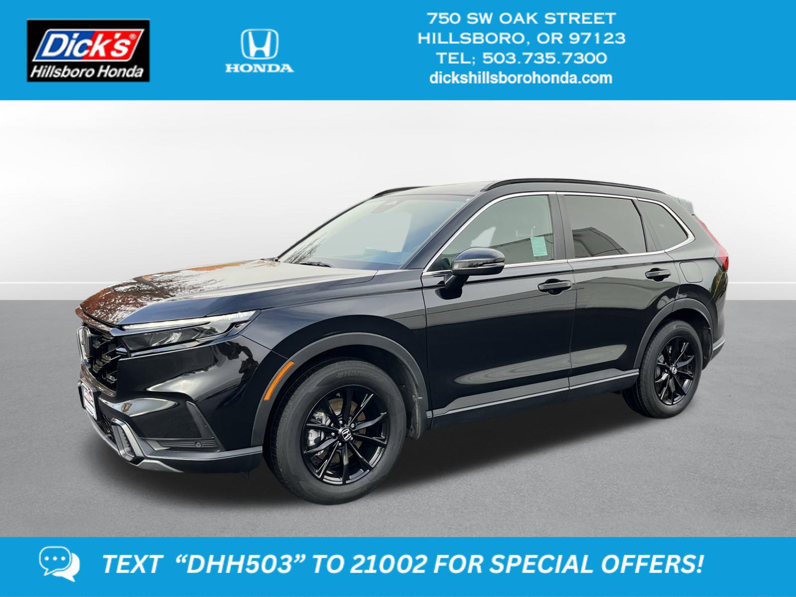 2025 Honda CR-V Hybrid Sport-L Crystal Black Pearl AWD eCVT 2.0L I4 DOHC 16V1-OWNER!, CLEAN CARFAX: NO ACCIDENTS, LEATHER INTERIOR, 2.0L I4 DOHC 16V, 4-Wheel Disc Brakes, 8 Speakers, ABS brakes, Adaptive Cruise Control: Adaptive Cruise Control (ACC) with Low-Speed Follow, Air Conditioning, Alloy wheels, AM/FM radio: SiriusXM, Auto High-beam Headlights, Auto-dimming Rear-View mirror, Automatic temperature control, Blind Spot Information (BSI) System warning, Brake assist, Bumpers: body-color, Compass, Delay-off headlights, Driver door bin, Driver vanity mirror, Dual front impact airbags, Dual front side impact airbags, Electronic Stability Control, Exterior Parking Camera Rear, Four wheel independent suspension, Front anti-roll bar, Front Bucket Seats, Front Center Armrest, Front dual zone A/C, Front reading lights, Fully automatic headlights, Heated door mirrors, Heated Front Bucket Seats, Heated front seats, Illuminated entry, Knee airbag, Leather Seat Trim, Leather Shift Knob, Leather steering wheel, Low tire pressure warning, Memory seat, Occupant sensing airbag, Outside temperature display, Overhead airbag, Overhead console, Panic alarm, Passenger door bin, Passenger vanity mirror, Power door mirrors, Power driver seat, Power Liftgate, Power moonroof, Power passenger seat, Power steering, Power windows, Radio data system, Radio: 320-Watt AM/FM/HD/SiriusXM Audio System, Rear anti-roll bar, Rear reading lights, Rear seat center armrest, Rear side impact airbag, Rear window defroster, Rear window wiper, Remote keyless entry, Security system, Speed control, Speed-sensing steering, Speed-Sensitive Wipers, Split folding rear seat, Spoiler, Steering wheel mounted audio controls, Telescoping steering wheel, Tilt steering wheel, Traction control, Trip computer, Turn signal indicator mirrors, Variably intermittent wipers, Wheels: 18 Berlina Black Alloy, **APPLE CARPLAY/ ANDROID**, **AUTOMATIC HEADLIGHTS**, **BACKUP CAMERA**, **BLINDSPOT MONITOR**, **BLUETOOTH**, **COLLISION AVOIDANCE **, **LANE KEEPING ASSIST**, **NAVIGATION**, **TOUCHSCREEN CONTROLS**, 2.0L I4 DOHC 16V.40/34 City/Highway MPGCome to www.dickshillsborohonda.com To See Our Specials!! Call us at (503) 735-7310 For help with any of our departments!! We gave it a full lube-oil-filter service, pressure tested the coolant/antifreeze system for leaks & protection, checked the brakes & tires, checked all parts/systems for excessive wear & tear, topped off needed fluids, detailed the vehicle and gave it a thorough diagnostic/frame/safey inspection!