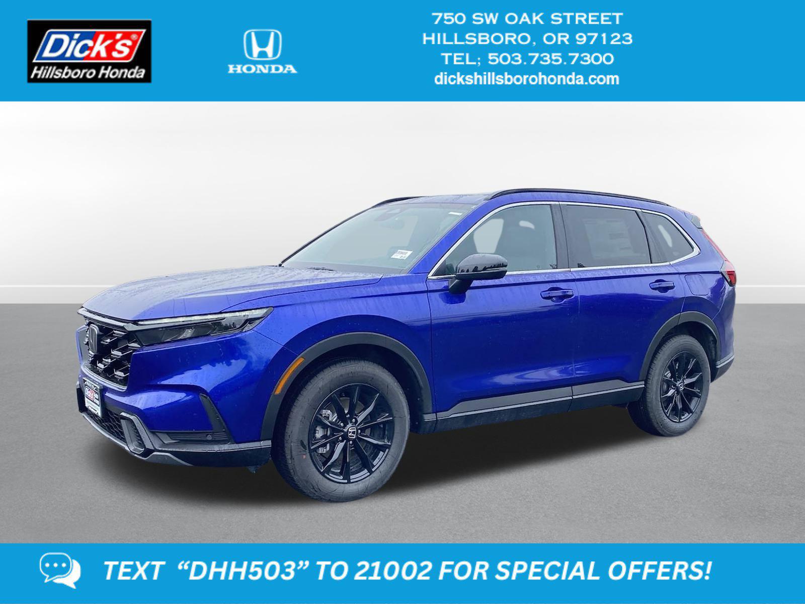 2025 Honda CR-V Hybrid Sport-L Still Night Pearl AWD eCVT 2.0L I4 DOHC 16V2.0L I4 DOHC 16V, 4-Wheel Disc Brakes, 8 Speakers, ABS brakes, Adaptive Cruise Control: Adaptive Cruise Control (ACC) with Low-Speed Follow, Air Conditioning, Alloy wheels, AM/FM radio: SiriusXM, Auto High-beam Headlights, Auto-dimming Rear-View mirror, Automatic temperature control, Blind Spot Information (BSI) System warning, Brake assist, Bumpers: body-color, Compass, Delay-off headlights, Driver door bin, Driver vanity mirror, Dual front impact airbags, Dual front side impact airbags, Electronic Stability Control, Exterior Parking Camera Rear, Four wheel independent suspension, Front anti-roll bar, Front Bucket Seats, Front Center Armrest, Front dual zone A/C, Front reading lights, Fully automatic headlights, Heated door mirrors, Heated Front Bucket Seats, Heated front seats, Illuminated entry, Knee airbag, Leather Seat Trim, Leather Shift Knob, Leather steering wheel, Low tire pressure warning, Memory seat, Occupant sensing airbag, Outside temperature display, Overhead airbag, Overhead console, Panic alarm, Passenger door bin, Passenger vanity mirror, Power door mirrors, Power driver seat, Power Liftgate, Power moonroof, Power passenger seat, Power steering, Power windows, Radio data system, Radio: 320-Watt AM/FM/HD/SiriusXM Audio System, Rear anti-roll bar, Rear reading lights, Rear seat center armrest, Rear side impact airbag, Rear window defroster, Rear window wiper, Remote keyless entry, Roof rack: rails only, Security system, Speed control, Speed-sensing steering, Speed-Sensitive Wipers, Split folding rear seat, Spoiler, Steering wheel mounted audio controls, Telescoping steering wheel, Tilt steering wheel, Traction control, Trip computer, Turn signal indicator mirrors, Variably intermittent wipers, Wheels: 18 Berlina Black Alloy, 2.0L I4 DOHC 16V.Recent Arrival! 40/34 City/Highway MPG This 2025 Honda CR-V Sport-L features a Still Night Pearl exterior with a Black interior. Factory equipped with an impressive 2.0 l, and an cvt w/od with awd.*DESIRABLE FEATURES:* Remote start, Backup camera, Leather, Moonroof, Bluetooth, Heated seating, Power liftgate, Multi-zone AC. Your 2025 Honda CR-V Sport-L is one of 37 other SUVs like this in stock Beaverton drivers will find available to test drive at our new SUV showroom in Hillsboro, OR. This Honda CR-V is perfect for any ones SUV needs in our neighboring communities of Portland, Hillsboro & Beaverton, OR.*TECHNOLOGY FEATURES:* This Honda CR-V for sale near Portland includes Remote Engine Start, Keyless Start, Bluetooth Connection, SiriusXM Satellite Radio, Smart Device Integration, HD Radio, Keyless Entry.*Our Honda Dealership:* Call Dicks Hillsboro Honda today at *(503) 616-4532 to schedule your test drive* of this 2025 Honda CR-V Sport-L! Dicks Hillsboro Honda features a wide selection of new Honda SUVs for sale near Portland, Hillsboro & Beaverton Oregon. You can also visit us at, 750 SW Oak St. Hillsboro OR, 97123 to check it out in person!*MECHANICAL FEATURES:* Installed mechanical features include Power One-touch Down windows, Push Button Start, All Wheel Drive, Heated Mirrors, Power Mirrors, Power Locks, Traction Control, Power Passenger Seat, Cruise Control, Ventilated Disc Brakes, Intermittent Wipers, Power Steering, Tires - Front All-Season, Tires - Rear All-Season, Remote Trunk Release, Variable Speed Intermittent Wipers, Trip Computer*INTERIOR OPTIONS:* Heated Front Seats, Leather Seats, Dual Power Seats, Moon Roof, Automatic Climate Control, Memory Seats, Leather Wrapped Steering Wheel, Power Drivers Seat, Adjustable Lumbar Seats, Air Conditioning, Bucket Front Seats, Pass-Through Rear Seat, Driver Illuminated Vanity Mirror, Steering Wheel Audio Controls, Passenger Illuminated Visor Mirror, Auto Dimming R/V Mirror, Multi-zone Climate Control, Rear Window Defroster, Trip Odometer, AM/FM Stereo, Tilt Steering Wheel, Auxiliary Audio Input, Floor Mats, Vanity Mirrors, Bench Seats. Beaverton new Honda SUV dealers simply cannot compete with Dicks Hillsboro Honda attention to stocking Honda SUVs with the most popular interior options.*EXTERIOR OPTIONS:* Aluminum Wheels, Power Hands-Free Liftgate, Privacy Glass, Auto Headlamp, Spoiler*SAFETY OPTIONS:* Lane Departure Warning, Blind Spot Monitoring, Electronic Stability Control, Lane Keeping Assist System, Back-Up Camera, Brake Assist, Rear Collision Warning, Front Collision Mitigation, Cruise Control Steering Assist, Daytime Running Lights, LED Headlights, Adaptive Cruise Control, Integrated Turn Signal Mirrors, Security System, Knee AirBag, Tire Pressure Monitoring System, ABS Brakes, Rear Air Bag, Driver Alert System, Drivers Air Bag, Child Proof Locks, Front Head Air Bag, Passenger Air Bag Sensor, Driver Front Side Impact Air BagOREGON'S BEST HONDA FINANCIAL CREDIT FINANCE RATES: are right here at Dicks Hillsboro Honda Hillsboro Dealership where we offer the most competitive Honda Financial finance rates near Portland for new & Certified Honda Financial Financing. Our brand Finance experts have solutions for everyone including bad credit car loans or first time buyer financing programs.Dicks Hillsboro Honda New Honda SUV dealership in Northwest Oregon is an easy drive or fly in from anywhere in the United States. Our Honda dealership sits just west of Beaverton.When choosing Honda dealers Portland shoppers prefer the short drive to Hillsboro where Dick's Hillsboro Honda has a new Honda Superstore and has the best customer service. We're glad you found this new Honda CR-V for sale at our Honda dealership near you in Beaverton in Hillsboro, OR. Looking for Honda financing? Our Dicks Hillsboro Honda finance specialist will find the best rates available for this new Honda CR-V for sale. Dicks Hillsboro Honda has new cars for sale and used cars for sale in Hillsboro just west of Portland.Dicks Hillsboro Honda New Honda SUV Super center sits just west of Beaverton. We stock and special order the new Honda SUV mo