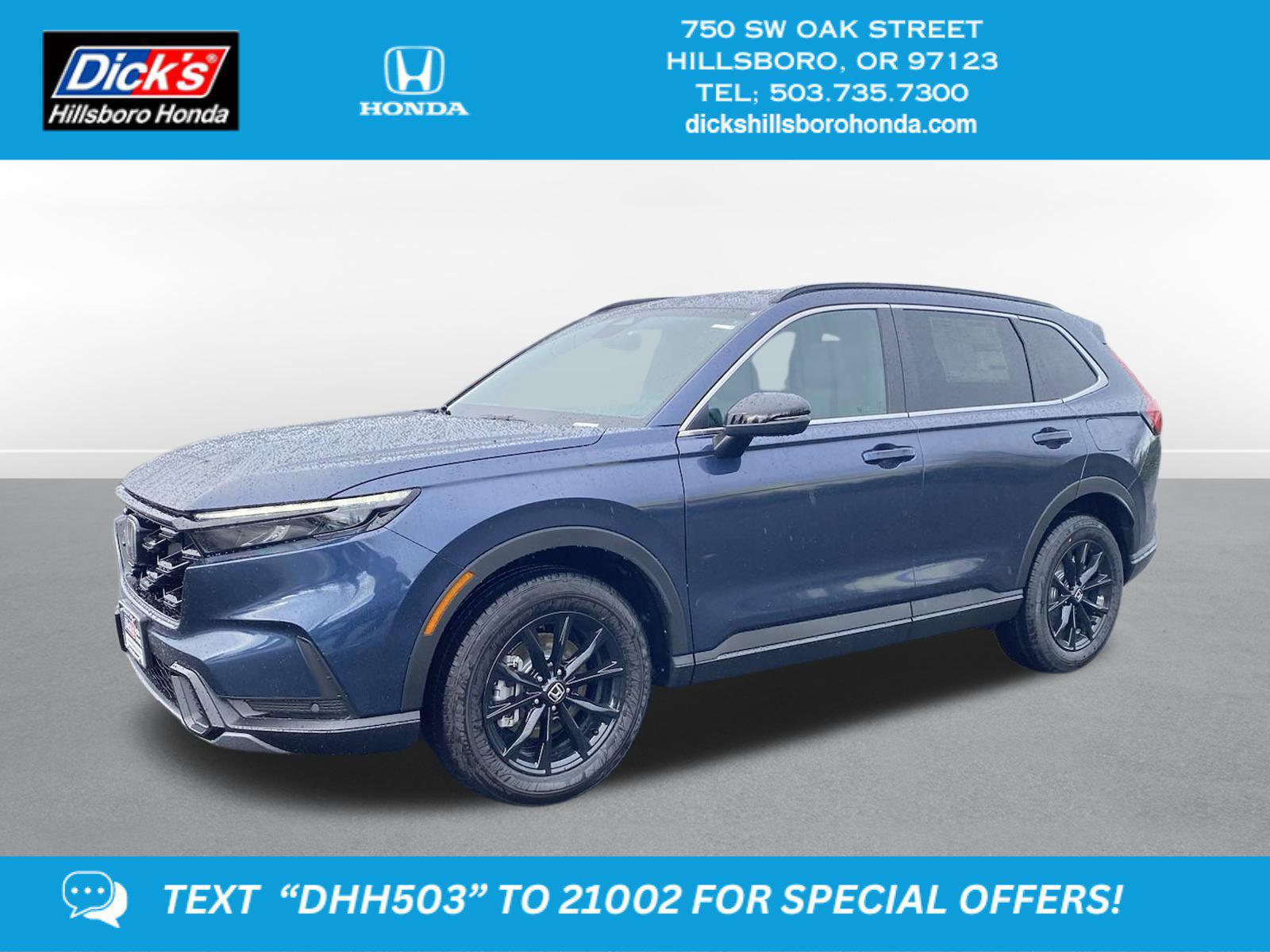 2025 Honda CR-V Hybrid Sport-L Canyon River Blue Metallic AWD eCVT 2.0L I4 DOHC 16V2.0L I4 DOHC 16V, 4-Wheel Disc Brakes, 8 Speakers, ABS brakes, Adaptive Cruise Control: Adaptive Cruise Control (ACC) with Low-Speed Follow, Air Conditioning, Alloy wheels, AM/FM radio: SiriusXM, Auto High-beam Headlights, Auto-dimming Rear-View mirror, Automatic temperature control, Blind Spot Information (BSI) System warning, Brake assist, Bumpers: body-color, Compass, Delay-off headlights, Driver door bin, Driver vanity mirror, Dual front impact airbags, Dual front side impact airbags, Electronic Stability Control, Exterior Parking Camera Rear, Four wheel independent suspension, Front anti-roll bar, Front Bucket Seats, Front Center Armrest, Front dual zone A/C, Front reading lights, Fully automatic headlights, Heated door mirrors, Heated Front Bucket Seats, Heated front seats, Illuminated entry, Knee airbag, Leather Seat Trim, Leather Shift Knob, Leather steering wheel, Low tire pressure warning, Memory seat, Occupant sensing airbag, Outside temperature display, Overhead airbag, Overhead console, Panic alarm, Passenger door bin, Passenger vanity mirror, Power door mirrors, Power driver seat, Power Liftgate, Power moonroof, Power passenger seat, Power steering, Power windows, Radio data system, Radio: 320-Watt AM/FM/HD/SiriusXM Audio System, Rear anti-roll bar, Rear reading lights, Rear seat center armrest, Rear side impact airbag, Rear window defroster, Rear window wiper, Remote keyless entry, Roof rack: rails only, Security system, Speed control, Speed-sensing steering, Speed-Sensitive Wipers, Split folding rear seat, Spoiler, Steering wheel mounted audio controls, Telescoping steering wheel, Tilt steering wheel, Traction control, Trip computer, Turn signal indicator mirrors, Variably intermittent wipers, Wheels: 18 Berlina Black Alloy, 2.0L I4 DOHC 16V.Recent Arrival! 40/34 City/Highway MPG This 2025 Honda CR-V Sport-L features a Canyon River Blue Metallic exterior with a Black interior. Factory equipped with an impressive 2.0 l, and an cvt w/od with awd.*DESIRABLE FEATURES:* Remote start, Backup camera, Bluetooth, Leather, Heated seating, Moonroof, Power liftgate, Multi-zone AC. Your 2025 Honda CR-V Sport-L is one of 38 other SUVs like this in stock Beaverton drivers will find available to test drive at our new SUV showroom in Hillsboro, OR. This Honda CR-V is perfect for any ones SUV needs in our neighboring communities of Portland, Hillsboro & Beaverton, OR.*TECHNOLOGY FEATURES:* This Honda CR-V for sale near Portland includes Remote Engine Start, Keyless Start, Smart Device Integration, SiriusXM Satellite Radio, Bluetooth Connection, HD Radio, Keyless Entry.*Our Honda Dealership in Hillsboro:* Call Dicks Hillsboro Honda today at *(503) 616-4532 to schedule your test drive* of this 2025 Honda CR-V Sport-L! Dicks Hillsboro Honda features a wide selection of new Honda SUVs for sale near Portland, Hillsboro & Beaverton Oregon. You can also visit us at, 750 SW Oak St. Hillsboro OR, 97123 to check it out in person!*MECHANICAL FEATURES:* Installed mechanical features include Heated Mirrors, All Wheel Drive, Power One-touch Down windows, Push Button Start, Traction Control, Power Locks, Power Mirrors, Cruise Control, Ventilated Disc Brakes, Power Passenger Seat, Intermittent Wipers, Trip Computer, Tires - Rear All-Season, Variable Speed Intermittent Wipers, Tires - Front All-Season, Remote Trunk Release, Power Steering*INTERIOR OPTIONS:* Moon Roof, Leather Seats, Dual Power Seats, Automatic Climate Control, Heated Front Seats, Adjustable Lumbar Seats, Leather Wrapped Steering Wheel, Power Drivers Seat, Memory Seats, Steering Wheel Audio Controls, Driver Illuminated Vanity Mirror, Air Conditioning, Bucket Front Seats, Pass-Through Rear Seat, Multi-zone Climate Control, Auto Dimming R/V Mirror, Passenger Illuminated Visor Mirror, Floor Mats, AM/FM Stereo, Auxiliary Audio Input, Bench Seats, Tilt Steering Wheel, Vanity Mirrors, Trip Odometer, Rear Window Defroster. Beaverton new Honda SUV dealers simply cannot compete with Dicks Hillsboro Honda attention to stocking Honda SUVs with the most popular interior options.*EXTERIOR OPTIONS:* Aluminum Wheels, Power Hands-Free Liftgate, Privacy Glass, Auto Headlamp, Spoiler*SAFETY OPTIONS:* Electronic Stability Control, Lane Departure Warning, Lane Keeping Assist System, Back-Up Camera, Blind Spot Monitoring, Rear Collision Warning, LED Headlights, Integrated Turn Signal Mirrors, Security System, Brake Assist, Front Collision Mitigation, Cruise Control Steering Assist, Adaptive Cruise Control, Daytime Running Lights, Drivers Air Bag, Knee AirBag, Rear Air Bag, ABS Brakes, Driver Alert System, Tire Pressure Monitoring System, Passenger Air Bag Sensor, Front Head Air Bag, Child Proof Locks, Driver Front Side Impact Air BagOREGON'S BEST HONDA FINANCIAL CREDIT FINANCE RATES: are right here at Dicks Hillsboro Honda Hillsboro Dealership where we offer the most competitive Honda Financial finance rates near Portland for new & Certified Honda Financial Financing. Our brand Finance experts have solutions for everyone including bad credit car loans or first time buyer financing programs.Dicks Hillsboro Honda New Honda SUV dealership in Northwest Oregon is an easy drive or fly in from anywhere in the United States. Our Honda dealership sits just west of Beaverton.When choosing Honda dealers Portland shoppers prefer the short drive to Hillsboro where Dick's Hillsboro Honda has a new Honda Superstore and has the best customer service. We're glad you found this new Honda CR-V for sale at our Honda dealership near you in Beaverton in Hillsboro, OR. Looking for Honda financing? Our Dicks Hillsboro Honda finance specialist will find the best rates available for this new Honda CR-V for sale. Dicks Hillsboro Honda has new cars for sale and used cars for sale in Hillsboro just west of Portland.Dicks Hillsboro Honda New Honda SUV Super center sits just west of Beaverton. We stock and spe