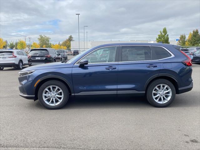 2025 Honda CR-V EX-L Blue AWD CVT 1.5L I4 DOHC 16VAWD, 4-Wheel Disc Brakes, 8 Speakers, ABS brakes, Adaptive Cruise Control: Adaptive Cruise Control (ACC) with Low-Speed Follow, Air Conditioning, Alloy wheels, AM/FM radio: SiriusXM, Auto High-beam Headlights, Auto-dimming Rear-View mirror, Automatic temperature control, Blind Spot Information (BSI) System warning, Brake assist, Bumpers: body-color, Compass, Delay-off headlights, Driver door bin, Driver vanity mirror, Dual front impact airbags, Dual front side impact airbags, Electronic Stability Control, Exterior Parking Camera Rear, Four wheel independent suspension, Front anti-roll bar, Front Bucket Seats, Front Center Armrest, Front dual zone A/C, Front reading lights, Fully automatic headlights, Heated door mirrors, Heated Front Bucket Seats, Heated front seats, Illuminated entry, Knee airbag, Leather Seat Trim, Leather Shift Knob, Leather steering wheel, Low tire pressure warning, Memory seat, Occupant sensing airbag, Outside temperature display, Overhead airbag, Overhead console, Panic alarm, Passenger door bin, Passenger vanity mirror, Power door mirrors, Power driver seat, Power Liftgate, Power moonroof, Power passenger seat, Power steering, Power windows, Radio data system, Radio: 320-Watt AM/FM/HD/SiriusXM Audio System, Rear anti-roll bar, Rear reading lights, Rear seat center armrest, Rear side impact airbag, Rear window defroster, Rear window wiper, Remote keyless entry, Security system, Speed control, Speed-sensing steering, Speed-Sensitive Wipers, Split folding rear seat, Spoiler, Steering wheel mounted audio controls, Tachometer, Telescoping steering wheel, Tilt steering wheel, Traction control, Trip computer, Turn signal indicator mirrors, Variably intermittent wipers, Wheels: 18 Sparkle Silver Metallic, AWD.26/31 City/Highway MPG This 2025 Honda CR-V EX-L features a Blue exterior with a Black interior. Factory equipped with an impressive 1.5 l, and an cvt w/od with awd.*DESIRABLE FEATURES:* Remote start, Turbocharged, Backup camera, Heated seating, Moonroof, Leather, Bluetooth, Power liftgate, Multi-zone AC. Your 2025 Honda CR-V EX-L is one of 25 other SUVs like this in stock Beaverton drivers will find available to test drive at our new SUV showroom in Hillsboro, OR. This Honda CR-V is perfect for any ones SUV needs in our neighboring communities of Portland, Hillsboro & Beaverton, OR.*TECHNOLOGY FEATURES:* This Honda CR-V for sale near Portland includes Remote Engine Start, Keyless Start, Bluetooth Connection, SiriusXM Satellite Radio, Smart Device Integration, HD Radio, Keyless Entry.*Our Honda Dealership:* Call Dicks Hillsboro Honda today at *(503) 616-4532 to schedule your test drive* of this 2025 Honda CR-V EX-L! Dicks Hillsboro Honda features a wide selection of new Honda SUVs for sale near Portland, Hillsboro & Beaverton Oregon. You can also visit us at, 750 SW Oak St. Hillsboro OR, 97123 to check it out in person!*MECHANICAL FEATURES:* Installed mechanical features include Power One-touch Down windows, Push Button Start, All Wheel Drive, Turbocharged Engine, Heated Mirrors, Power Locks, Traction Control, Power Mirrors, Ventilated Disc Brakes, Cruise Control, Power Passenger Seat, Intermittent Wipers, Trip Computer, Tires - Rear All-Season, Tires - Front All-Season, Power Steering, Remote Trunk Release, Variable Speed Intermittent Wipers*INTERIOR OPTIONS:* Heated Front Seats, Leather Seats, Dual Power Seats, Automatic Climate Control, Moon Roof, Power Drivers Seat, Memory Seats, Adjustable Lumbar Seats, Leather Wrapped Steering Wheel, Steering Wheel Audio Controls, Pass-Through Rear Seat, Air Conditioning, Driver Illuminated Vanity Mirror, Bucket Front Seats, Multi-zone Climate Control, Auto Dimming R/V Mirror, Passenger Illuminated Visor Mirror, Floor Mats, Rear Window Defroster, AM/FM Stereo, Auxiliary Audio Input, Bench Seats, Vanity Mirrors, Trip Odometer, Tilt Steering Wheel. Beaverton new Honda SUV dealers simply cannot compete with Dicks Hillsboro Honda attention to stocking Honda SUVs with the most popular interior options.*EXTERIOR OPTIONS:* Aluminum Wheels, Power Hands-Free Liftgate, Privacy Glass, Auto Headlamp, Spare Tire *Small Size*, Spoiler*SAFETY OPTIONS:* Rear Parking Aid, Back-Up Camera, Lane Departure Warning, Electronic Stability Control, Blind Spot Monitoring, Lane Keeping Assist System, Security System, Brake Assist, Adaptive Cruise Control, Daytime Running Lights, Cruise Control Steering Assist, Integrated Turn Signal Mirrors, Front Collision Mitigation, Rear Collision Warning, LED Headlights, Rear Air Bag, Tire Pressure Monitoring System, Knee AirBag, Driver Alert System, ABS Brakes, Drivers Air Bag, Front Head Air Bag, Child Proof Locks, Driver Front Side Impact Air Bag, Passenger Air Bag SensorOREGON'S BEST HONDA FINANCIAL CREDIT FINANCE RATES: are right here at Dicks Hillsboro Honda Hillsboro Dealership where we offer the most competitive Honda Financial finance rates near Portland for new & Certified Honda Financial Financing. Our brand Finance experts have solutions for everyone including bad credit car loans or first time buyer financing programs.Dicks Hillsboro Honda New Honda SUV dealership in Northwest Oregon is an easy drive or fly in from anywhere in the United States. Our Honda dealership sits just west of Beaverton.When choosing Honda dealers Portland shoppers prefer the short drive to Hillsboro where Dick's Hillsboro Honda has a new Honda Superstore and has the best customer service. We're glad you found this new Honda CR-V for sale at our Honda dealership near you in Beaverton in Hillsboro, OR. Looking for Honda financing? Our Dicks Hillsboro Honda finance specialist will find the best rates available for this new Honda CR-V for sale. Dicks Hillsboro Honda has new cars for sale and used cars for sale in Hillsboro just west of Portland.Dicks Hillsboro Honda New Honda SUV Super center sits just west of Beaverton. We stock and special order the new Honda SUV models Portland, Hi