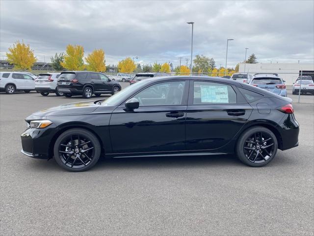 2025 Honda Civic Hybrid Crystal Black Pearl FWD eCVT 2.0L I4 DOHC 16VBlack Artificial Leather, 4-Wheel Disc Brakes, 8 Speakers, ABS brakes, Adaptive Cruise Control: Adaptive Cruise Control (ACC) with Low-Speed Follow, Air Conditioning, Alloy wheels, AM/FM radio, Apple CarPlay/Android Auto, Auto High-beam Headlights, Automatic temperature control, Blind Spot Information (BSI) System warning, Brake assist, Bumpers: body-color, Cloth/Leatherette Seat Trim, Delay-off headlights, Driver door bin, Driver vanity mirror, Dual front impact airbags, Dual front side impact airbags, Electronic Stability Control, Emergency communication system: HondaLink, Exterior Parking Camera Rear, Four wheel independent suspension, Front anti-roll bar, Front Bucket Seats, Front Center Armrest, Front dual zone A/C, Front reading lights, Fully automatic headlights, Heated door mirrors, Heated Front Bucket Seats, Heated front seats, Illuminated entry, Knee airbag, Lane departure: Lane Keeping Assist System (LKAS) active, Leather Shift Knob, Low tire pressure warning, Occupant sensing airbag, Outside temperature display, Overhead airbag, Panic alarm, Passenger door bin, Passenger vanity mirror, Power door mirrors, Power moonroof, Power steering, Power windows, Radio data system, Radio: 180-Watt Audio System, Rear anti-roll bar, Rear seat center armrest, Rear side impact airbag, Rear window defroster, Rear window wiper, Remote keyless entry, Security system, Speed control, Speed-sensing steering, Split folding rear seat, Steering wheel mounted audio controls, Tachometer, Telescoping steering wheel, Tilt steering wheel, Traction control, Trip computer, Variably intermittent wipers, Wheels: 18 Gloss Black Alloy, Black Artificial Leather.50/45 City/Highway MPGThis 2025 Honda Civic Hatchback Hybrid Sport features a Crystal Black Pearl exterior with a Black interior. Factory equipped with an impressive 2.0 l, and a cvt w/od transmission with fwd.*DESIRABLE FEATURES:* Remote start, Backup camera, Heated seating, Bluetooth, Moonroof, Multi-zone AC. Your 2025 Honda Civic Hatchback Hybrid Sport is one of 2 other models like this in stock Beaverton drivers will find available to test drive at our new vehicle showroom in Hillsboro, OR. This Honda Civic Hatchback Hybrid is perfect for any ones car needs in our neighboring communities of Portland, Hillsboro & Beaverton, OR.*TECHNOLOGY FEATURES:* This Honda Civic Hatchback Hybrid for sale near Portland includes GPS System, Remote Engine Start, Keyless Start, Bluetooth Connection, Smart Device Integration, Keyless Entry.*Our Honda Dealership:* Call Dicks Hillsboro Honda today at *(503) 616-4532 to schedule your test drive* of this 2025 Honda Civic Hatchback Hybrid Sport! Dicks Hillsboro Honda features a wide selection of new Honda vehicles for sale near Portland, Hillsboro & Beaverton Oregon. You can also visit us at, 750 SW Oak St. Hillsboro OR, 97123 to check it out in person!*MECHANICAL FEATURES:* Installed mechanical features include Power One-touch Down windows, Heated Mirrors, Push Button Start, Power Locks, Traction Control, Front Wheel Drive, Power Mirrors, Ventilated Disc Brakes, Cruise Control, Intermittent Wipers, Trip Computer, Power Steering, Variable Speed Intermittent Wipers, Tires - Front Performance, Tires - Rear Performance*INTERIOR OPTIONS:* Heated Front Seats, Premium Synthetic Seats, Automatic Climate Control, Moon Roof, Cloth Seats, Bucket Front Seats, Pass-Through Rear Seat, Steering Wheel Audio Controls, Air Conditioning, Multi-zone Climate Control, Floor Mats, Vanity Mirrors, Bench Seats, Tilt Steering Wheel, AM/FM Stereo, Trip Odometer, Auxiliary Audio Input, Rear Window Defroster. Beaverton new Honda dealers simply cannot compete with Dicks Hillsboro Honda attention to stocking Honda cars, trucks & SUVs with the most popular interior options.*EXTERIOR OPTIONS:* Aluminum Wheels, Cargo Floor (Slide Out), Auto Headlamp*SAFETY OPTIONS:* Electronic Stability Control, Blind Spot Monitoring, Lane Departure Warning, Cross Traffic Alerts, Back-Up Camera, Lane Keeping Assist System, Security System, LED Headlights, Brake Assist, Front Collision Mitigation, Cruise Control Steering Assist, Daytime Running Lights, Adaptive Cruise Control, Knee AirBag, Driver Alert System, ABS Brakes, Rear Air Bag, Tire Pressure Monitoring System, Drivers Air Bag, Driver Front Side Impact Air Bag, Passenger Air Bag Sensor, Front Head Air Bag, Child Proof LocksOREGON'S BEST HONDA FINANCIAL CREDIT FINANCE RATES: are right here at Dicks Hillsboro Honda Hillsboro Dealership where we offer the most competitive Honda Financial finance rates near Portland for new & Certified Honda Financial Financing. Our brand Finance experts have solutions for everyone including bad credit car loans or first time buyer financing programs.Dicks Hillsboro Honda New Honda dealership in Northwest Oregon is an easy drive or fly in from anywhere in the United States. Our Honda dealership sits just west of Beaverton.When choosing Honda dealers Portland shoppers prefer the short drive to Hillsboro where Dick's Hillsboro Honda has a new Honda Superstore and has the best customer service. We're glad you found this new Honda Civic Hatchback Hybrid for sale at our Honda dealership near you in Beaverton in Hillsboro, OR. Looking for Honda financing? Our Dicks Hillsboro Honda finance specialist will find the best rates available for this new Honda Civic Hatchback Hybrid for sale. Dicks Hillsboro Honda has new cars for sale and used cars for sale in Hillsboro just west of Portland.