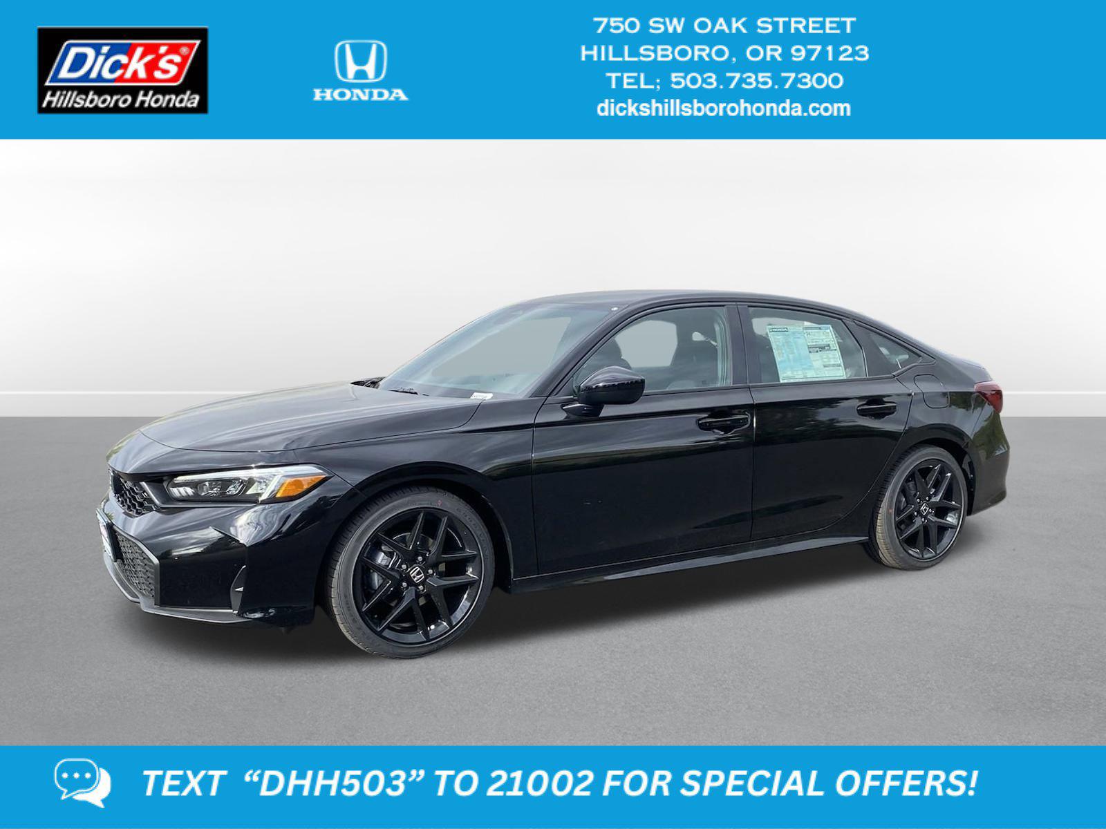 2025 Honda Civic Sport Crystal Black Pearl FWD CVT 2.0L I4 DOHC 16VBlack Artificial Leather, 4-Wheel Disc Brakes, 8 Speakers, ABS brakes, Adaptive Cruise Control: Adaptive Cruise Control (ACC) with Low-Speed Follow, Air Conditioning, Alloy wheels, AM/FM radio, Apple CarPlay/Android Auto, Auto High-beam Headlights, Automatic temperature control, Blind Spot Information (BSI) System warning, Brake assist, Bumpers: body-color, Cloth/Leatherette Seating Surfaces, Delay-off headlights, Driver door bin, Driver vanity mirror, Dual front impact airbags, Dual front side impact airbags, Electronic Stability Control, Emergency communication system: HondaLink, Exterior Parking Camera Rear, Four wheel independent suspension, Front anti-roll bar, Front Bucket Seats, Front Center Armrest, Front reading lights, Fully automatic headlights, Heated door mirrors, Illuminated entry, Knee airbag, Leather Shift Knob, Leather steering wheel, Low tire pressure warning, Occupant sensing airbag, Outside temperature display, Overhead airbag, Panic alarm, Passenger door bin, Passenger vanity mirror, Power door mirrors, Power steering, Power windows, Radio data system, Radio: 180-Watt Audio System, Rear anti-roll bar, Rear seat center armrest, Rear side impact airbag, Rear window defroster, Remote keyless entry, Security system, Speed control, Speed-sensing steering, Split folding rear seat, Steering wheel mounted audio controls, Tachometer, Telescoping steering wheel, Tilt steering wheel, Traction control, Trip computer, Wheels: 18 Gloss Black Alloy, Black Artificial Leather.31/39 City/Highway MPGThis 2025 Honda Civic Sedan Sport features a Crystal Black Pearl exterior with a Black interior. Factory equipped with an impressive 2.0 l, and a cvt w/od transmission with fwd.*DESIRABLE FEATURES:* Remote start, Backup camera, Bluetooth. Your 2025 Honda Civic Sedan Sport is one of 3 other models like this in stock Beaverton drivers will find available to test drive at our new vehicle showroom in Hillsboro, OR. This Honda Civic Sedan is perfect for any ones car needs in our neighboring communities of Portland, Hillsboro & Beaverton, OR.*TECHNOLOGY FEATURES:* This Honda Civic Sedan for sale near Portland includes Remote Engine Start, GPS System, Keyless Start, Bluetooth Connection, Smart Device Integration, Keyless Entry.*Our Honda Dealership:* Call Dicks Hillsboro Honda today at *(503) 616-4532 to schedule your test drive* of this 2025 Honda Civic Sedan Sport! Dicks Hillsboro Honda features a wide selection of new Honda vehicles for sale near Portland, Hillsboro & Beaverton Oregon. You can also visit us at, 750 SW Oak St. Hillsboro OR, 97123 to check it out in person!*MECHANICAL FEATURES:* Installed mechanical features include Power One-touch Down windows, Push Button Start, Heated Mirrors, Traction Control, Power Mirrors, Power Locks, Front Wheel Drive, Cruise Control, Ventilated Disc Brakes, Intermittent Wipers, Trip Computer, Power Steering, Tires - Rear Performance, Tires - Front Performance, Variable Speed Intermittent Wipers*INTERIOR OPTIONS:* Automatic Climate Control, Premium Synthetic Seats, Leather Wrapped Steering Wheel, Cloth Seats, Air Conditioning, Steering Wheel Audio Controls, Bucket Front Seats, Pass-Through Rear Seat, Auxiliary Audio Input, Bench Seats, Floor Mats, AM/FM Stereo, Vanity Mirrors, Rear Window Defroster, Tilt Steering Wheel, Trip Odometer. Beaverton new Honda dealers simply cannot compete with Dicks Hillsboro Honda attention to stocking Honda cars, trucks & SUVs with the most popular interior options.*EXTERIOR OPTIONS:* Aluminum Wheels, Auto Headlamp, Spare Tire *Small Size**SAFETY OPTIONS:* Cross Traffic Alerts, Lane Departure Warning, Blind Spot Monitoring, Back-Up Camera, Electronic Stability Control, Lane Keeping Assist System, Adaptive Cruise Control, LED Headlights, Security System, Front Collision Mitigation, Daytime Running Lights, Cruise Control Steering Assist, Brake Assist, Knee AirBag, Rear Air Bag, Drivers Air Bag, Tire Pressure Monitoring System, ABS Brakes, Driver Alert System, Driver Front Side Impact Air Bag, Front Head Air Bag, Passenger Air Bag Sensor, Child Proof LocksOREGON'S BEST HONDA FINANCIAL CREDIT FINANCE RATES: are right here at Dicks Hillsboro Honda Hillsboro Dealership where we offer the most competitive Honda Financial finance rates near Portland for new & Certified Honda Financial Financing. Our brand Finance experts have solutions for everyone including bad credit car loans or first time buyer financing programs.Dicks Hillsboro Honda New Honda dealership in Northwest Oregon is an easy drive or fly in from anywhere in the United States. Our Honda dealership sits just west of Beaverton.When choosing Honda dealers Portland shoppers prefer the short drive to Hillsboro where Dick's Hillsboro Honda has a new Honda Superstore and has the best customer service. We're glad you found this new Honda Civic Sedan for sale at our Honda dealership near you in Beaverton in Hillsboro, OR. Looking for Honda financing? Our Dicks Hillsboro Honda finance specialist will find the best rates available for this new Honda Civic Sedan for sale. Dicks Hillsboro Honda has new cars for sale and used cars for sale in Hillsboro just west of Portland.