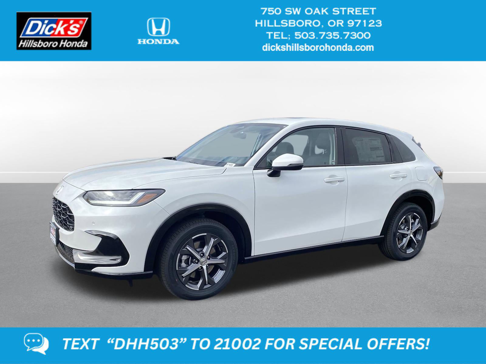2025 Honda HR-V EX-L White AWD CVT 2.0L I4 DOHC 16V i-VTEC17 Machine-Finished Alloy Wheels, 4-Wheel Disc Brakes, 5.436 Axle Ratio, 8 Speakers, ABS brakes, Adaptive Cruise Control: Adaptive Cruise Control (ACC) with Low-Speed Follow, Air Conditioning, Alloy wheels, AM/FM radio: SiriusXM, Apple CarPlay/Android Auto, Auto High-beam Headlights, Auto-dimming Rear-View mirror, Automatic temperature control, Blind Spot Information (BSI) System warning, Brake assist, Bumpers: body-color, Compass, Delay-off headlights, Driver door bin, Driver vanity mirror, Dual front impact airbags, Dual front side impact airbags, Electronic Stability Control, Emergency communication system: HondaLink, Exterior Parking Camera Rear, Four wheel independent suspension, Front anti-roll bar, Front Bucket Seats, Front Center Armrest, Front dual zone A/C, Front reading lights, Fully automatic headlights, Heated door mirrors, Heated Front Bucket Seats, Heated front seats, Illuminated entry, Knee airbag, Leather Shift Knob, Leather steering wheel, Leather-Trimmed Seats, Low tire pressure warning, Occupant sensing airbag, Outside temperature display, Overhead airbag, Panic alarm, Passenger door bin, Passenger vanity mirror, Power door mirrors, Power driver seat, Power moonroof, Power steering, Power windows, Radio data system, Radio: 180-Watt Audio System w/8 Speakers, Rear anti-roll bar, Rear reading lights, Rear side impact airbag, Rear window defroster, Rear window wiper, Remote keyless entry, Security system, SiriusXM, Speed control, Speed-sensing steering, Split folding rear seat, Spoiler, Steering wheel mounted audio controls, Tachometer, Telescoping steering wheel, Tilt steering wheel, Traction control, Trip computer, Turn signal indicator mirrors, Variably intermittent wipers.25/30 City/Highway MPG This 2025 Honda HR-V EX-L features a White exterior with a Black interior. Factory equipped with an impressive 2.0 l, and an cvt w/od with awd.*DESIRABLE FEATURES:* Remote start, Backup camera, Moonroof, Heated seating, Leather, Bluetooth, Multi-zone AC. Your 2025 Honda HR-V EX-L is one of 12 other SUVs like this in stock Beaverton drivers will find available to test drive at our new SUV showroom in Hillsboro, OR. This Honda HR-V is perfect for any ones SUV needs in our neighboring communities of Portland, Hillsboro & Beaverton, OR.*TECHNOLOGY FEATURES:* This Honda HR-V for sale near Portland includes GPS System, Remote Engine Start, Keyless Start, Bluetooth Connection, Smart Device Integration, SiriusXM Satellite Radio, HD Radio, Keyless Entry.*Our Honda Dealership:* Call Dicks Hillsboro Honda today at *(503) 616-4532 to schedule your test drive* of this 2025 Honda HR-V EX-L! Dicks Hillsboro Honda features a wide selection of new Honda SUVs for sale near Portland, Hillsboro & Beaverton Oregon. You can also visit us at, 750 SW Oak St. Hillsboro OR, 97123 to check it out in person!*MECHANICAL FEATURES:* Installed mechanical features include Push Button Start, Heated Mirrors, Power One-touch Down windows, All Wheel Drive, Power Mirrors, Traction Control, Power Locks, Cruise Control, Ventilated Disc Brakes, Intermittent Wipers, Tires - Rear All-Season, Power Steering, Variable Speed Intermittent Wipers, Tires - Front All-Season, Trip Computer*INTERIOR OPTIONS:* Heated Front Seats, Moon Roof, Automatic Climate Control, Leather Seats, Power Drivers Seat, Leather Wrapped Steering Wheel, Steering Wheel Audio Controls, Air Conditioning, Bucket Front Seats, Driver Illuminated Vanity Mirror, Pass-Through Rear Seat, Multi-zone Climate Control, Auto Dimming R/V Mirror, Passenger Illuminated Visor Mirror, Trip Odometer, Rear Window Defroster, AM/FM Stereo, Vanity Mirrors, Bench Seats, Tilt Steering Wheel, Floor Mats, Auxiliary Audio Input. Beaverton new Honda SUV dealers simply cannot compete with Dicks Hillsboro Honda attention to stocking Honda SUVs with the most popular interior options.*EXTERIOR OPTIONS:* Aluminum Wheels, Privacy Glass, Auto Headlamp, Spare Tire *Small Size*, Spoiler*SAFETY OPTIONS:* Lane Keeping Assist System, Electronic Stability Control, Blind Spot Monitoring, Back-Up Camera, Rear Parking Aid, Lane Departure Warning, Daytime Running Lights, Adaptive Cruise Control, Cruise Control Steering Assist, Front Collision Mitigation, LED Headlights, Integrated Turn Signal Mirrors, Security System, Rear Collision Warning, Brake Assist, Rear Air Bag, Drivers Air Bag, ABS Brakes, Tire Pressure Monitoring System, Knee AirBag, Driver Front Side Impact Air Bag, Front Head Air Bag, Passenger Air Bag Sensor, Child Proof LocksOREGON'S BEST HONDA FINANCIAL CREDIT FINANCE RATES: are right here at Dicks Hillsboro Honda Hillsboro Dealership where we offer the most competitive Honda Financial finance rates near Portland for new & Certified Honda Financial Financing. Our brand Finance experts have solutions for everyone including bad credit car loans or first time buyer financing programs.Dicks Hillsboro Honda New Honda SUV dealership in Northwest Oregon is an easy drive or fly in from anywhere in the United States. Our Honda dealership sits just west of Beaverton.When choosing Honda dealers Portland shoppers prefer the short drive to Hillsboro where Dick's Hillsboro Honda has a new Honda Superstore and has the best customer service. We're glad you found this new Honda HR-V for sale at our Honda dealership near you in Beaverton in Hillsboro, OR. Looking for Honda financing? Our Dicks Hillsboro Honda finance specialist will find the best rates available for this new Honda HR-V for sale. Dicks Hillsboro Honda has new cars for sale and used cars for sale in Hillsboro just west of Portland.Dicks Hillsboro Honda New Honda SUV Super center sits just west of Beaverton. We stock and special order the new Honda SUV models Portland, Hillsboro & Beaverton OR SUV shoppers prefer, like this 2025 Honda HR-V EX-L Stock# SM716009.