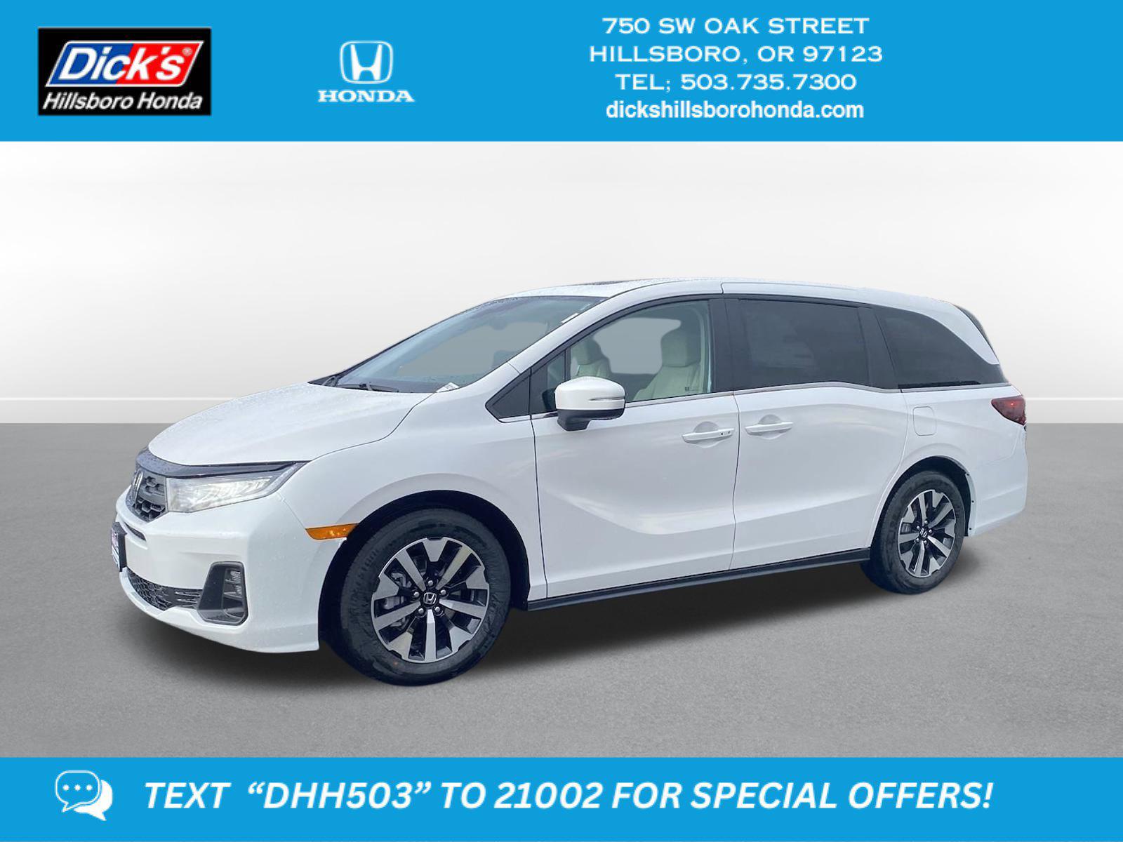 2025 Honda Odyssey EX-L Wy FWD 10-Speed Automatic 3.5L V6 SOHC i-VTEC 24V18 Machine-Finished Alloy Wheels, 3rd row seats: split-bench, 4-Wheel Disc Brakes, 7 Speakers, ABS brakes, Adaptive Cruise Control: Adaptive Cruise Control (ACC) with Low-Speed Follow, Air Conditioning, Alloy wheels, AM/FM radio: SiriusXM, Anti-whiplash front head restraints, Apple CarPlay/Android Auto, Auto High-beam Headlights, Auto-dimming Rear-View mirror, Automatic temperature control, Blind Spot Information (BSI) System warning, Brake assist, Bumpers: body-color, Delay-off headlights, Driver door bin, Driver vanity mirror, Driver's Seat Mounted Armrest, Dual front impact airbags, Dual front side impact airbags, Electronic Stability Control, Exterior Parking Camera Rear, Four wheel independent suspension, Front anti-roll bar, Front Bucket Seats, Front dual zone A/C, Front fog lights, Front reading lights, Fully automatic headlights, Garage door transmitter: HomeLink, Heated door mirrors, Heated Front Bucket Seats, Heated front seats, Illuminated entry, Knee airbag, Lane departure: Lane Keeping Assist System (LKAS) active, Leather steering wheel, Leather Trimmed Seats, Low tire pressure warning, Memory seat, Occupant sensing airbag, Outside temperature display, Overhead airbag, Overhead console, Panic alarm, Passenger door bin, Passenger seat mounted armrest, Passenger vanity mirror, Power door mirrors, Power driver seat, Power Liftgate, Power moonroof, Power passenger seat, Power steering, Power windows, Radio data system, Radio: 160-Watt AM/FM/HD/SiriusXM Audio System, Rear air conditioning, Rear anti-roll bar, Rear reading lights, Rear seat center armrest, Rear window defroster, Rear window wiper, Reclining 3rd row seat, Remote keyless entry, Security system, Speed control, Speed-sensing steering, Speed-Sensitive Wipers, Split folding rear seat, Spoiler, Steering wheel mounted audio controls, Tachometer, Telescoping steering wheel, Tilt steering wheel, Traction control, Trip computer, Turn signal indicator mirrors, Variably intermittent wipers.Recent Arrival! 19/28 City/Highway MPGThis 2025 Honda Odyssey EX-L features a Platinum White Pearl exterior with a Gray interior. Factory equipped with an impressive 3.5 l, and a 10-speed automatic w/od transmission with fwd.*DESIRABLE FEATURES:* Remote start, Backup camera, Leather, Moonroof, Heated seating, Bluetooth, Power liftgate, 3rd row seat, Power sliding doors, Multi-zone AC. Your 2025 Honda Odyssey EX-L is one of 5 other models like this in stock Beaverton drivers will find available to test drive at our new vehicle showroom in Hillsboro, OR. This Honda Odyssey is perfect for any ones car needs in our neighboring communities of Portland, Hillsboro & Beaverton, OR.*TECHNOLOGY FEATURES:* This Honda Odyssey for sale near Portland includes Remote Engine Start, Keyless Start, SiriusXM Satellite Radio, Bluetooth Connection, Digital Media Storage, Smart Device Integration, Garage Door Opener, HD Radio, Keyless Entry.*Our Honda Dealership:* Call Dicks Hillsboro Honda today at *(503) 616-4532 to schedule your test drive* of this 2025 Honda Odyssey EX-L! Dicks Hillsboro Honda features a wide selection of new Honda vehicles for sale near Portland, Hillsboro & Beaverton Oregon. You can also visit us at, 750 SW Oak St. Hillsboro OR, 97123 to check it out in person!*MECHANICAL FEATURES:* Installed mechanical features include Heated Mirrors, Power One-touch Down windows, Push Button Start, Power Mirrors, Power Locks, Traction Control, Front Wheel Drive, Ventilated Disc Brakes, Cruise Control, Sliding Rear Drivers Door, Sliding Rear Passenger Door, Power Sliding Rear Passenger Door, Power Passenger Seat, Locking Rear Differential, Power Sliding Rear Drivers Door, Intermittent Wipers, Remote Trunk Release, Power Steering, Tires - Rear All-Season, Trip Computer, Tires - Front All-Season, Variable Speed Intermittent Wipers*INTERIOR OPTIONS:* Automatic Climate Control, Moon Roof, Third Row Seats, Dual Power Seats, Leather Seats, Heated Front Seats, Power Drivers Seat, Memory Seats, Leather Wrapped Steering Wheel, Adjustable Lumbar Seats, Memory Mirrors, Steering Wheel Audio Controls, Bucket Front Seats, Pass-Through Rear Seat, Driver Illuminated Vanity Mirror, Air Conditioning, Multi-zone Climate Control, Auto Dimming R/V Mirror, Passenger Illuminated Visor Mirror, Trip Odometer, Tilt Steering Wheel, Bench Seats, Auxiliary Audio Input, Floor Mats, Vanity Mirrors, Rear Window Defroster, AM/FM Stereo. Beaverton new Honda dealers simply cannot compete with Dicks Hillsboro Honda attention to stocking Honda cars, trucks & SUVs with the most popular interior options.*EXTERIOR OPTIONS:* Fog Lights, Aluminum Wheels, Power Hands-Free Liftgate, Privacy Glass, Auto Headlamp, Spoiler, Spare Tire *Small Size**SAFETY OPTIONS:* Blind Spot Monitoring, Lane Departure Warning, Lane Keeping Assist System, Cross Traffic Alerts, Back-Up Camera, Electronic Stability Control, Security System, Brake Assist, Adaptive Cruise Control, Integrated Turn Signal Mirrors, Front Collision Mitigation, Daytime Running Lights, LED Headlights, ABS Brakes, Rear Air Bag, Knee AirBag, Drivers Air Bag, Tire Pressure Monitoring System, Front Head Air Bag, Driver Front Side Impact Air Bag, Child Proof Locks, Passenger Air Bag SensorOREGON'S BEST HONDA FINANCIAL CREDIT FINANCE RATES: are right here at Dicks Hillsboro Honda Hillsboro Dealership where we offer the most competitive Honda Financial finance rates near Portland for new & Certified Honda Financial Financing. Our brand Finance experts have solutions for everyone including bad credit car loans or first time buyer financing programs.Dicks Hillsboro Honda New Honda dealership in Northwest Oregon is an easy drive or fly in from anywhere in the United States. Our Honda dealership sits just west of Beaverton.When choosing Honda dealers Portland shoppers prefer the short drive to Hillsboro where Dick's Hillsboro Honda has a new Honda Superstore and has the best customer s