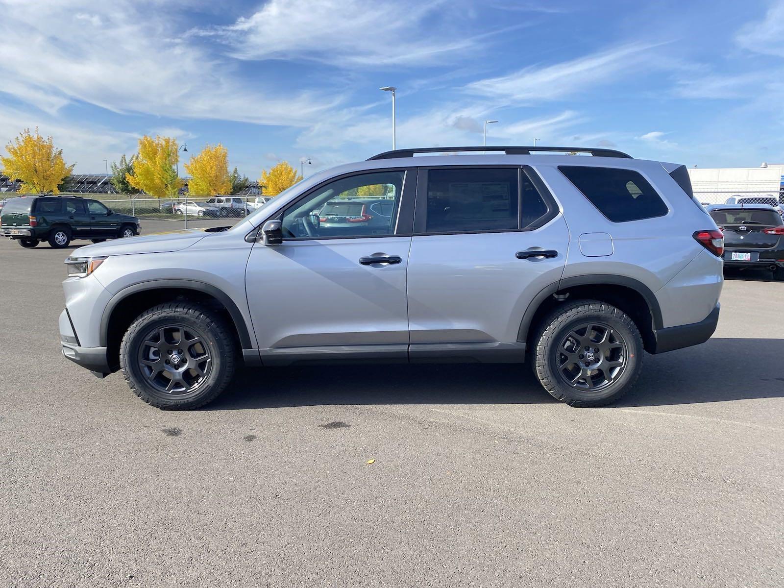 2025 Honda Pilot TrailSport Lunar Silver Metallic AWD 10-Speed Automatic 3.5L V6 DOHC 24VAWD, 3rd row seats: split-bench, 4-Wheel Disc Brakes, 4.167 Axle Ratio, 9 Speakers, ABS brakes, Adaptive Cruise Control: Adaptive Cruise Control (ACC) with Low-Speed Follow, Air Conditioning, Alloy wheels, AM/FM radio: SiriusXM, Apple CarPlay/Android Auto, Auto High-beam Headlights, Auto-dimming Rear-View mirror, Automatic temperature control, Blind Spot Information (BSI) System warning, Brake assist, Bumpers: body-color, Delay-off headlights, Driver door bin, Driver vanity mirror, Dual front impact airbags, Dual front side impact airbags, Durable Synthetic Leather Seat Trim, Electronic Stability Control, Emergency communication system: HondaLink Assist, Exterior Parking Camera Rear, Four wheel independent suspension, Front anti-roll bar, Front Bucket Seats, Front Center Armrest, Front dual zone A/C, Front fog lights, Front reading lights, Fully automatic headlights, Garage door transmitter: HomeLink, Heated door mirrors, Heated Front Bucket Seats, Heated front seats, Illuminated entry, Knee airbag, Lane departure: Lane Keeping Assist System (LKAS) active, Low tire pressure warning, Memory seat, Occupant sensing airbag, Outside temperature display, Overhead airbag, Overhead console, Panic alarm, Passenger door bin, Passenger vanity mirror, Power door mirrors, Power driver seat, Power Liftgate, Power moonroof, Power passenger seat, Power steering, Power windows, Radio data system, Radio: 245-Watt Audio System, Rear air conditioning, Rear anti-roll bar, Rear reading lights, Rear window defroster, Rear window wiper, Reclining 3rd row seat, Remote keyless entry, Roof rack: rails only, Security system, SiriusXM, Speed control, Speed-sensing steering, Speed-Sensitive Wipers, Split folding rear seat, Spoiler, Steering wheel mounted audio controls, Tachometer, Telescoping steering wheel, Tilt steering wheel, Traction control, Trip computer, Turn signal indicator mirrors, Variably intermittent wipers, Wheels: 18 Fully Painted Shark Gray w/Blk Lug Nuts, AWD. This 2025 Honda Pilot TrailSport features a Lunar Silver Metallic exterior with a Black interior. Factory equipped with an impressive 3.5 l, and an 10-speed automatic w/od with awd.*DESIRABLE FEATURES:* Remote start, Backup camera, Bluetooth, Moonroof, Heated seating, Power liftgate, Multi-zone AC, 3rd row seat. Your 2025 Honda Pilot TrailSport is one of 20 other SUVs like this in stock Beaverton drivers will find available to test drive at our new SUV showroom in Hillsboro, OR. This Honda Pilot is perfect for any ones SUV needs in our neighboring communities of Portland, Hillsboro & Beaverton, OR.*TECHNOLOGY FEATURES:* This Honda Pilot for sale near Portland includes Remote Engine Start, GPS System, Keyless Start, Bluetooth Connection, Garage Door Opener, SiriusXM Satellite Radio, Smart Device Integration, HD Radio, Keyless Entry.*Our Honda Dealership:* Call Dicks Hillsboro Honda today at *(503) 616-4532 to schedule your test drive* of this 2025 Honda Pilot TrailSport! Dicks Hillsboro Honda features a wide selection of new Honda SUVs for sale near Portland, Hillsboro & Beaverton Oregon. You can also visit us at, 750 SW Oak St. Hillsboro OR, 97123 to check it out in person!*MECHANICAL FEATURES:* Installed mechanical features include Heated Mirrors, Push Button Start, All Wheel Drive, Power One-touch Down windows, Traction Control, Power Mirrors, Power Locks, Locking Rear Differential, Power Passenger Seat, Cruise Control, Ventilated Disc Brakes, Intermittent Wipers, Remote Trunk Release, Variable Speed Intermittent Wipers, Tires- All-Terrain, Trip Computer, Power Steering*INTERIOR OPTIONS:* Premium Synthetic Seats, Third Row Seats, Heated Front Seats, Automatic Climate Control, Panoramic Roof, Dual Power Seats, Moon Roof, Power Drivers Seat, Leather Wrapped Steering Wheel, Memory Seats, Adjustable Lumbar Seats, Steering Wheel Audio Controls, Air Conditioning, Bucket Front Seats, Memory Mirrors, Driver Illuminated Vanity Mirror, Passenger Illuminated Visor Mirror, Multi-zone Climate Control, Auto Dimming R/V Mirror, AM/FM Stereo, Trip Odometer, Tilt Steering Wheel, Rear Window Defroster, Vanity Mirrors, Floor Mats, Auxiliary Audio Input. Beaverton new Honda SUV dealers simply cannot compete with Dicks Hillsboro Honda attention to stocking Honda SUVs with the most popular interior options.*EXTERIOR OPTIONS:* Aluminum Wheels, Fog Lights, Power Folding Mirrors, Spare Tire *Full Size*, Power Hands-Free Liftgate, Trailer Hitch Receiver, Privacy Glass, Front Tow Hooks, Auto Headlamp, Spoiler*SAFETY OPTIONS:* Lane Keeping Assist System, Cross Traffic Alerts, Lane Departure Warning, Blind Spot Monitoring, Back-Up Camera, Rear Parking Aid, Electronic Stability Control, Security System, Integrated Turn Signal Mirrors, LED Headlights, Front Collision Mitigation, Cruise Control Steering Assist, Adaptive Cruise Control, Daytime Running Lights, Brake Assist, 360 Camera, Knee AirBag, ABS Brakes, Rear Air Bag, Driver Alert System, Tire Pressure Monitoring System, Drivers Air Bag, Front Head Air Bag, Passenger Air Bag Sensor, Child Proof Locks, Driver Front Side Impact Air BagOREGON'S BEST HONDA FINANCIAL CREDIT FINANCE RATES: are right here at Dicks Hillsboro Honda Hillsboro Dealership where we offer the most competitive Honda Financial finance rates near Portland for new & Certified Honda Financial Financing. Our brand Finance experts have solutions for everyone including bad credit car loans or first time buyer financing programs.Dicks Hillsboro Honda New Honda SUV dealership in Northwest Oregon is an easy drive or fly in from anywhere in the United States. Our Honda dealership sits just west of Beaverton.When choosing Honda dealers Portland shoppers prefer the short drive to Hillsboro where Dick's Hillsboro Honda has a new Honda Superstore and has the best customer service. We're glad you found this new Honda Pilot for sale at our Honda dealership near you in Beaverton 