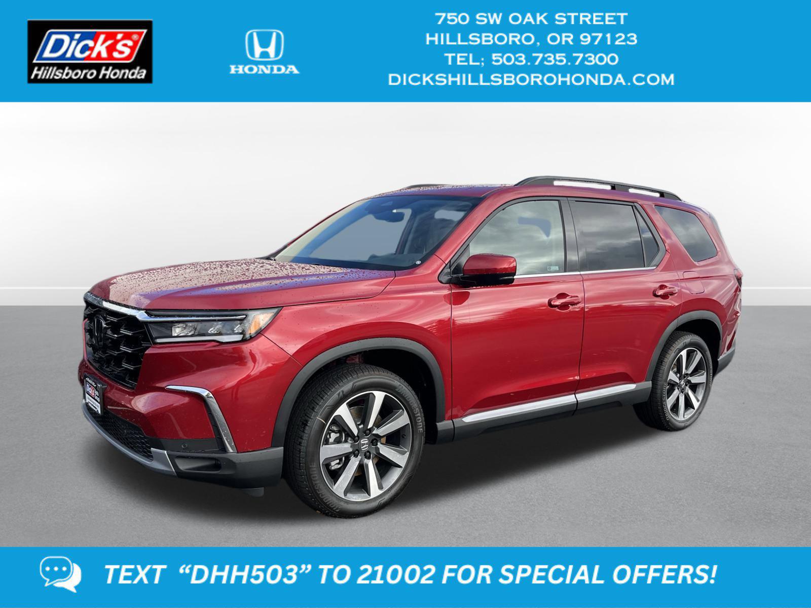 2025 Honda Pilot Touring AWD 10-Speed Automatic 3.5L V6 DOHC 24VAWD, 12 Speakers, 3rd row seats: split-bench, 4-Wheel Disc Brakes, 4.167 Axle Ratio, ABS brakes, Adaptive Cruise Control: Adaptive Cruise Control (ACC) with Low-Speed Follow, Air Conditioning, Alloy wheels, AM/FM radio: SiriusXM, Apple CarPlay/Android Auto, Auto High-beam Headlights, Auto-dimming Rear-View mirror, Automatic temperature control, Blind Spot Information (BSI) System warning, Bose Premium Sound System, Brake assist, Bumpers: body-color, Compass, Delay-off headlights, Driver door bin, Driver vanity mirror, Dual front impact airbags, Dual front side impact airbags, Electronic Stability Control, Emergency communication system: HondaLink, Exterior Parking Camera Rear, Four wheel independent suspension, Front anti-roll bar, Front Bucket Seats, Front Center Armrest, Front dual zone A/C, Front fog lights, Front reading lights, Fully automatic headlights, Garage door transmitter: HomeLink, Heated door mirrors, Heated Front Bucket Seats, Heated front seats, Honda Satellite-Linked Navigation System, HondaLink Subscription Services, Illuminated entry, Knee airbag, Lane departure: Lane Keeping Assist System (LKAS) active, Leather Seat Trim, Low tire pressure warning, Memory seat, Navigation system: Honda Satellite-Linked Navigation System, Occupant sensing airbag, Outside temperature display, Overhead airbag, Overhead console, Panic alarm, Passenger door bin, Passenger vanity mirror, Power door mirrors, Power driver seat, Power Liftgate, Power moonroof, Power passenger seat, Power steering, Power windows, Radio data system, Rear air conditioning, Rear anti-roll bar, Rear reading lights, Rear seat center armrest, Rear window defroster, Rear window wiper, Reclining 3rd row seat, Remote keyless entry, Security system, SiriusXM, Speed control, Speed-sensing steering, Speed-Sensitive Wipers, Split folding rear seat, Spoiler, Steering wheel mounted audio controls, Tachometer, Telescoping steering wheel, Tilt steering wheel, Traction control, Trip computer, Turn signal indicator mirrors, Variably intermittent wipers, Wheels: 20 Shark Gray Machine Face w/Blk Lug Nuts, AWD.Recent Arrival! Factory equipped with an impressive 3.5 l, and an 10-speed automatic w/od with awd.*DESIRABLE FEATURES:* Navigation, Remote start, Backup camera, Bluetooth, Heated seating, WiFi capability, Moonroof, Leather, Power liftgate, Premium audio, 3rd row seat, Multi-zone AC. Your 2025 Honda Pilot Touring is one of 15 other SUVs like this in stock Beaverton drivers will find available to test drive at our new SUV showroom in Hillsboro, OR. This Honda Pilot is perfect for any ones SUV needs in our neighboring communities of Portland, Hillsboro & Beaverton, OR.*TECHNOLOGY FEATURES:* This Honda Pilot for sale near Portland includes Remote Engine Start, Navigation System, Premium Sound System, GPS System, WiFi Mobile Hotspot, Keyless Start, Smart Device Integration, Garage Door Opener, Bluetooth Connection, SiriusXM Satellite Radio, HD Radio, Keyless Entry.*Our Honda Dealership in Hillsboro:* Call Dicks Hillsboro Honda today at *503-735-7310 to schedule your test drive* of this 2025 Honda Pilot Touring! Dicks Hillsboro Honda features a wide selection of new Honda SUVs for sale near Portland, Hillsboro & Beaverton Oregon. You can also visit us at, 750 SW Oak St. Hillsboro OR, 97123 to check it out in person!*MECHANICAL FEATURES:* Installed mechanical features include All Wheel Drive, Heated Mirrors, Push Button Start, Power One-touch down windows, Power Locks, Power Mirrors, Traction Control, Locking Rear Differential, Ventilated Disc Brakes, Cruise Control, Power Passenger Seat, Intermittent Wipers, Variable Speed Intermittent Wipers, Tires - Front Performance, Tires - Rear Performance, Trip Computer, Remote Trunk Release, Power Steering*INTERIOR OPTIONS:* Leather Seats, Automatic Climate Control, Third Row Seats, Moon Roof, Panoramic Roof, Dual Power Seats, Heated Front Seats, Adjustable Lumbar Seats, Power Drivers Seat, Memory Seats, Leather Wrapped Steering Wheel, Pass-Through Rear Seat, Steering Wheel Audio Controls, Driver Illuminated Vanity Mirror, Bucket Front Seats, Memory Mirrors, Air Conditioning, Auto Dimming R/V Mirror, Multi-zone Climate Control, Passenger Illuminated Visor Mirror, Bench Seats, Trip Odometer, AM/FM Stereo, Floor Mats, Vanity Mirrors, Rear Window Defroster, Tilt Steering Wheel, Auxiliary Audio Input. Beaverton new Honda SUV dealers simply cannot compete with Dicks Hillsboro Honda attention to stocking Honda SUVs with the most popular interior options.*EXTERIOR OPTIONS:* Aluminum Wheels, Fog Lights, Power Folding Mirrors, Power Hands-Free Liftgate, Privacy Glass, Auto Headlamp, Spare Tire *Small Size*, Spoiler*SAFETY OPTIONS:* Electronic Stability Control, Blind Spot Monitoring, Lane Keeping Assist System, Cross Traffic Alerts, Rear Parking Aid, Lane Departure Warning, Back-Up Camera, Daytime Running Lights, LED Headlights, Front Collision Mitigation, Integrated Turn Signal Mirrors, Brake Assist, Cruise Control Steering Assist, Adaptive Cruise Control, Security System, Drivers Air Bag, Driver Alert System, Knee AirBag, ABS Brakes, Tire Pressure Monitoring System, Rear Air Bag, Driver Front Side Impact Air Bag, Child Proof Locks, Front Head Air Bag, Passenger Air Bag SensorOREGON'S BEST HONDA FINANCIAL CREDIT FINANCE RATES: are right here at Dicks Hillsboro Honda Hillsboro Dealership where we offer the most competitive Honda Financial finance rates near Portland for new & Certified Honda Financial Financing. Our brand Finance experts have solutions for everyone including bad credit car loans or first time buyer financing programs.Dicks Hillsboro Honda New Honda SUV dealership in Northwest Oregon is an easy drive or fly in from anywhere in the United States. Our Honda dealership sits just west of Beaverton.When choosing Honda dealers Portland shoppers prefer the short drive to Hillsboro where Dick's Hillsboro Honda has a new Honda Sup