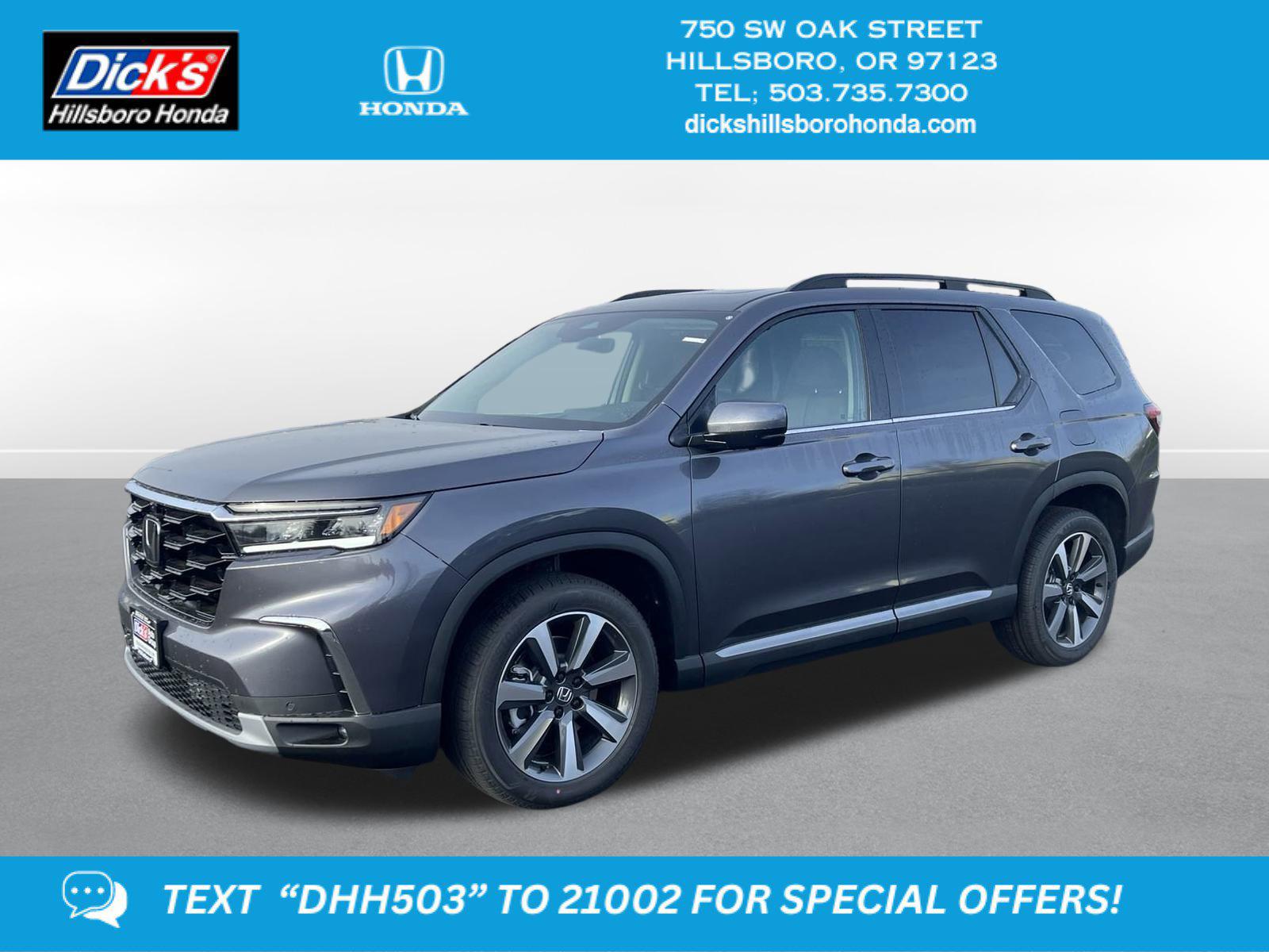 2025 Honda Pilot Elite Gv AWD 10-Speed Automatic 3.5L V6 DOHC 24VAWD, 12 Speakers, 3rd row seats: split-bench, 4-Wheel Disc Brakes, 4.167 Axle Ratio, ABS brakes, Adaptive Cruise Control: Adaptive Cruise Control (ACC) with Low-Speed Follow, Air Conditioning, Alloy wheels, AM/FM radio: SiriusXM, Apple CarPlay/Android Auto, Auto High-beam Headlights, Auto-dimming door mirrors, Auto-dimming Rear-View mirror, Automatic temperature control, Blind Spot Information (BSI) System warning, Bose Premium Sound System, Brake assist, Bumpers: body-color, Compass, Delay-off headlights, Door auto-latch, Driver door bin, Driver vanity mirror, Dual front impact airbags, Dual front side impact airbags, Electronic Stability Control, Emergency communication system: HondaLink, Exterior Parking Camera Rear, Four wheel independent suspension, Front anti-roll bar, Front Bucket Seats, Front Center Armrest, Front dual zone A/C, Front fog lights, Front reading lights, Fully automatic headlights, Garage door transmitter: HomeLink, Heads-Up Display, Heated & Ventilated Front Bucket Seats, Heated door mirrors, Heated front seats, Heated rear seats, Heated steering wheel, Honda Satellite-Linked Navigation System, HondaLink Subscription Services, Illuminated entry, Knee airbag, Lane departure: Lane Keeping Assist System (LKAS) active, Low tire pressure warning, Memory seat, Navigation system: Honda Satellite-Linked Navigation System, Occupant sensing airbag, Outside temperature display, Overhead airbag, Overhead console, Panic alarm, Passenger door bin, Passenger vanity mirror, Perforated Leather Seat Trim, Power door mirrors, Power driver seat, Power Liftgate, Power moonroof, Power passenger seat, Power steering, Power windows, Radio data system, Rain sensing wipers, Rear air conditioning, Rear anti-roll bar, Rear reading lights, Rear seat center armrest, Rear window defroster, Rear window wiper, Reclining 3rd row seat, Remote keyless entry, Roof rack: rails only, Security system, SiriusXM, Speed control, Speed-sensing steering, Speed-Sensitive Wipers, Split folding rear seat, Spoiler, Steering wheel mounted audio controls, Tachometer, Telescoping steering wheel, Tilt steering wheel, Traction control, Trip computer, Turn signal indicator mirrors, Variably intermittent wipers, Ventilated front seats, Wheels: 20 Shark Gray Machine Face w/Blk Lug Nuts, AWD.Recent Arrival! This 2025 Honda Pilot Elite features a Modern Steel Metallic exterior with a Brown interior. Factory equipped with an impressive 3.5 l, and an 10-speed automatic w/od with awd.*DESIRABLE FEATURES:* Navigation, Remote start, Backup camera, Bluetooth, Heated steering, Heated seating, WiFi capability, Leather, Moonroof, Power liftgate, Premium audio, Multi-zone AC, 3rd row seat. Your 2025 Honda Pilot Elite is one of 17 other SUVs like this in stock Beaverton drivers will find available to test drive at our new SUV showroom in Hillsboro, OR. This Honda Pilot is perfect for any ones SUV needs in our neighboring communities of Portland, Hillsboro & Beaverton, OR.*TECHNOLOGY FEATURES:* This Honda Pilot for sale near Portland includes WiFi Mobile Hotspot, Remote Engine Start, Heads Up Display, Premium Sound System, GPS System, Navigation System, Keyless Start, Garage Door Opener, Bluetooth Connection, Smart Device Integration, SiriusXM Satellite Radio, HD Radio, Keyless Entry.*Our Honda Dealership in Hillsboro:* Call Dicks Hillsboro Honda today at *(503) 616-4532 to schedule your test drive* of this 2025 Honda Pilot Elite! Dicks Hillsboro Honda features a wide selection of new Honda SUVs for sale near Portland, Hillsboro & Beaverton Oregon. You can also visit us at, 750 SW Oak St. Hillsboro OR, 97123 to check it out in person!*MECHANICAL FEATURES:* Installed mechanical features include Power One-touch Down windows, All Wheel Drive, Heated Mirrors, Push Button Start, Traction Control, Power Mirrors, Power Locks, Power Passenger Seat, Locking Rear Differential, Cruise Control, Ventilated Disc Brakes, Intermittent Wipers, Tires - Rear Performance, Tires - Front Performance, Trip Computer, Variable Speed Intermittent Wipers, Power Steering, Remote Trunk Release*INTERIOR OPTIONS:* Heated Rear Seats, Dual Power Seats, Air Conditioned Front Seats, Leather Seats, Panoramic Roof, Automatic Climate Control, Heated Steering Wheel, Third Row Seats, Moon Roof, Heated Front Seats, Adjustable Lumbar Seats, Memory Seats, Leather Wrapped Steering Wheel, Power Drivers Seat, Bucket Front Seats, Driver Illuminated Vanity Mirror, Steering Wheel Audio Controls, Memory Mirrors, Air Conditioning, Pass-Through Rear Seat, Multi-zone Climate Control, Auto Dimming R/V Mirror, Passenger Illuminated Visor Mirror, Auxiliary Audio Input, Tilt Steering Wheel, Floor Mats, Rear Window Defroster, Trip Odometer, Bench Seats, AM/FM Stereo, Vanity Mirrors. Beaverton new Honda SUV dealers simply cannot compete with Dicks Hillsboro Honda attention to stocking Honda SUVs with the most popular interior options.*EXTERIOR OPTIONS:* Fog Lights, Aluminum Wheels, Power Hands-Free Liftgate, Power Folding Mirrors, Privacy Glass, Auto Headlamp, Spoiler, Spare Tire *Small Size**SAFETY OPTIONS:* Lane Departure Warning, Cross Traffic Alerts, Lane Keeping Assist System, Rear Parking Aid, Blind Spot Monitoring, Rain Sensing Wipers, Back-Up Camera, Electronic Stability Control, 360 Camera, LED Headlights, Adaptive Cruise Control, Brake Assist, Integrated Turn Signal Mirrors, Front Collision Mitigation, Cruise Control Steering Assist, Daytime Running Lights, Security System, Knee AirBag, Tire Pressure Monitoring System, Rear Air Bag, Drivers Air Bag, Driver Alert System, ABS Brakes, Child Proof Locks, Driver Front Side Impact Air Bag, Passenger Air Bag Sensor, Front Head Air BagOREGON'S BEST HONDA FINANCIAL CREDIT FINANCE RATES: are right here at Dicks Hillsboro Honda Hillsboro Dealership where we offer the most competitive Honda Financial finance rates near Portland for new & Certified Honda Financial Financing. Our br
