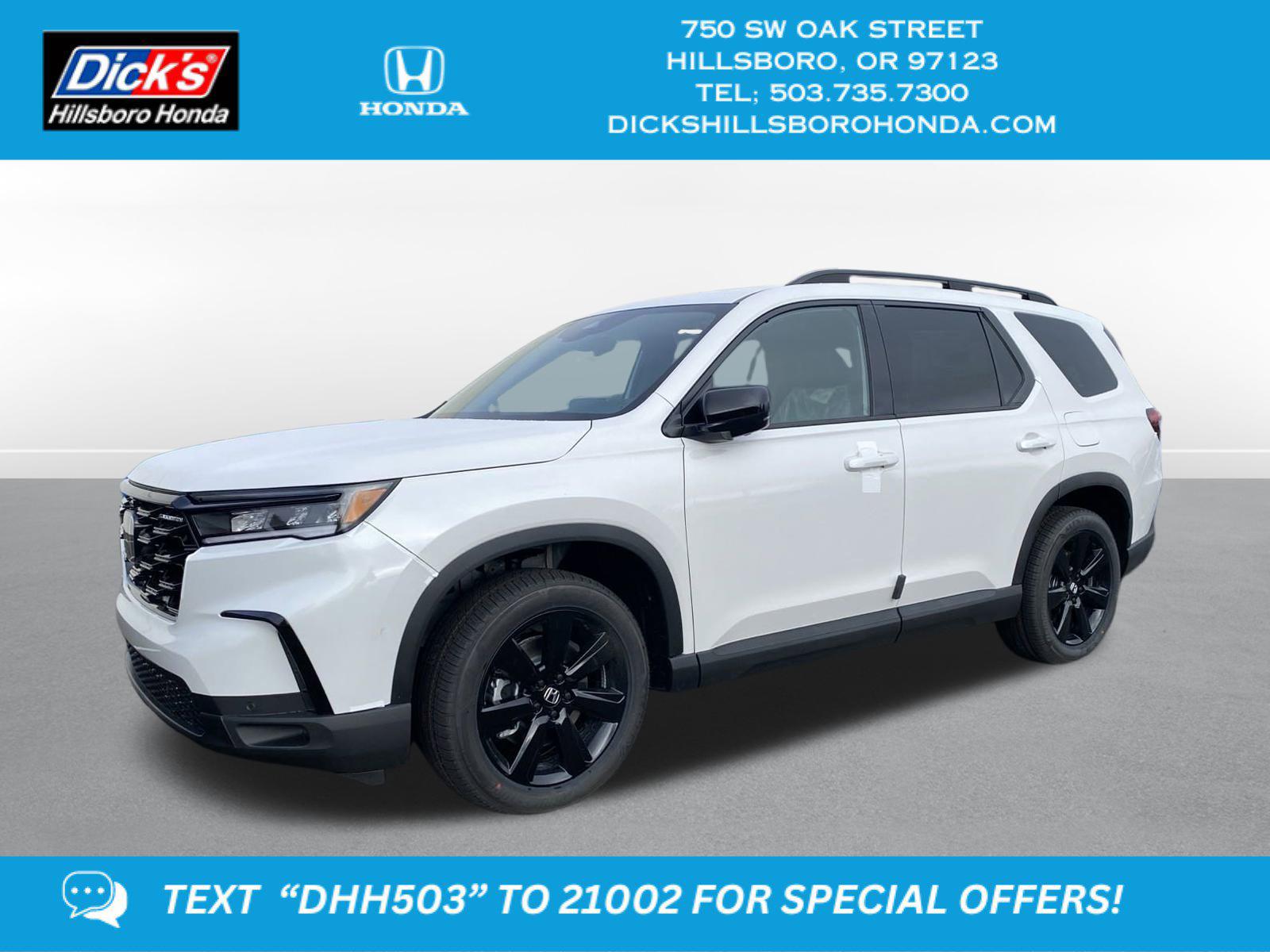 2025 Honda Pilot Black Edition Platinum White Pearl AWD 10-Speed Automatic 3.5L V6 DOHC 24VAWD, 12 Speakers, 3rd row seats: split-bench, 4-Wheel Disc Brakes, 4.167 Axle Ratio, ABS brakes, Adaptive Cruise Control: Adaptive Cruise Control (ACC) with Low-Speed Follow, Air Conditioning, Alloy wheels, AM/FM radio: SiriusXM, Apple CarPlay/Android Auto, Auto High-beam Headlights, Auto-dimming door mirrors, Auto-dimming Rear-View mirror, Automatic temperature control, Blind Spot Information (BSI) System warning, Bose Premium Sound System, Brake assist, Bumpers: body-color, Compass, Delay-off headlights, Door auto-latch, Driver door bin, Driver vanity mirror, Dual front impact airbags, Dual front side impact airbags, Electronic Stability Control, Emergency communication system: HondaLink, Exterior Parking Camera Rear, Four wheel independent suspension, Front anti-roll bar, Front Bucket Seats, Front Center Armrest, Front dual zone A/C, Front fog lights, Front reading lights, Fully automatic headlights, Garage door transmitter: HomeLink, Heads-Up Display, Heated & Ventilated Front Bucket Seats, Heated door mirrors, Heated front seats, Heated rear seats, Heated steering wheel, Honda Satellite-Linked Navigation System, HondaLink Subscription Services, Illuminated entry, Knee airbag, Lane departure: Lane Keeping Assist System (LKAS) active, Low tire pressure warning, Memory seat, Navigation system: Honda Satellite-Linked Navigation System, Occupant sensing airbag, Outside temperature display, Overhead airbag, Overhead console, Panic alarm, Passenger door bin, Passenger vanity mirror, Perforated Leather Seat Trim, Power door mirrors, Power driver seat, Power Liftgate, Power moonroof, Power passenger seat, Power steering, Power windows, Radio data system, Rain sensing wipers, Rear air conditioning, Rear anti-roll bar, Rear reading lights, Rear seat center armrest, Rear window defroster, Rear window wiper, Reclining 3rd row seat, Remote keyless entry, Roof rack: rails only, Security system, SiriusXM, Speed control, Speed-sensing steering, Speed-Sensitive Wipers, Split folding rear seat, Spoiler, Steering wheel mounted audio controls, Tachometer, Telescoping steering wheel, Tilt steering wheel, Traction control, Trip computer, Turn signal indicator mirrors, Variably intermittent wipers, Ventilated front seats, Wheels: 20 Gloss Black w/Black Lug Nuts, AWD.Recent Arrival! This 2025 Honda Pilot Black Edition features a Platinum White Pearl exterior with a Black interior. Factory equipped with an impressive 3.5 l, and an 10-speed automatic w/od with awd.*DESIRABLE FEATURES:* Navigation, Remote start, Backup camera, Bluetooth, Leather, Moonroof, Heated seating, Heated steering, WiFi capability, Power liftgate, Multi-zone AC, 3rd row seat, Premium audio. Your 2025 Honda Pilot Black Edition is one of 16 other SUVs like this in stock Beaverton drivers will find available to test drive at our new SUV showroom in Hillsboro, OR. This Honda Pilot is perfect for any ones SUV needs in our neighboring communities of Portland, Hillsboro & Beaverton, OR.*TECHNOLOGY FEATURES:* This Honda Pilot for sale near Portland includes Navigation System, Remote Engine Start, Premium Sound System, WiFi Mobile Hotspot, Heads Up Display, GPS System, Keyless Start, SiriusXM Satellite Radio, Smart Device Integration, Garage Door Opener, Bluetooth Connection, HD Radio, Keyless Entry.*Our Honda Dealership in Hillsboro:* Call Dicks Hillsboro Honda today at *(503) 616-4532 to schedule your test drive* of this 2025 Honda Pilot Black Edition! Dicks Hillsboro Honda features a wide selection of new Honda SUVs for sale near Portland, Hillsboro & Beaverton Oregon. You can also visit us at, 750 SW Oak St. Hillsboro OR, 97123 to check it out in person!*MECHANICAL FEATURES:* Installed mechanical features include All Wheel Drive, Heated Mirrors, Power One-touch Down windows, Push Button Start, Traction Control, Power Mirrors, Power Locks, Ventilated Disc Brakes, Locking Rear Differential, Power Passenger Seat, Cruise Control, Intermittent Wipers, Tires - Front Performance, Trip Computer, Power Steering, Remote Trunk Release, Tires - Rear Performance, Variable Speed Intermittent Wipers*INTERIOR OPTIONS:* Third Row Seats, Panoramic Roof, Heated Rear Seats, Leather Seats, Automatic Climate Control, Moon Roof, Heated Front Seats, Heated Steering Wheel, Air Conditioned Front Seats, Dual Power Seats, Adjustable Lumbar Seats, Leather Wrapped Steering Wheel, Memory Seats, Power Drivers Seat, Air Conditioning, Steering Wheel Audio Controls, Driver Illuminated Vanity Mirror, Memory Mirrors, Pass-Through Rear Seat, Bucket Front Seats, Auto Dimming R/V Mirror, Multi-zone Climate Control, Passenger Illuminated Visor Mirror, Tilt Steering Wheel, Vanity Mirrors, Floor Mats, AM/FM Stereo, Rear Window Defroster, Auxiliary Audio Input, Trip Odometer, Bench Seats. Beaverton new Honda SUV dealers simply cannot compete with Dicks Hillsboro Honda attention to stocking Honda SUVs with the most popular interior options.*EXTERIOR OPTIONS:* Fog Lights, Aluminum Wheels, Power Folding Mirrors, Power Hands-Free Liftgate, Privacy Glass, Auto Headlamp, Spoiler, Spare Tire *Small Size**SAFETY OPTIONS:* Electronic Stability Control, Blind Spot Monitoring, Back-Up Camera, Cross Traffic Alerts, Rain Sensing Wipers, Lane Departure Warning, Lane Keeping Assist System, Rear Parking Aid, Cruise Control Steering Assist, LED Headlights, Daytime Running Lights, Security System, 360 Camera, Adaptive Cruise Control, Brake Assist, Integrated Turn Signal Mirrors, Front Collision Mitigation, Drivers Air Bag, ABS Brakes, Driver Alert System, Rear Air Bag, Knee AirBag, Tire Pressure Monitoring System, Passenger Air Bag Sensor, Child Proof Locks, Driver Front Side Impact Air Bag, Front Head Air BagOREGON'S BEST HONDA FINANCIAL CREDIT FINANCE RATES: are right here at Dicks Hillsboro Honda Hillsboro Dealership where we offer the most competitive Honda Financial finance rates near Portland for new & Cert