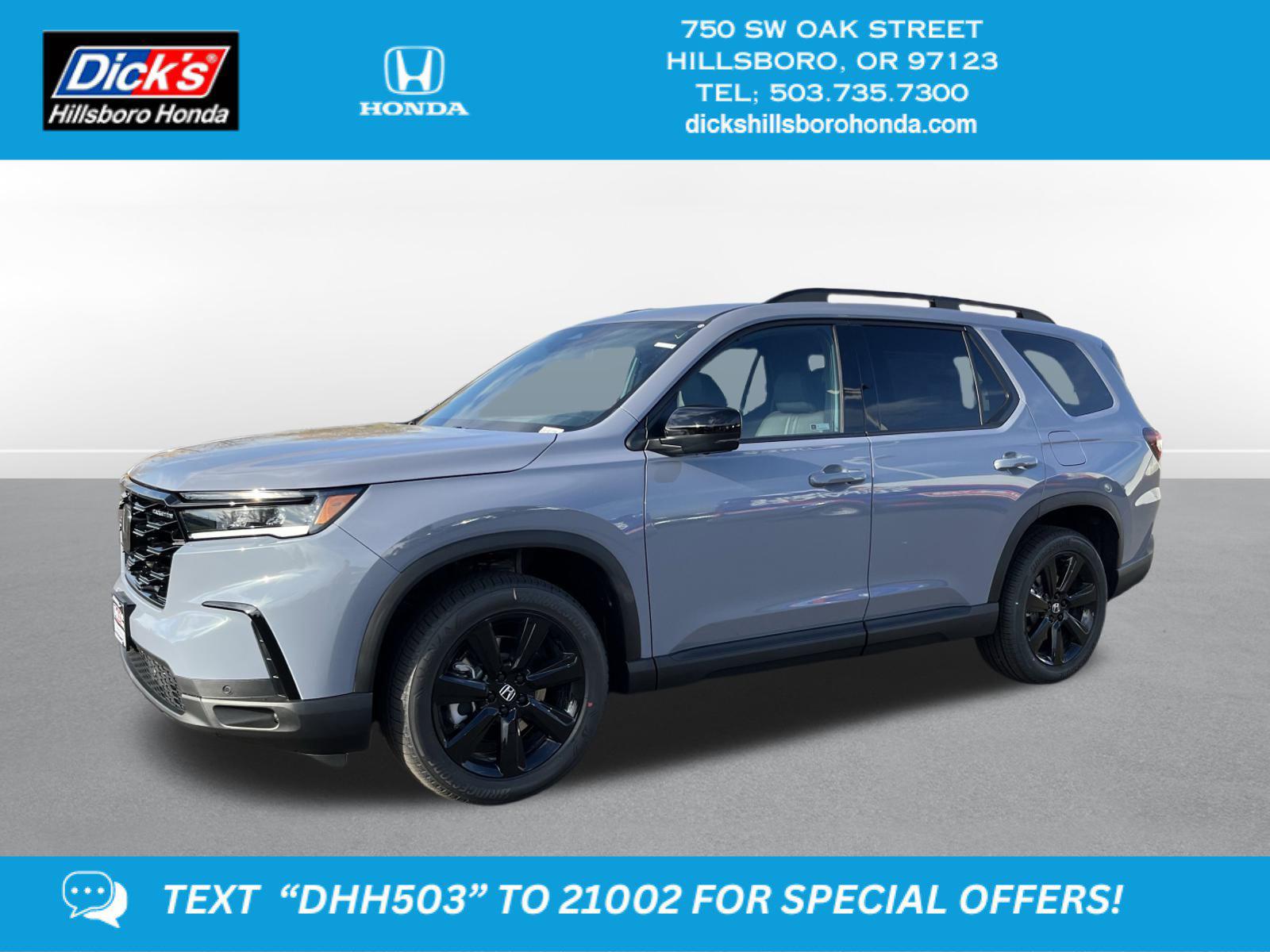 2025 Honda Pilot Black Edition Sonic Gray Pearl AWD 10-Speed Automatic 3.5L V6 DOHC 24VAWD, 12 Speakers, 3rd row seats: split-bench, 4-Wheel Disc Brakes, 4.167 Axle Ratio, ABS brakes, Adaptive Cruise Control: Adaptive Cruise Control (ACC) with Low-Speed Follow, Air Conditioning, Alloy wheels, AM/FM radio: SiriusXM, Apple CarPlay/Android Auto, Auto High-beam Headlights, Auto-dimming door mirrors, Auto-dimming Rear-View mirror, Automatic temperature control, Blind Spot Information (BSI) System warning, Bose Premium Sound System, Brake assist, Bumpers: body-color, Compass, Delay-off headlights, Driver door bin, Driver vanity mirror, Dual front impact airbags, Dual front side impact airbags, Electronic Stability Control, Emergency communication system: HondaLink, Exterior Parking Camera Rear, Four wheel independent suspension, Front anti-roll bar, Front Bucket Seats, Front Center Armrest, Front dual zone A/C, Front fog lights, Front reading lights, Fully automatic headlights, Garage door transmitter: HomeLink, Heads-Up Display, Heated & Ventilated Front Bucket Seats, Heated door mirrors, Heated front seats, Heated rear seats, Heated steering wheel, Honda Satellite-Linked Navigation System, HondaLink Subscription Services, Illuminated entry, Knee airbag, Lane departure: Lane Keeping Assist System (LKAS) active, Low tire pressure warning, Memory seat, Navigation system: Honda Satellite-Linked Navigation System, Occupant sensing airbag, Outside temperature display, Overhead airbag, Overhead console, Panic alarm, Passenger door bin, Passenger vanity mirror, Perforated Leather Seat Trim, Power door mirrors, Power driver seat, Power Liftgate, Power moonroof, Power passenger seat, Power steering, Power windows, Radio data system, Rain sensing wipers, Rear air conditioning, Rear anti-roll bar, Rear reading lights, Rear seat center armrest, Rear window defroster, Rear window wiper, Reclining 3rd row seat, Remote keyless entry, Security system, SiriusXM, Speed control, Speed-sensing steering, Speed-Sensitive Wipers, Split folding rear seat, Spoiler, Steering wheel mounted audio controls, Tachometer, Telescoping steering wheel, Tilt steering wheel, Traction control, Trip computer, Turn signal indicator mirrors, Variably intermittent wipers, Ventilated front seats, Wheels: 20 Gloss Black w/Black Lug Nuts, AWD.Recent Arrival! This 2025 Honda Pilot Black Edition features a Sonic Gray Pearl exterior with a Black interior. Factory equipped with an impressive 3.5 l, and an 10-speed automatic w/od with awd.*DESIRABLE FEATURES:* Navigation, Remote start, Backup camera, Leather, Bluetooth, WiFi capability, Moonroof, Heated steering, Heated seating, Power liftgate, Premium audio, Multi-zone AC, 3rd row seat. Your 2025 Honda Pilot Black Edition is one of 14 other SUVs like this in stock Beaverton drivers will find available to test drive at our new SUV showroom in Hillsboro, OR. This Honda Pilot is perfect for any ones SUV needs in our neighboring communities of Portland, Hillsboro & Beaverton, OR.*TECHNOLOGY FEATURES:* This Honda Pilot for sale near Portland includes Heads Up Display, Navigation System, WiFi Mobile Hotspot, Premium Sound System, Remote Engine Start, GPS System, Keyless Start, Garage Door Opener, Smart Device Integration, SiriusXM Satellite Radio, Bluetooth Connection, HD Radio, Keyless Entry.*Our Honda Dealership in Hillsboro:* Call Dicks Hillsboro Honda today at *503-735-7310 to schedule your test drive* of this 2025 Honda Pilot Black Edition! Dicks Hillsboro Honda features a wide selection of new Honda SUVs for sale near Portland, Hillsboro & Beaverton Oregon. You can also visit us at, 750 SW Oak St. Hillsboro OR, 97123 to check it out in person!*MECHANICAL FEATURES:* Installed mechanical features include Heated Mirrors, Power One-touch down windows, Push Button Start, All Wheel Drive, Power Locks, Power Mirrors, Traction Control, Locking Rear Differential, Ventilated Disc Brakes, Cruise Control, Power Passenger Seat, Intermittent Wipers, Power Steering, Variable Speed Intermittent Wipers, Remote Trunk Release, Tires - Rear Performance, Tires - Front Performance, Trip Computer*INTERIOR OPTIONS:* Panoramic Roof, Heated Front Seats, Leather Seats, Moon Roof, Heated Steering Wheel, Heated Rear Seats, Automatic Climate Control, Third Row Seats, Air Conditioned Front Seats, Dual Power Seats, Adjustable Lumbar Seats, Power Drivers Seat, Memory Seats, Leather Wrapped Steering Wheel, Pass-Through Rear Seat, Air Conditioning, Steering Wheel Audio Controls, Memory Mirrors, Driver Illuminated Vanity Mirror, Bucket Front Seats, Auto Dimming R/V Mirror, Multi-zone Climate Control, Passenger Illuminated Visor Mirror, Vanity Mirrors, Tilt Steering Wheel, Auxiliary Audio Input, Floor Mats, Bench Seats, AM/FM Stereo, Trip Odometer, Rear Window Defroster. Beaverton new Honda SUV dealers simply cannot compete with Dicks Hillsboro Honda attention to stocking Honda SUVs with the most popular interior options.*EXTERIOR OPTIONS:* Fog Lights, Aluminum Wheels, Power Hands-Free Liftgate, Power Folding Mirrors, Privacy Glass, Auto Headlamp, Spare Tire *Small Size*, Spoiler*SAFETY OPTIONS:* Rain Sensing Wipers, Electronic Stability Control, Back-Up Camera, Cross Traffic Alerts, Blind Spot Monitoring, Lane Departure Warning, Rear Parking Aid, Lane Keeping Assist System, Adaptive Cruise Control, Security System, Brake Assist, Front Collision Mitigation, Daytime Running Lights, Integrated Turn Signal Mirrors, Cruise Control Steering Assist, LED Headlights, Tire Pressure Monitoring System, Driver Alert System, ABS Brakes, Drivers Air Bag, Knee AirBag, Ground view camera, Rear Air Bag, Driver Front Side Impact Air Bag, Front Head Air Bag, Child Proof Locks, Passenger Air Bag SensorOREGON'S BEST HONDA FINANCIAL CREDIT FINANCE RATES: are right here at Dicks Hillsboro Honda Hillsboro Dealership where we offer the most competitive Honda Financial finance rates near Portland for new & Certified Honda Financial Financing. Our brand