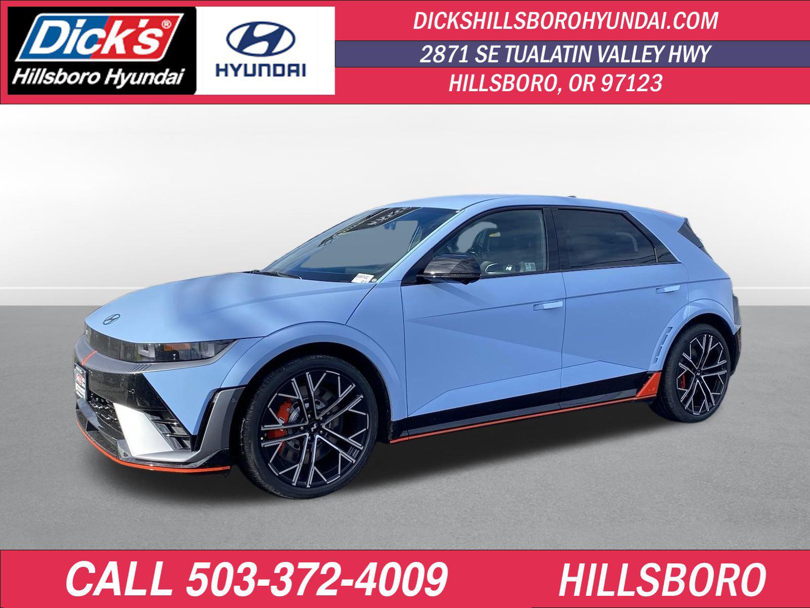 2025 Hyundai IONIQ 5 N Base Performance Blue Matte AWD Electric Motor 1-Speed Automatic4-Wheel Disc Brakes, 8 Speakers, ABS brakes, Adaptive suspension, Air Conditioning, Alloy wheels, AM/FM radio: SiriusXM, Apple CarPlay & Android Auto, Auto High-beam Headlights, Auto-dimming Rear-View mirror, Automatic temperature control, Bodyside moldings, Brake assist, Bumpers: body-color, Delay-off headlights, Driver door bin, Driver vanity mirror, Dual front impact airbags, Dual front side impact airbags, Eco Alcantara/H-Tex Seating Surfaces, Electronic Stability Control, Emergency communication system: Bluelink+, Four wheel independent suspension, Front anti-roll bar, Front Bucket Seats, Front Center Armrest w/Storage, Front dual zone A/C, Front reading lights, Fully automatic headlights, Garage door transmitter: HomeLink, Heated & Ventilated N Lightweight Sport Bucket Seats, Heated door mirrors, Heated front seats, Heated steering wheel, Illuminated entry, Leather steering wheel, Low tire pressure warning, Navigation System, Occupant sensing airbag, Option Group 01, Outside temperature display, Overhead airbag, Panic alarm, Passenger door bin, Passenger vanity mirror, Power door mirrors, Power Liftgate, Power steering, Power windows, Radio: AM/FM/SiriusXM/HD Display Audio System, Rain sensing wipers, Rear anti-roll bar, Rear reading lights, Rear seat center armrest, Rear window defroster, Rear window wiper, Remote keyless entry, Security system, Speed control, Speed-sensing steering, Split folding rear seat, Spoiler, Steering wheel mounted audio controls, Telescoping steering wheel, Tilt steering wheel, Traction control, Trip computer, Turn signal indicator mirrors, Variably intermittent wipers, Ventilated front seats, Wheels: 21 x 9.5J Forged N Alloy.Recent Arrival!