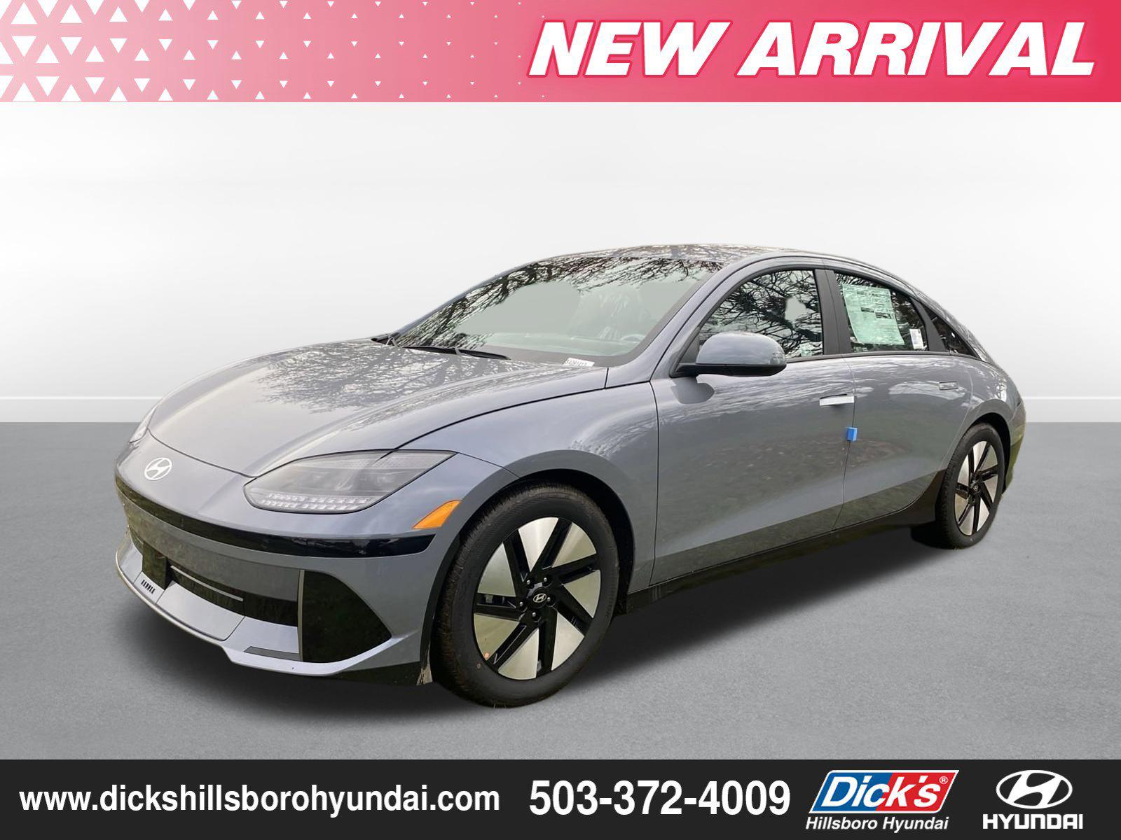 2025 Hyundai IONIQ 6 SE Transmission Blue RWD Electric Motor 1-Speed Automatic4-Wheel Disc Brakes, 6 Speakers, ABS brakes, Air Conditioning, Alloy Door Step Plates, Alloy wheels, AM/FM radio: SiriusXM, Apple CarPlay & Android Auto, Auto High-beam Headlights, Automatic temperature control, Brake assist, Bumpers: body-color, Carpeted Floor Mats, Delay-off headlights, Driver door bin, Driver vanity mirror, Dual front impact airbags, Dual front side impact airbags, Electronic Stability Control, Emergency communication system, Envelope Cargo Net, First Aid Kit, Four wheel independent suspension, Front anti-roll bar, Front Bucket Seats, Front Center Armrest, Front dual zone A/C, Front reading lights, Fully automatic headlights, harman/kardon® Speakers, Heated door mirrors, Heated Front Bucket Seats, Heated front seats, Illuminated entry, Leather steering wheel, Low tire pressure warning, Navigation System, Occupant sensing airbag, Option Group 01, Outside temperature display, Overhead airbag, Panic alarm, Passenger door bin, Passenger vanity mirror, Power door mirrors, Power driver seat, Power steering, Power windows, Radio: AM/FM/SiriusXM/HD Radio Audio System, Rear anti-roll bar, Rear reading lights, Rear Reversible Cargo Tray, Rear seat center armrest, Rear window defroster, Remote keyless entry, Security system, Speed control, Speed-sensing steering, Split folding rear seat, Spoiler, Stain-Resistant Cloth Seating Surfaces, Steering wheel mounted audio controls, Telescoping steering wheel, Tilt steering wheel, Traction control, Trip computer, Turn signal indicator mirrors, Variably intermittent wipers, Wheels: 18 x 7.5J Alloy.144/120 City/Highway MPG