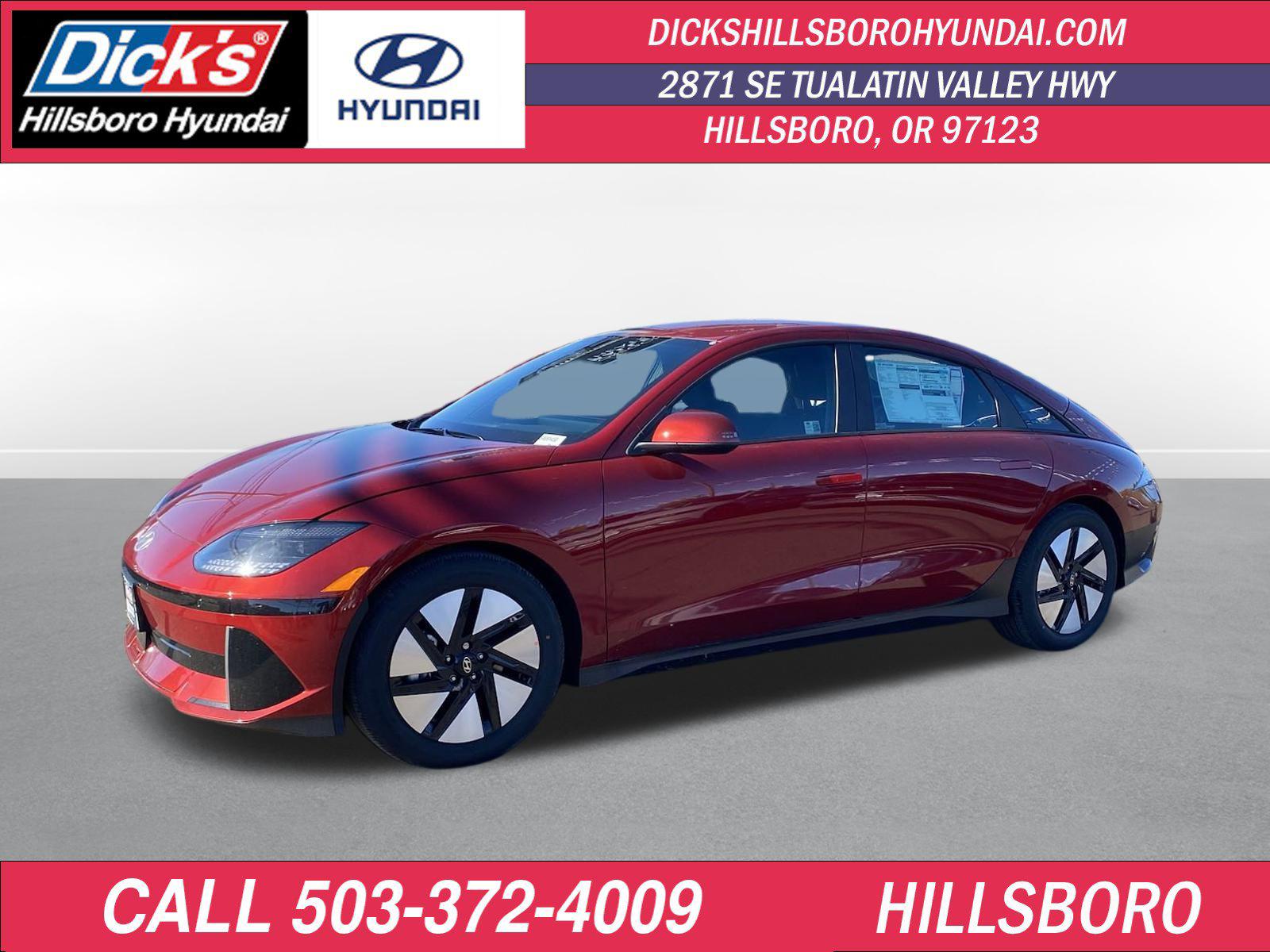 2025 Hyundai IONIQ 6 SE Ultimate Red RWD Electric Motor 1-Speed Automatic4-Wheel Disc Brakes, 6 Speakers, ABS brakes, Air Conditioning, Alloy wheels, AM/FM radio: SiriusXM, Apple CarPlay & Android Auto, Auto High-beam Headlights, Automatic temperature control, Brake assist, Bumpers: body-color, Cargo Blocks, Carpeted Floor Mats, Delay-off headlights, Driver door bin, Driver vanity mirror, Dual front impact airbags, Dual front side impact airbags, Electronic Stability Control, Emergency communication system, Envelope Cargo Net, First Aid Kit, Four wheel independent suspension, Front anti-roll bar, Front Bucket Seats, Front Center Armrest, Front dual zone A/C, Front reading lights, Fully automatic headlights, harman/kardon® Speakers, Heated door mirrors, Heated Front Bucket Seats, Heated front seats, Illuminated entry, Leather steering wheel, Low tire pressure warning, Navigation System, Occupant sensing airbag, Option Group 01, Outside temperature display, Overhead airbag, Panic alarm, Passenger door bin, Passenger vanity mirror, Power door mirrors, Power driver seat, Power steering, Power windows, Radio: AM/FM/SiriusXM/HD Radio Audio System, Rear anti-roll bar, Rear reading lights, Rear Reversible Cargo Tray, Rear seat center armrest, Rear window defroster, Remote keyless entry, Security system, Severe Weather Kit, Speed control, Speed-sensing steering, Split folding rear seat, Spoiler, Stain-Resistant Cloth Seating Surfaces, Steering wheel mounted audio controls, Telescoping steering wheel, Tilt steering wheel, Traction control, Trip computer, Turn signal indicator mirrors, Variably intermittent wipers, Wheel Locks, Wheels: 18 x 7.5J Alloy.Recent Arrival! 144/120 City/Highway MPG