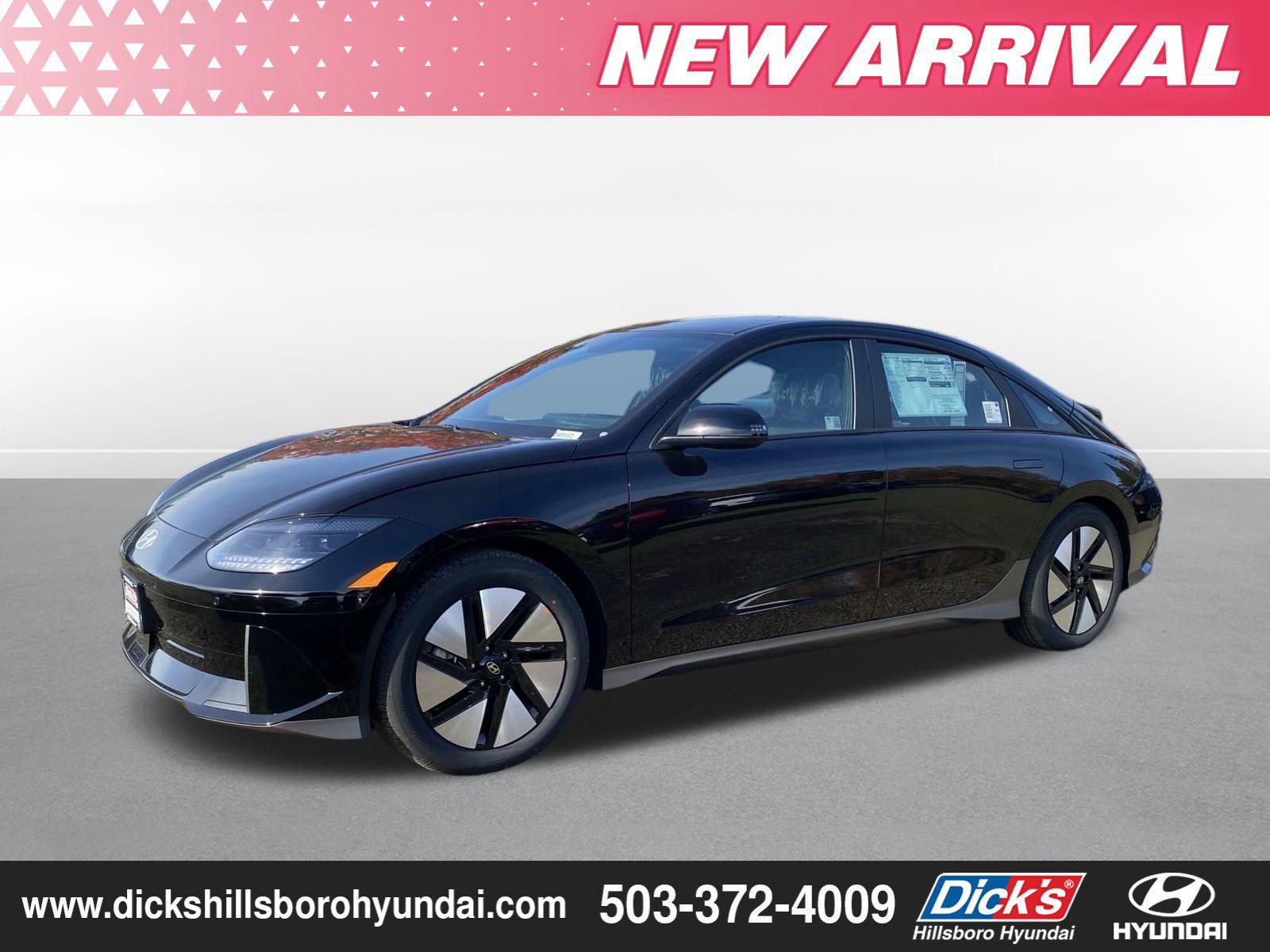 2025 Hyundai IONIQ 6 SE Onyx Black AWD Electric Motor 1-Speed Automatic4-Wheel Disc Brakes, 6 Speakers, ABS brakes, Air Conditioning, Alloy wheels, AM/FM radio: SiriusXM, Apple CarPlay & Android Auto, Auto High-beam Headlights, Automatic temperature control, Brake assist, Bumpers: body-color, Delay-off headlights, Driver door bin, Driver vanity mirror, Dual front impact airbags, Dual front side impact airbags, Electronic Stability Control, Emergency communication system, Four wheel independent suspension, Front anti-roll bar, Front Bucket Seats, Front Center Armrest, Front dual zone A/C, Front reading lights, Fully automatic headlights, harman/kardon® Speakers, Heated door mirrors, Heated Front Bucket Seats, Heated front seats, Illuminated entry, Leather steering wheel, Low tire pressure warning, Navigation System, Occupant sensing airbag, Option Group 01, Outside temperature display, Overhead airbag, Panic alarm, Passenger door bin, Passenger vanity mirror, Power door mirrors, Power driver seat, Power steering, Power windows, Radio: AM/FM/SiriusXM/HD Radio Audio System, Rear anti-roll bar, Rear reading lights, Rear seat center armrest, Rear window defroster, Remote keyless entry, Security system, Speed control, Speed-sensing steering, Split folding rear seat, Spoiler, Stain-Resistant Cloth Seating Surfaces, Steering wheel mounted audio controls, Telescoping steering wheel, Tilt steering wheel, Traction control, Trip computer, Turn signal indicator mirrors, Variably intermittent wipers, Wheels: 18 x 7.5J Alloy.130/111 City/Highway MPG