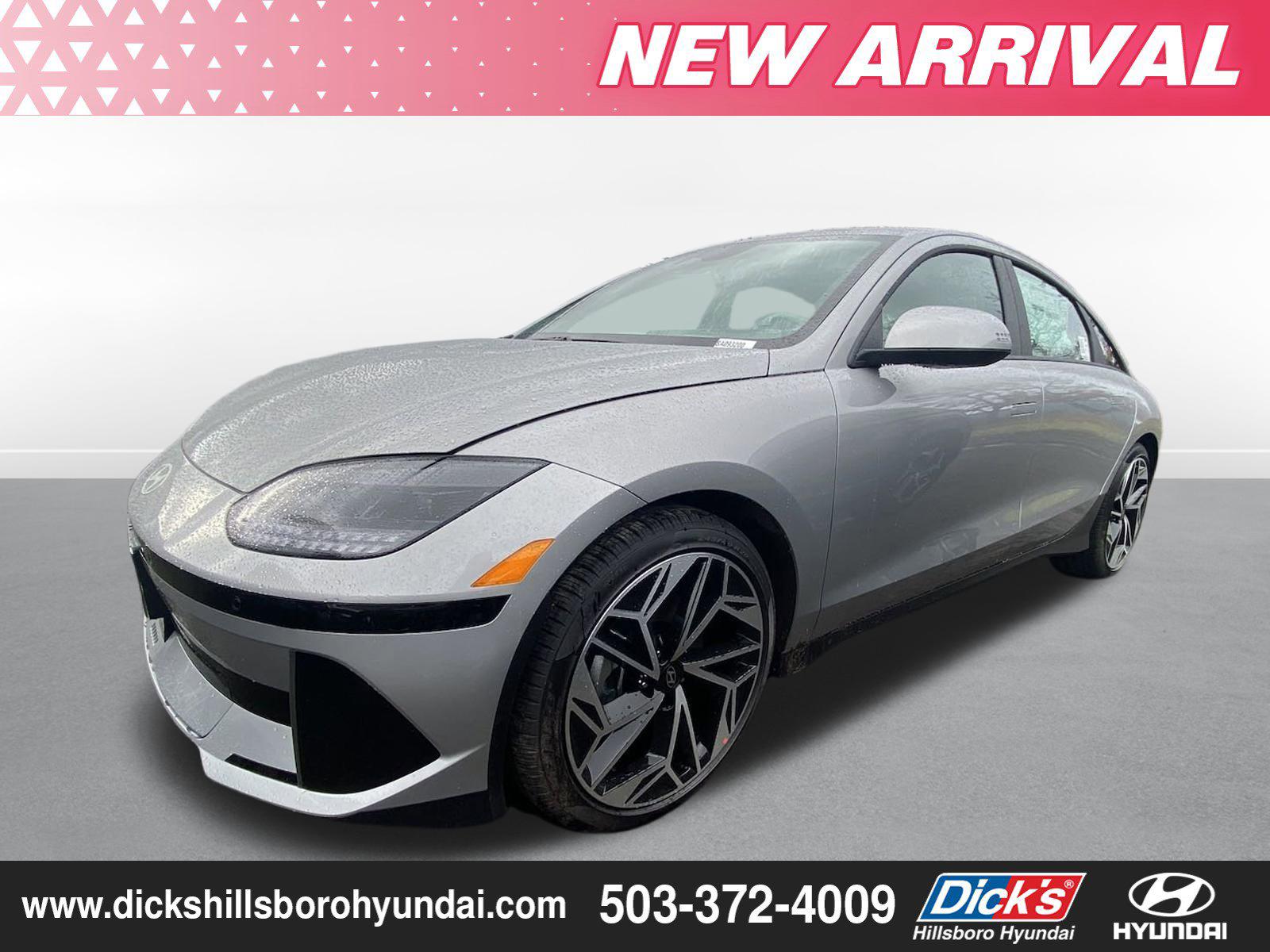 2025 Hyundai IONIQ 6 SEL Curated Silver RWD Electric Motor 1-Speed Automatic4-Wheel Disc Brakes, 6 Speakers, ABS brakes, Air Conditioning, Alloy Door Step Plates, Alloy wheels, AM/FM radio: SiriusXM, Apple CarPlay & Android Auto, Auto High-beam Headlights, Auto-dimming Rear-View mirror, Automatic temperature control, Brake assist, Bumpers: body-color, Carpeted Floor Mats, Delay-off headlights, Driver door bin, Driver vanity mirror, Dual front impact airbags, Dual front side impact airbags, Electronic Stability Control, Emergency communication system, Envelope Cargo Net, First Aid Kit, Four wheel independent suspension, Front anti-roll bar, Front Bucket Seats, Front Center Armrest, Front dual zone A/C, Front reading lights, Fully automatic headlights, Garage door transmitter: HomeLink, H-Tex Leatherette Seating Surfaces, harman/kardon® Speakers, Heated door mirrors, Heated Front Bucket Seats, Heated front seats, Illuminated entry, Leather steering wheel, Low tire pressure warning, Navigation System, Occupant sensing airbag, Option Group 01, Outside temperature display, Overhead airbag, Panic alarm, Passenger door bin, Passenger vanity mirror, Power door mirrors, Power driver seat, Power steering, Power windows, Radio: AM/FM/SiriusXM/HD Radio Audio System, Rear anti-roll bar, Rear reading lights, Rear Reversible Cargo Tray, Rear seat center armrest, Rear window defroster, Remote keyless entry, Security system, Speed control, Speed-sensing steering, Split folding rear seat, Spoiler, Steering wheel mounted audio controls, Telescoping steering wheel, Tilt steering wheel, Traction control, Trip computer, Turn signal indicator mirrors, Variably intermittent wipers, Vehicle to Load Adapter, Wheels: 20 x 8.5J Alloy.123/100 City/Highway MPG