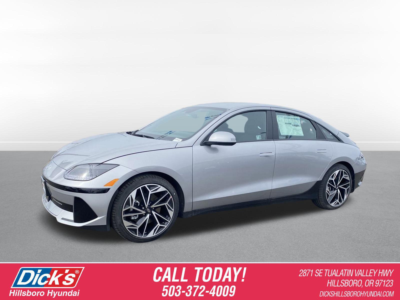 2025 Hyundai IONIQ 6 SEL Curated Silver AWD Electric Motor 1-Speed Automatic4-Wheel Disc Brakes, 6 Speakers, ABS brakes, Air Conditioning, All Season Fitted Liners, Alloy wheels, AM/FM radio: SiriusXM, Apple CarPlay & Android Auto, Auto High-beam Headlights, Auto-dimming Rear-View mirror, Automatic temperature control, Brake assist, Bumpers: body-color, Carpeted Floor Mats, Delay-off headlights, Driver door bin, Driver vanity mirror, Dual front impact airbags, Dual front side impact airbags, Electronic Stability Control, Emergency communication system, Envelope Cargo Net, First Aid Kit, Four wheel independent suspension, Front anti-roll bar, Front Bucket Seats, Front Center Armrest, Front dual zone A/C, Front reading lights, Fully automatic headlights, Garage door transmitter: HomeLink, H-Tex Leatherette Seating Surfaces, harman/kardon® Speakers, Heated door mirrors, Heated Front Bucket Seats, Heated front seats, Illuminated entry, Leather steering wheel, Low tire pressure warning, Mudguards, Navigation System, Occupant sensing airbag, Option Group 01, Outside temperature display, Overhead airbag, Panic alarm, Passenger door bin, Passenger vanity mirror, Power door mirrors, Power driver seat, Power steering, Power windows, Radio: AM/FM/SiriusXM/HD Radio Audio System, Rear anti-roll bar, Rear Bumper Applique, Rear reading lights, Rear Reversible Cargo Tray, Rear seat center armrest, Rear window defroster, Remote keyless entry, Security system, Speed control, Speed-sensing steering, Split folding rear seat, Spoiler, Steering wheel mounted audio controls, Telescoping steering wheel, Tilt steering wheel, Traction control, Trip computer, Turn signal indicator mirrors, Variably intermittent wipers, Wheel Locks, Wheels: 20 x 8.5J Alloy.111/94 City/Highway MPG