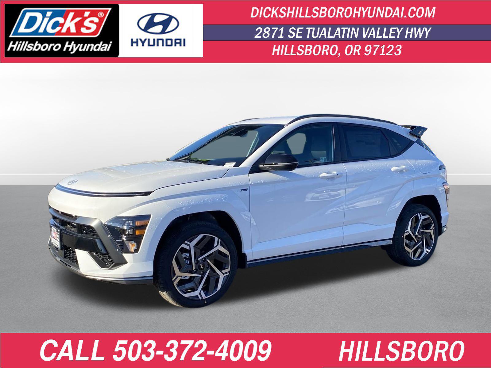 2025 Hyundai Kona N Line Atlas White AWD I4 8-Speed Automatic4-Wheel Disc Brakes, 6 Speakers, ABS brakes, Air Conditioning, Alloy wheels, AM/FM radio: SiriusXM, Apple CarPlay & Android Auto, Auto High-beam Headlights, Automatic temperature control, Brake assist, Bumpers: body-color, Cargo Net, Cargo Tray, Carpeted Floor Mats, Column-Mounted Shift-By-Wire, Delay-off headlights, Driver door bin, Driver vanity mirror, Dual front impact airbags, Dual front side impact airbags, Electronic Stability Control, Emergency communication system: Bluelink+, Exterior Parking Camera Rear, First Aid Kit, Four wheel independent suspension, Front anti-roll bar, Front Bucket Seats, Front Center Armrest, Front dual zone A/C, Front reading lights, Fully automatic headlights, Heated door mirrors, Heated front seats, Heated Front Sport Bucket Seats, Illuminated entry, Leather steering wheel, Low tire pressure warning, Mud Guards, N-Line Alcantara Sport Combination Seat Trim, Occupant sensing airbag, Option Group 01, Outside temperature display, Overhead airbag, Panic alarm, Passenger door bin, Passenger vanity mirror, Power door mirrors, Power driver seat, Power steering, Power windows, Radio: AM/FM/HD Radio/SiriusXM Audio System, Rear anti-roll bar, Rear seat center armrest, Rear window defroster, Rear window wiper, Remote keyless entry, Roof rack: rails only, Security system, Speed control, Speed-sensing steering, Split folding rear seat, Spoiler, Steering wheel mounted audio controls, Tachometer, Telescoping steering wheel, Tilt steering wheel, Traction control, Trip computer, Turn signal indicator mirrors, Variably intermittent wipers, Wheels: 19 x 7.5J Metallic Alloy.Recent Arrival! 24/29 City/Highway MPG