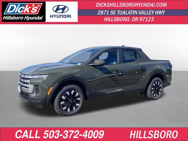 2025 Hyundai Santa Cruz SE Green AWD 2.5L I4 8-Speed Automatic with SHIFTRONIC18 x 7.5J Alloy Wheels, 4-Wheel Disc Brakes, 4.081 Axle Ratio, 6 Speakers, ABS brakes, Air Conditioning, Alloy wheels, AM/FM radio: SiriusXM, Apple CarPlay & Android Auto, Auto High-beam Headlights, Auto-leveling suspension, Brake assist, Bumpers: body-color, Carpeted Floor Mats, Compass, Delay-off headlights, Driver door bin, Driver vanity mirror, Dual front impact airbags, Dual front side impact airbags, Electronic Stability Control, Emergency communication system: Bluelink+, Exterior Parking Camera Rear, First Aid Kit, Four wheel independent suspension, Front anti-roll bar, Front Bucket Seats, Front Center Armrest, Front reading lights, Fully automatic headlights, Illuminated entry, Low tire pressure warning, Occupant sensing airbag, Option Group 01, Outside temperature display, Overhead airbag, Overhead console, Panic alarm, Passenger door bin, Passenger vanity mirror, Power door mirrors, Power steering, Power windows, Radio data system, Radio: AM/FM/HD Audio System, Rear anti-roll bar, Rear seat center armrest, Rear side impact airbag, Rear step bumper, Rear window defroster, Remote keyless entry, Security system, Speed control, Speed-sensing steering, Split folding rear seat, Spoiler, Stain & Odor Resistant Cloth Seat Trim, Steering wheel mounted audio controls, Tachometer, Tailgate Protector, Telescoping steering wheel, Tilt steering wheel, Traction control, Trip computer, Variably intermittent wipers, Wheel Locks.21/29 City/Highway MPG